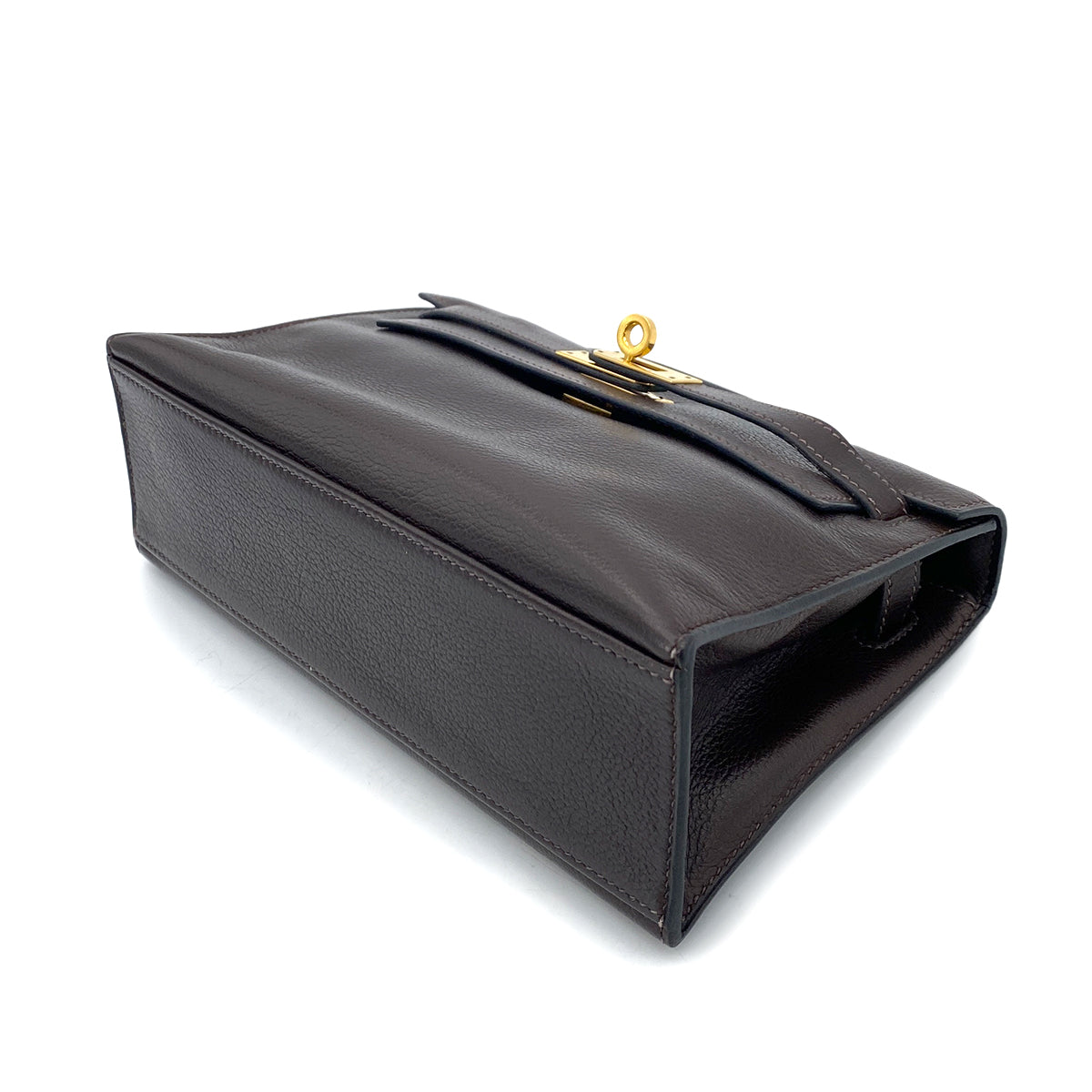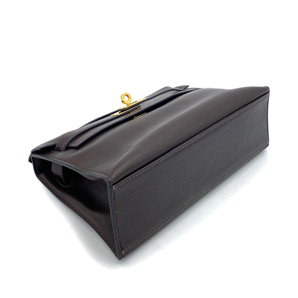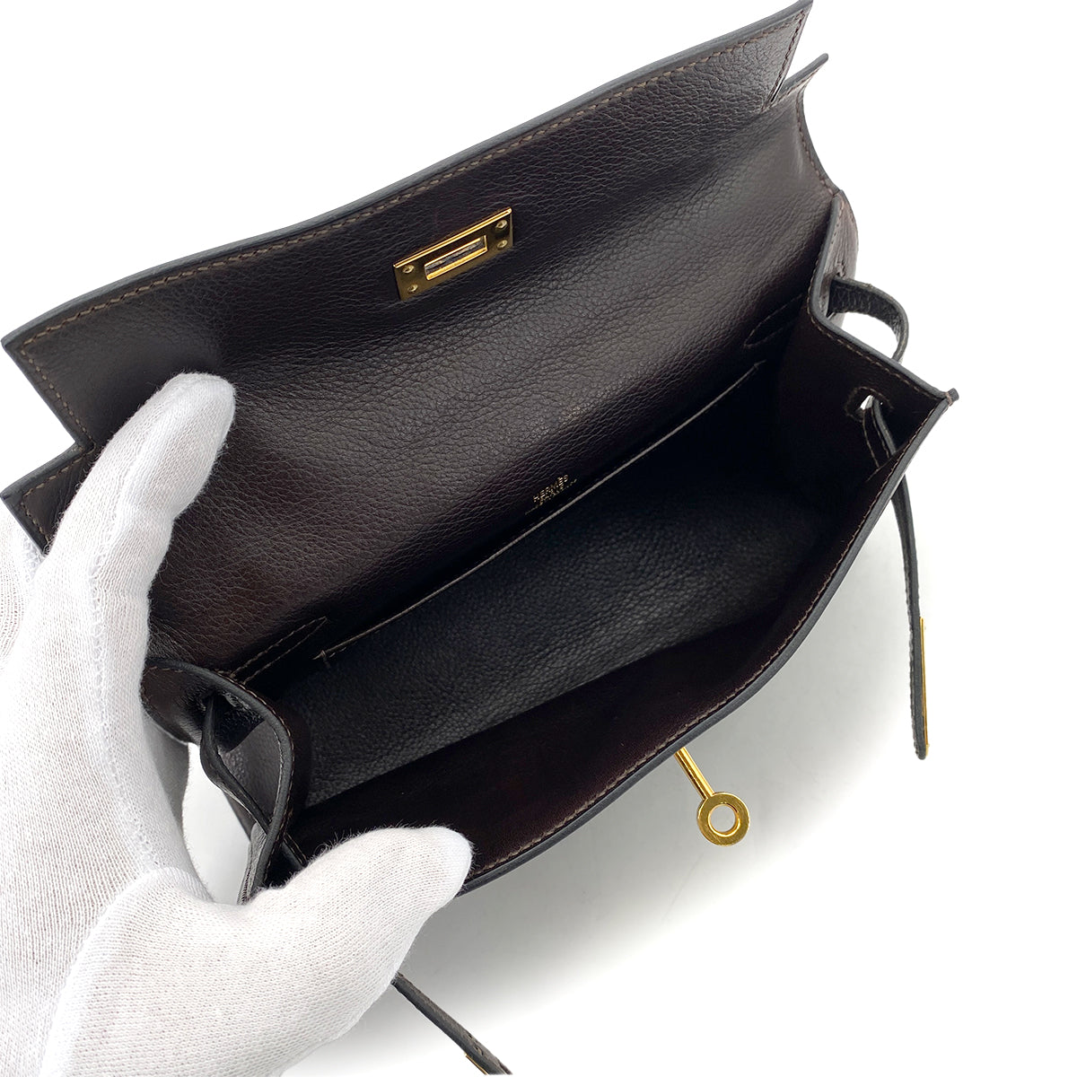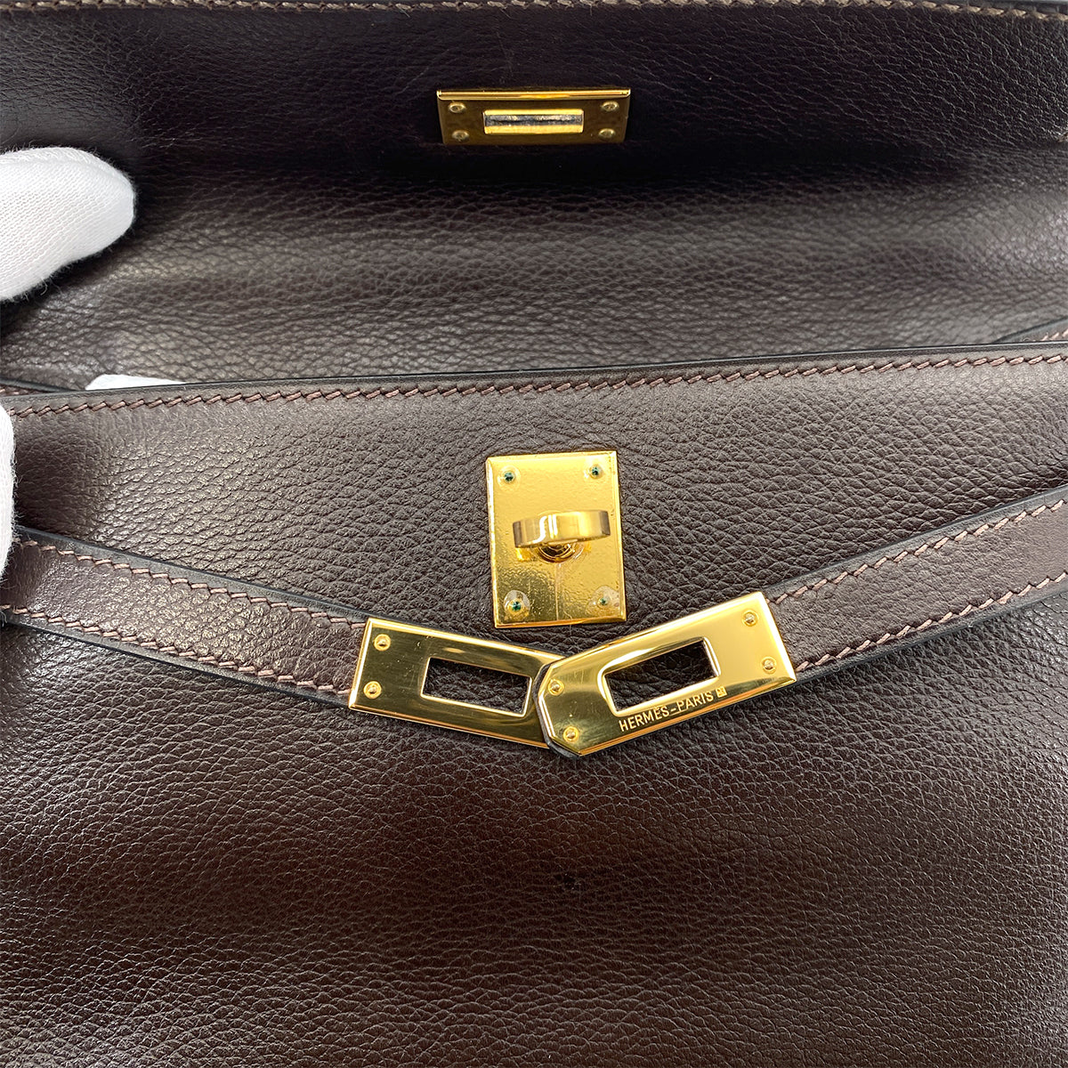 HERMES POCHETTE KELLY SELLIER BROWN TYPE EVER GRAIN HAND BAG □I GHW 90255913