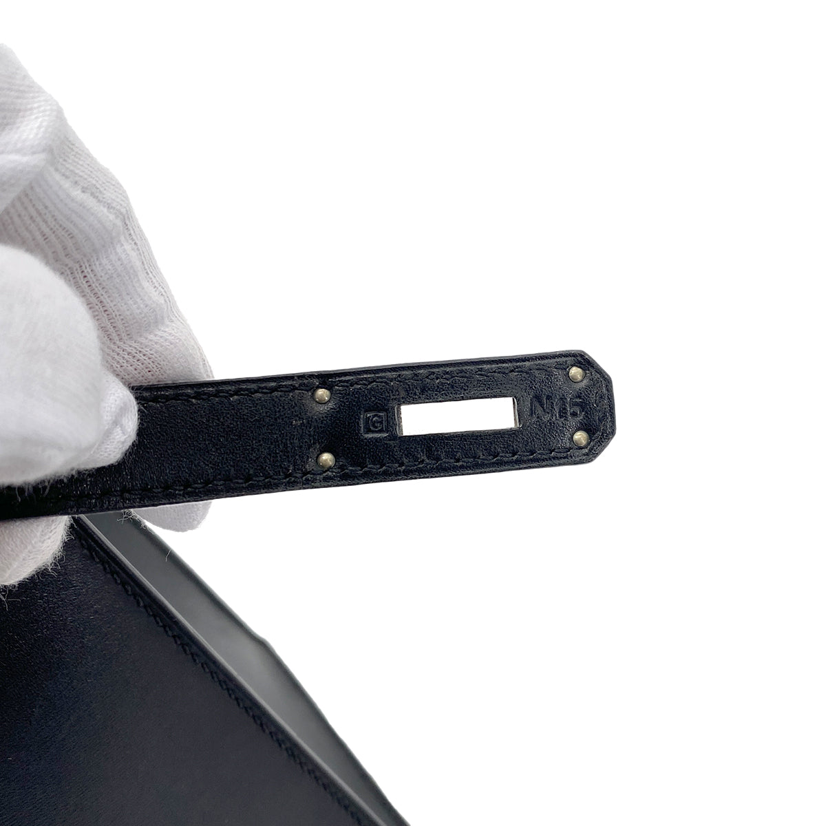 HERMES KELLY 28 SELLIER BLACK BOXCALF HAND SHOULDER BAG □G SHW 90255925