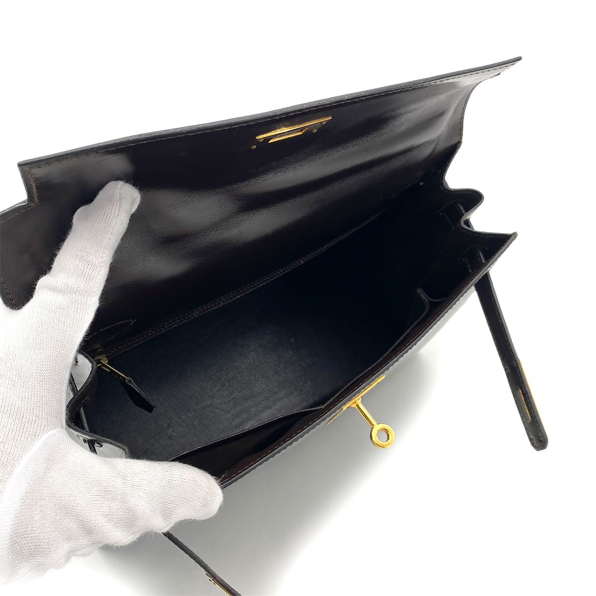 HERMES KELLY 28 SELLIER BROWN TYPE BOXCALF HAND SHOULDER BAG 〇R GHW 90255946