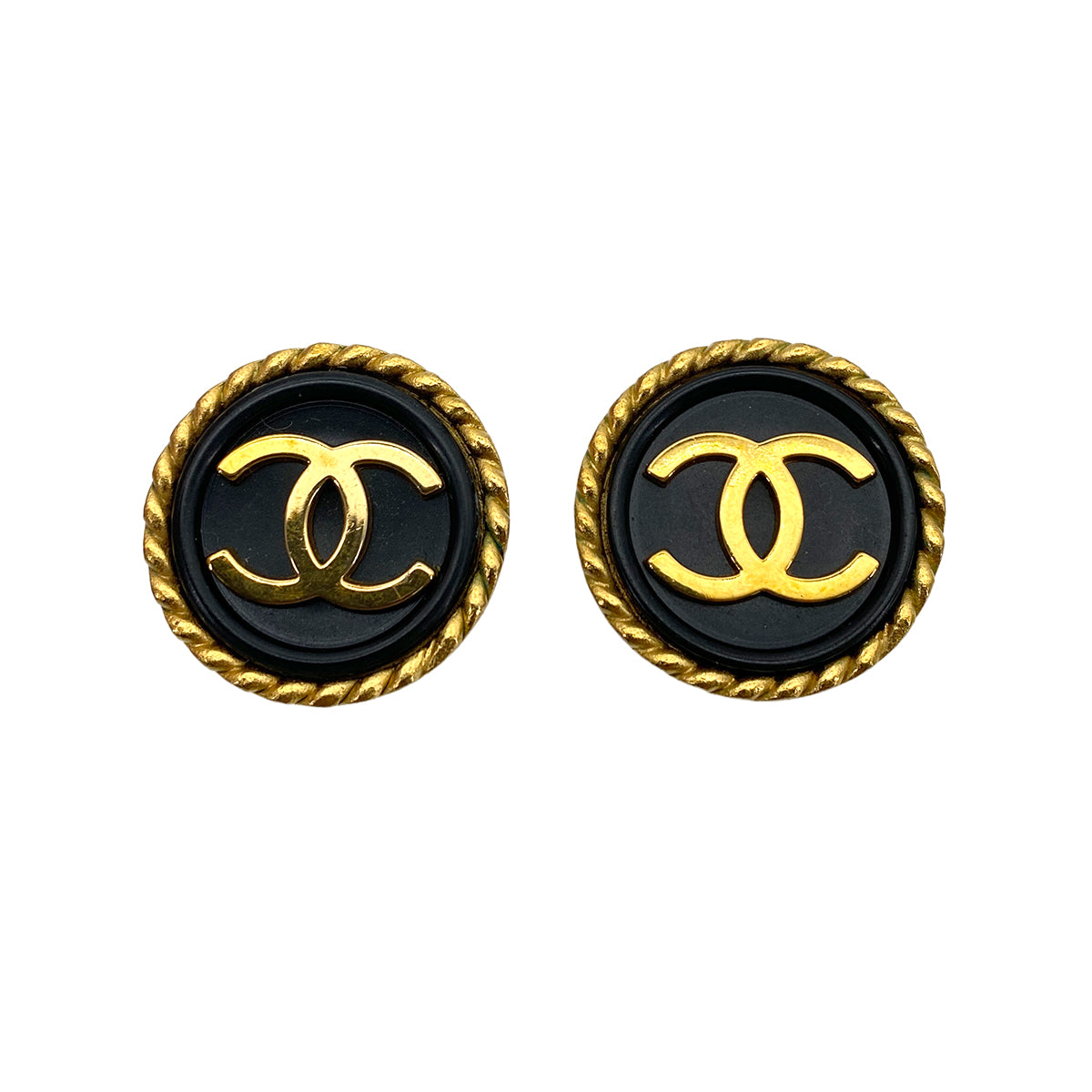 CHANEL VINTAGE EARRINGS ROUND COCOMARK BLACK ACCESSORY 95A 90258146
