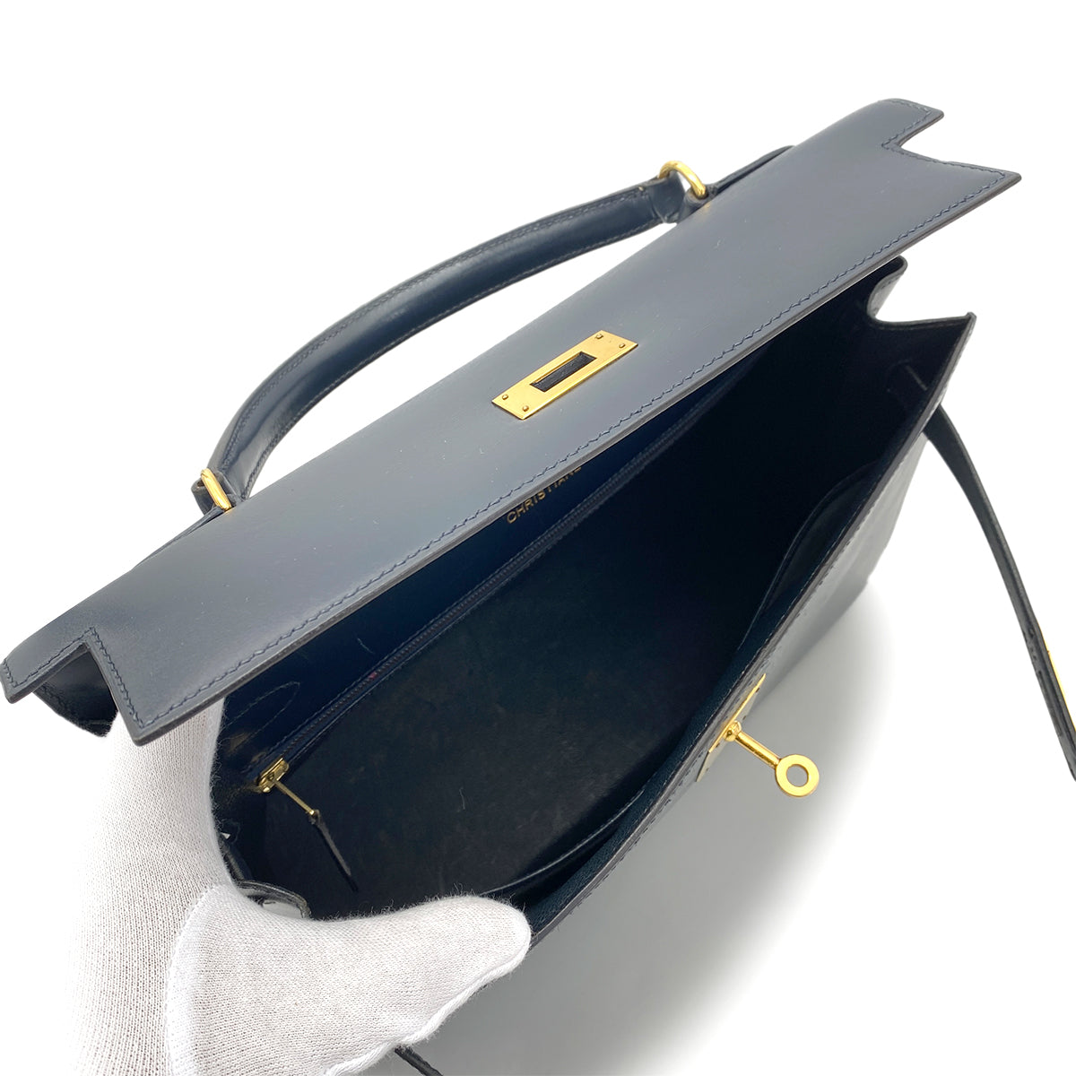 HERMES KELLY 32 SELLIER BLUE INDIGO BOXCALF HAND SHOULDER BAG 〇X GHW 90258889