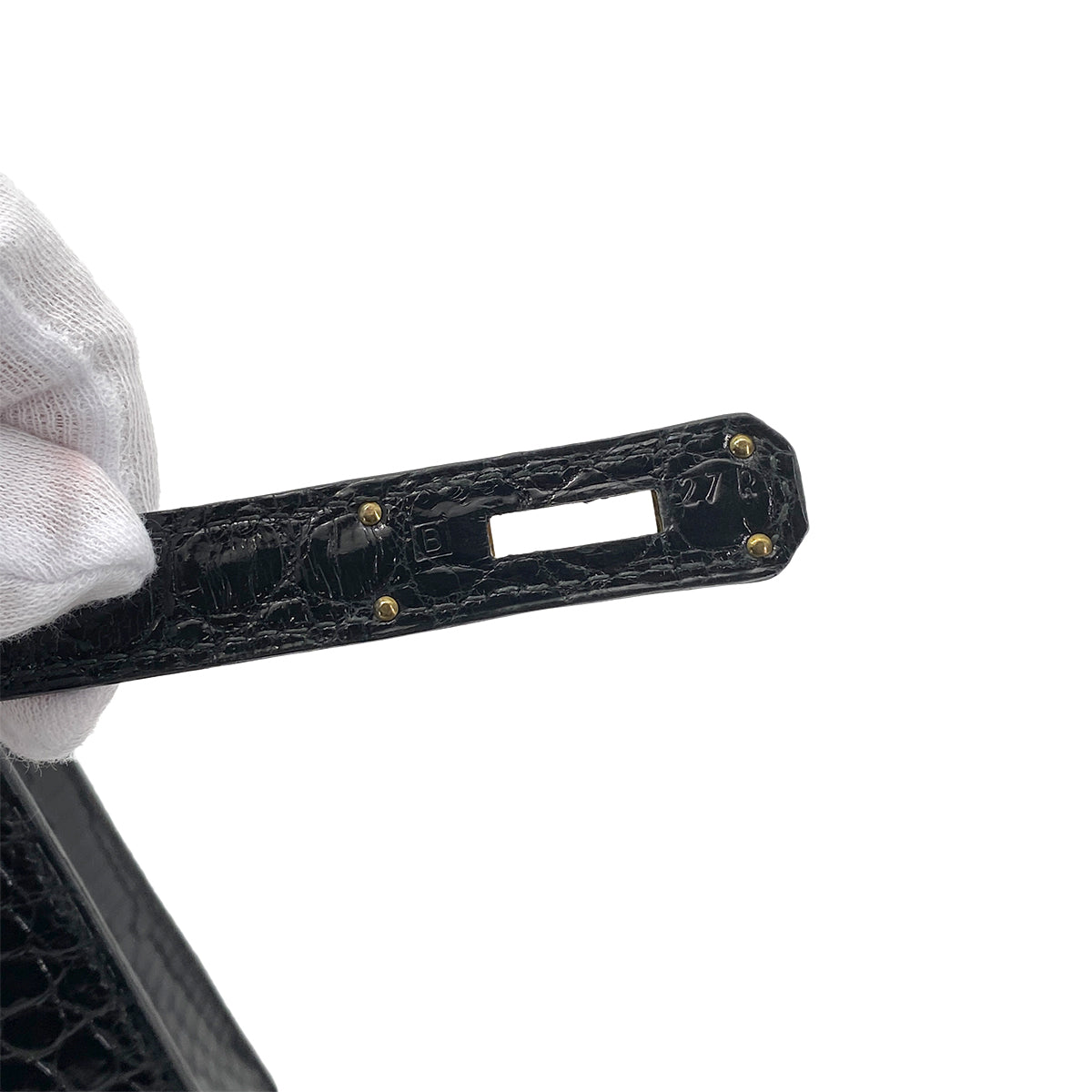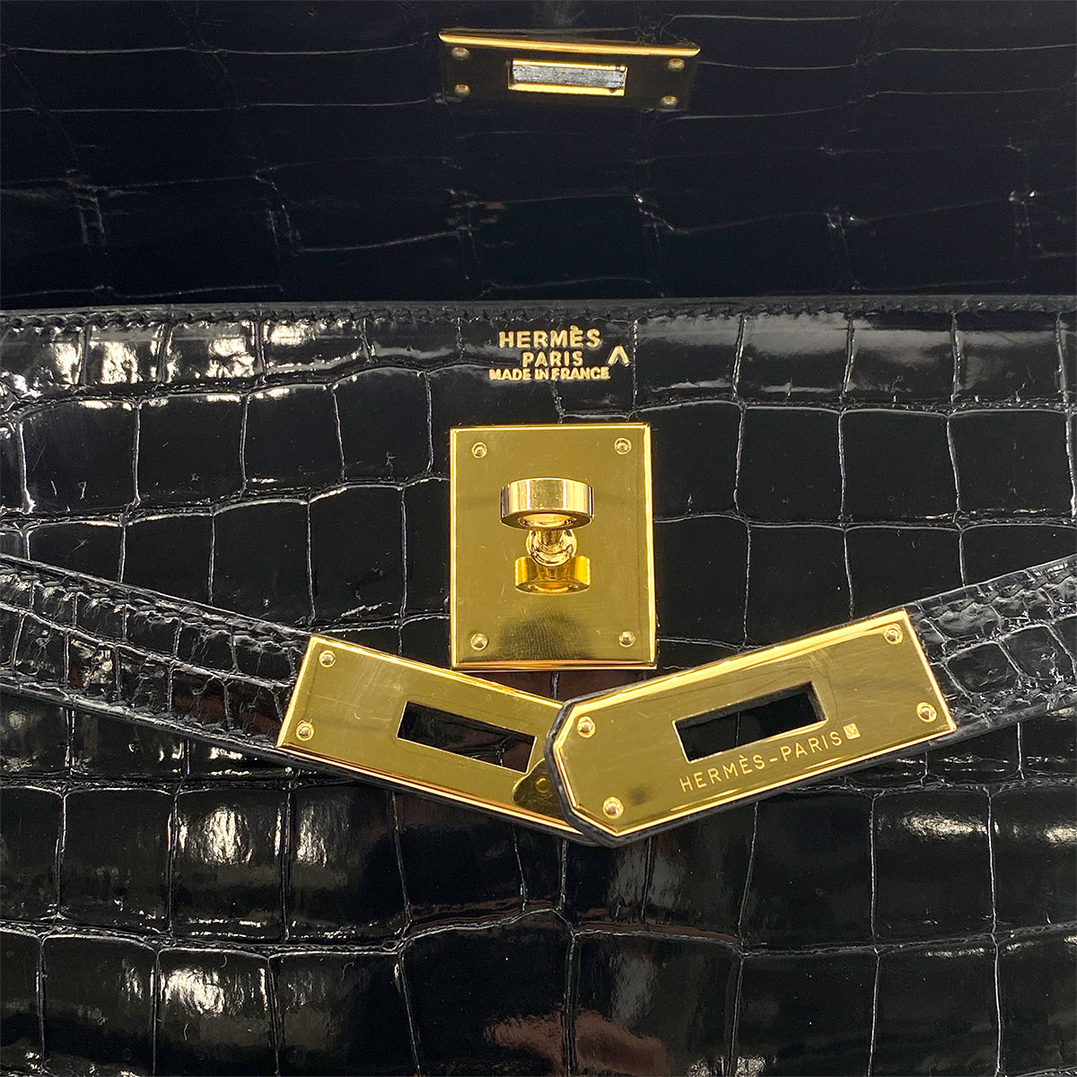 HERMES KELLY 32 SELLIER BLACK POROSUS CROCODILE HAND SHOULDER BAG □B 90261232