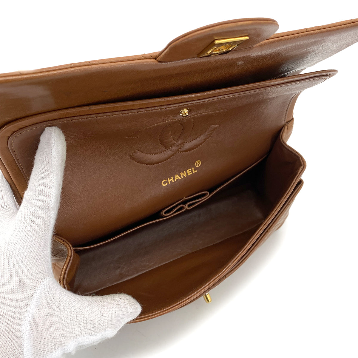 CHANEL VINTAGE CLASSIC FLAP MEDIUM CHAIN SHOULDER BAG BROWN LAMB SKIN 90261246