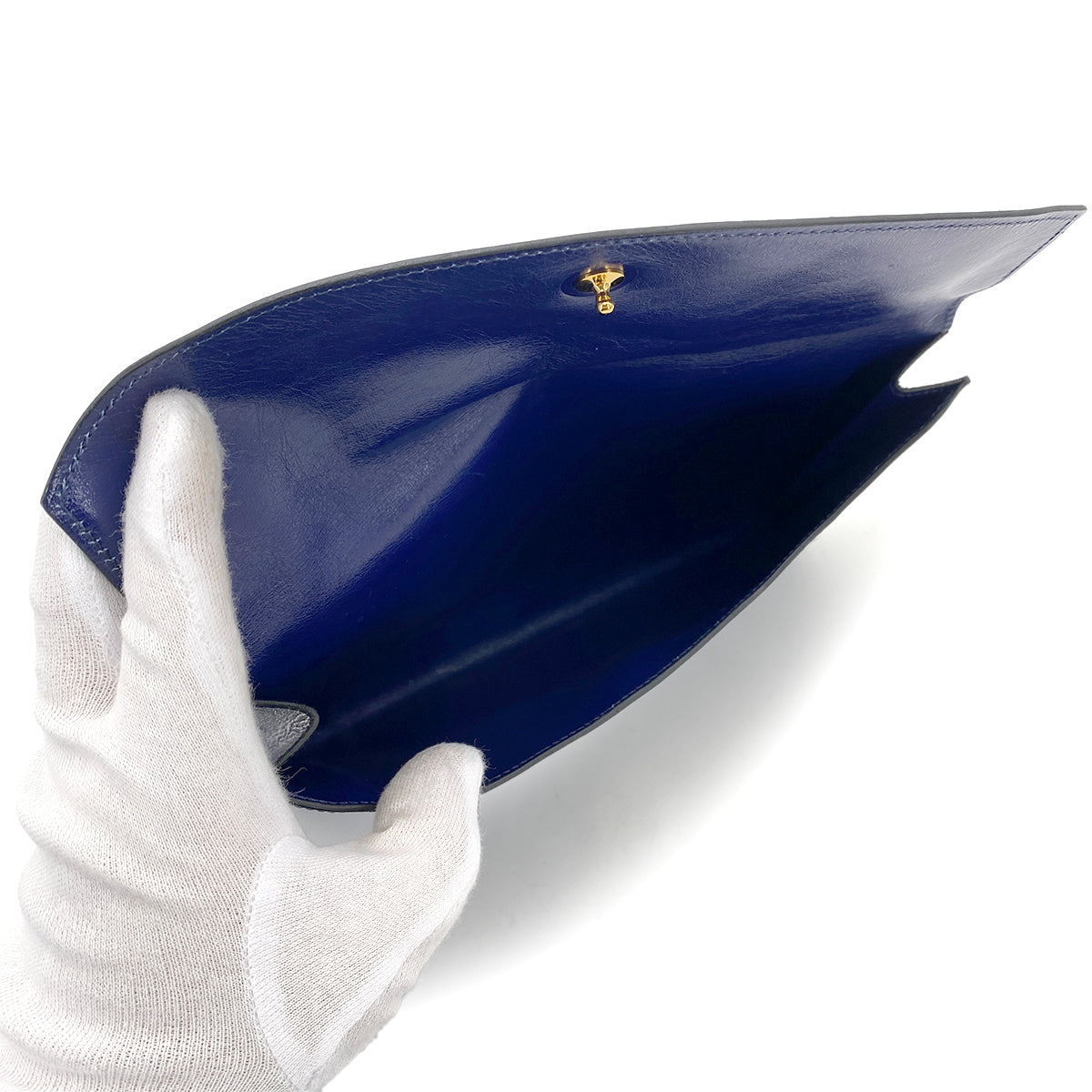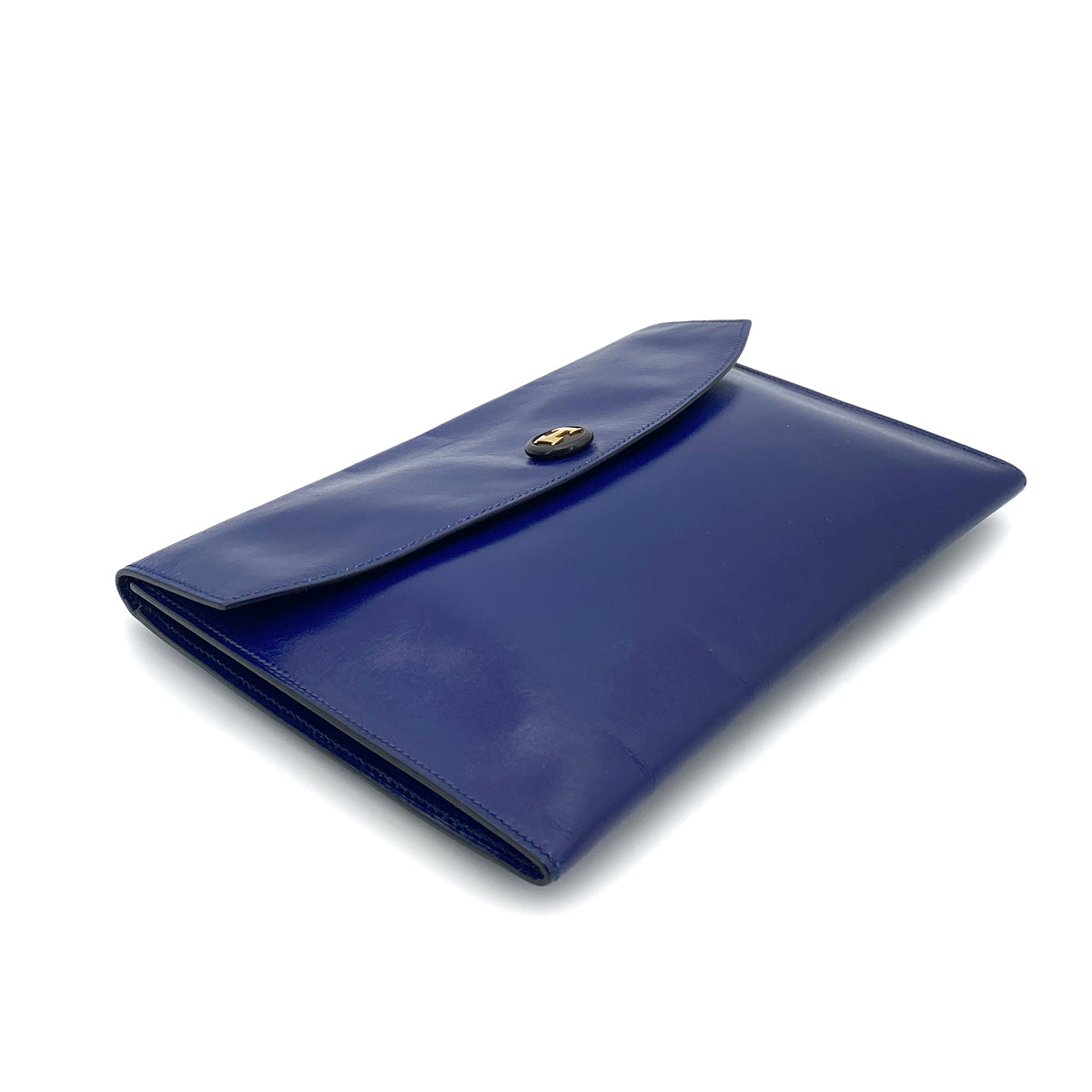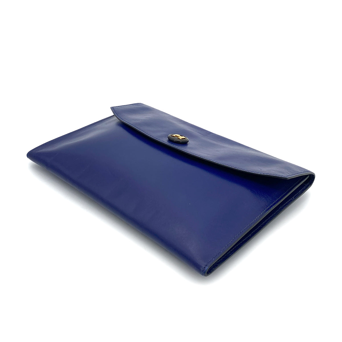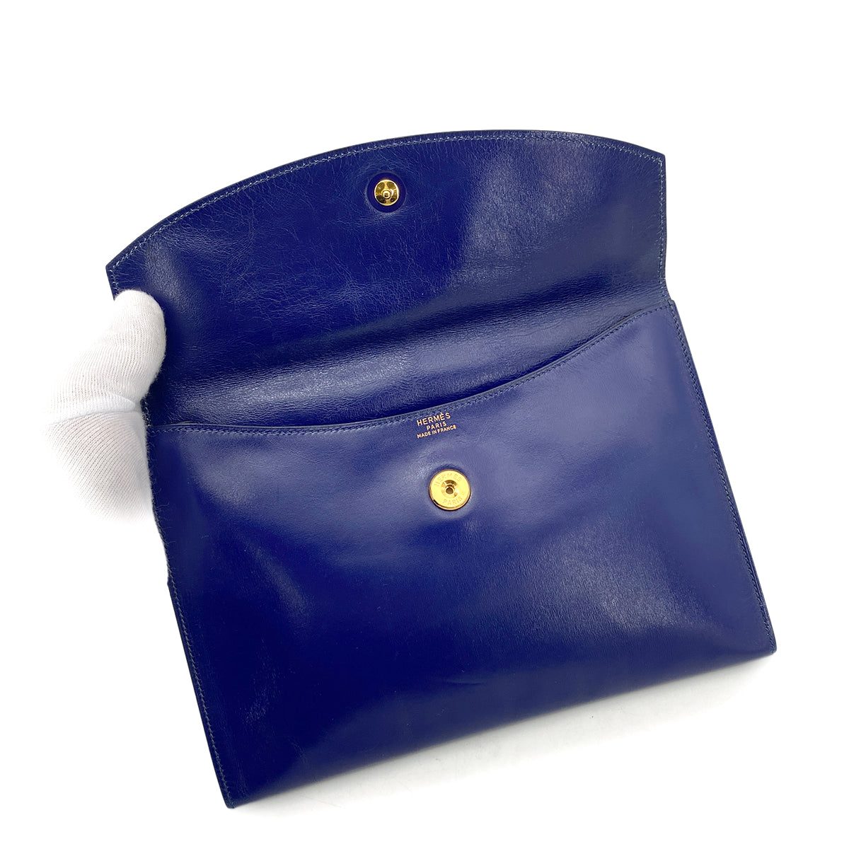 HERMES POCHETTE RIO CLUTCH BAG BLUE BOX CALF 〇T 90261518