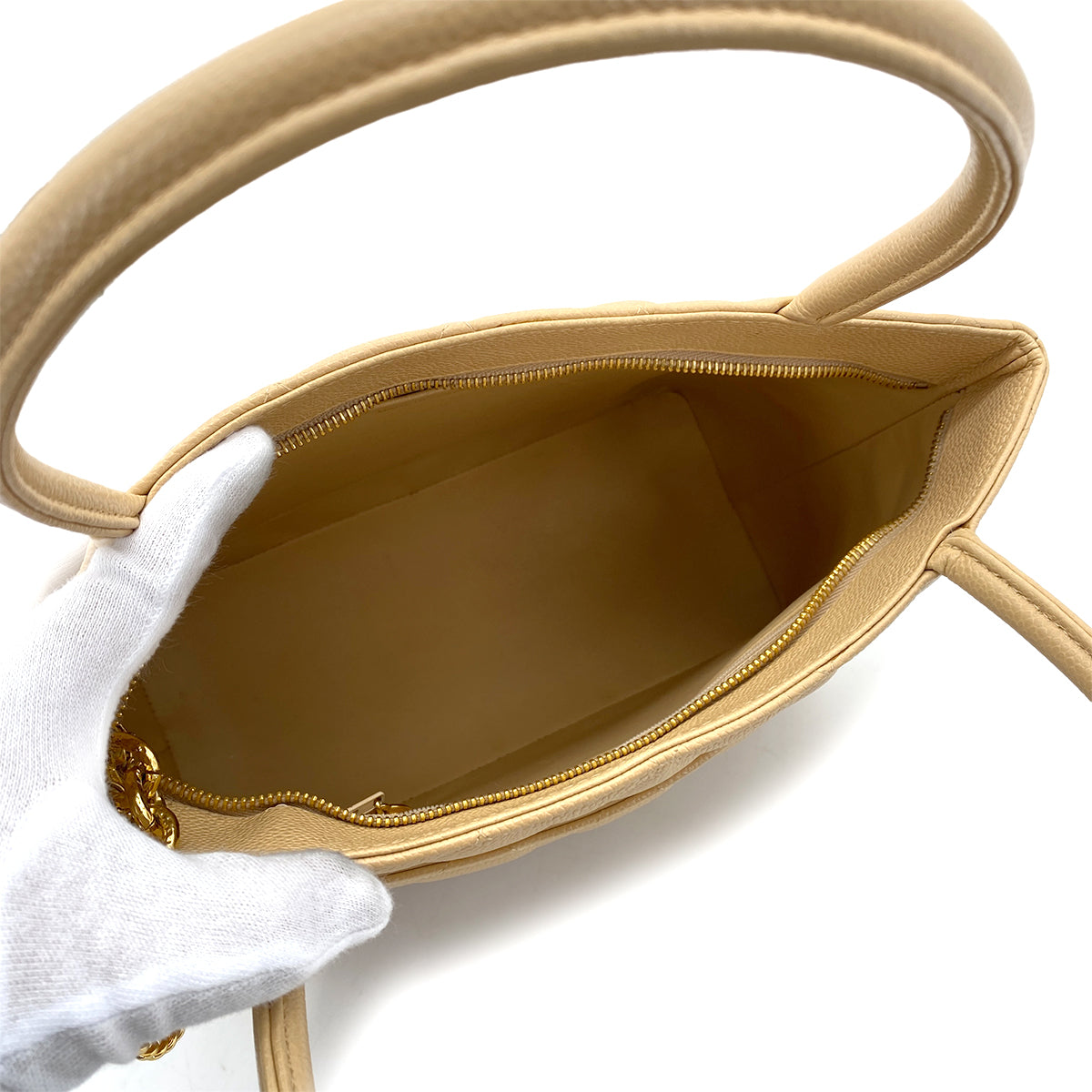 CHANEL VINTAGE MEDALLION TOTE BAG BEIGE CAVIAR SKIN 90261572