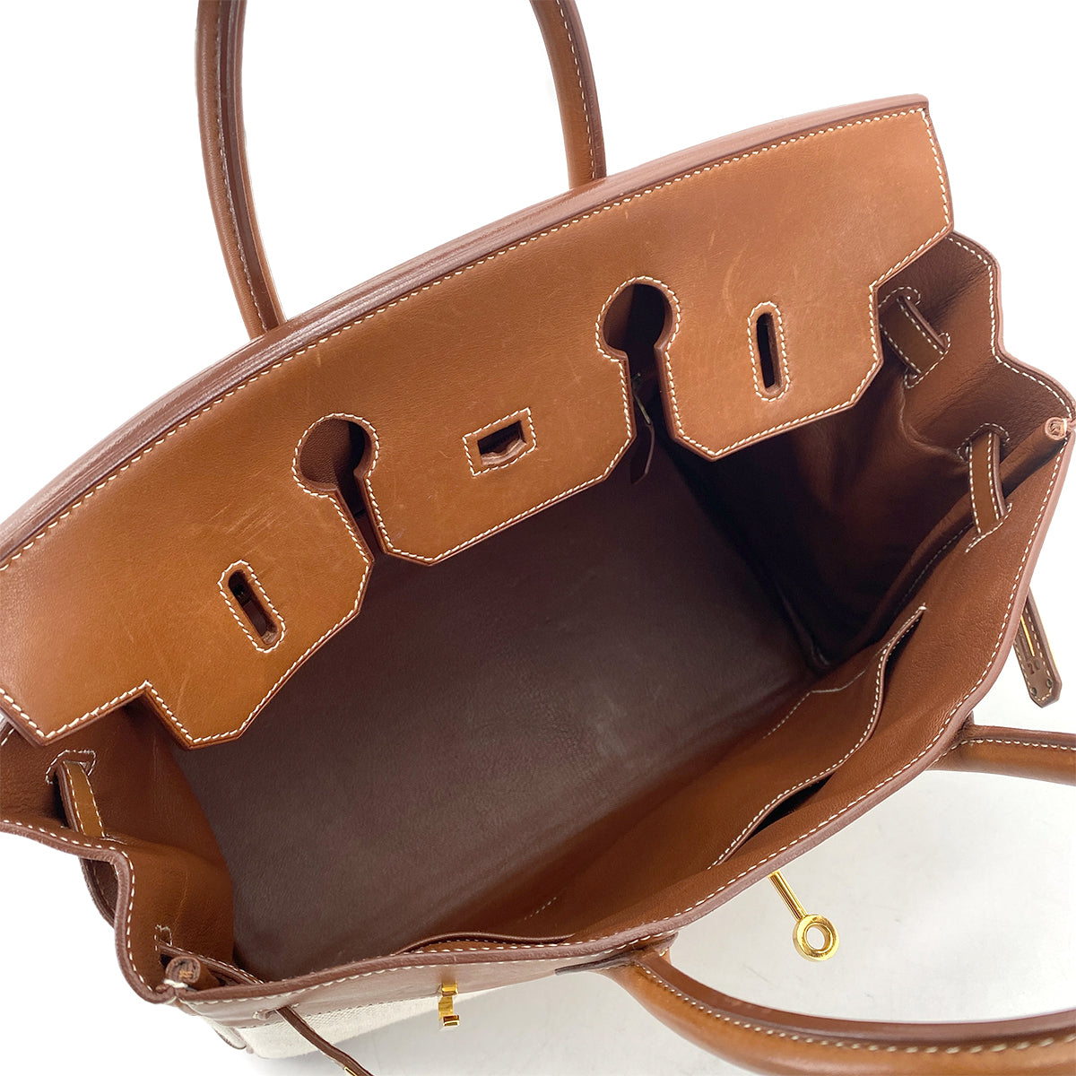 HERMES HAUT A COURROIES 32 FAUVE BARENIA TOILE H HAND BAG □F GHW 90261645