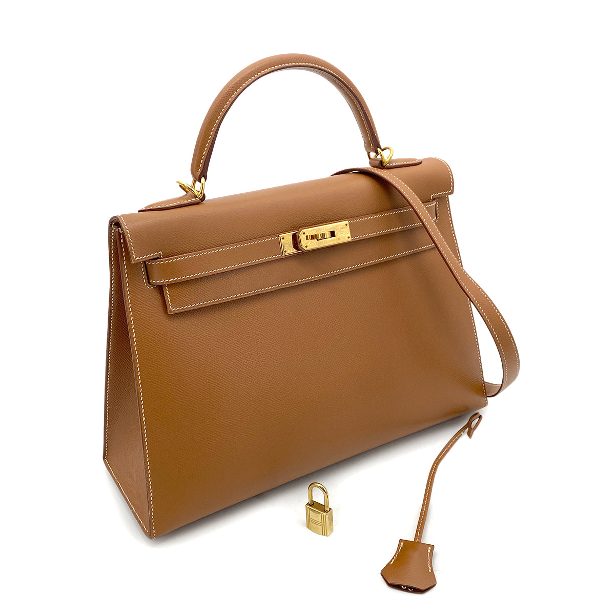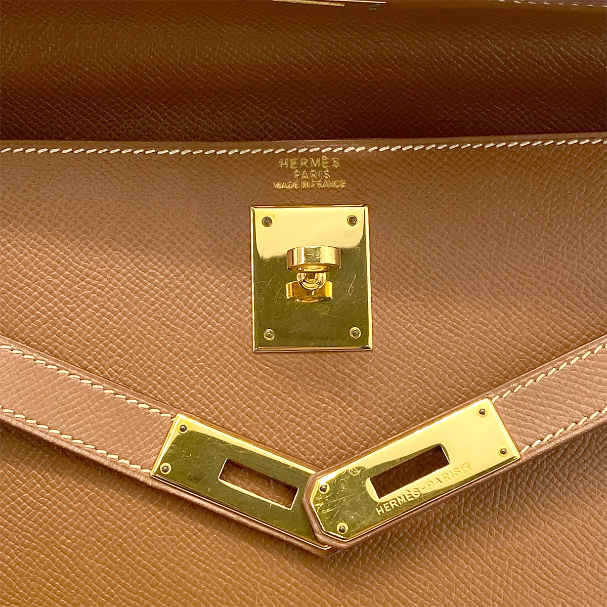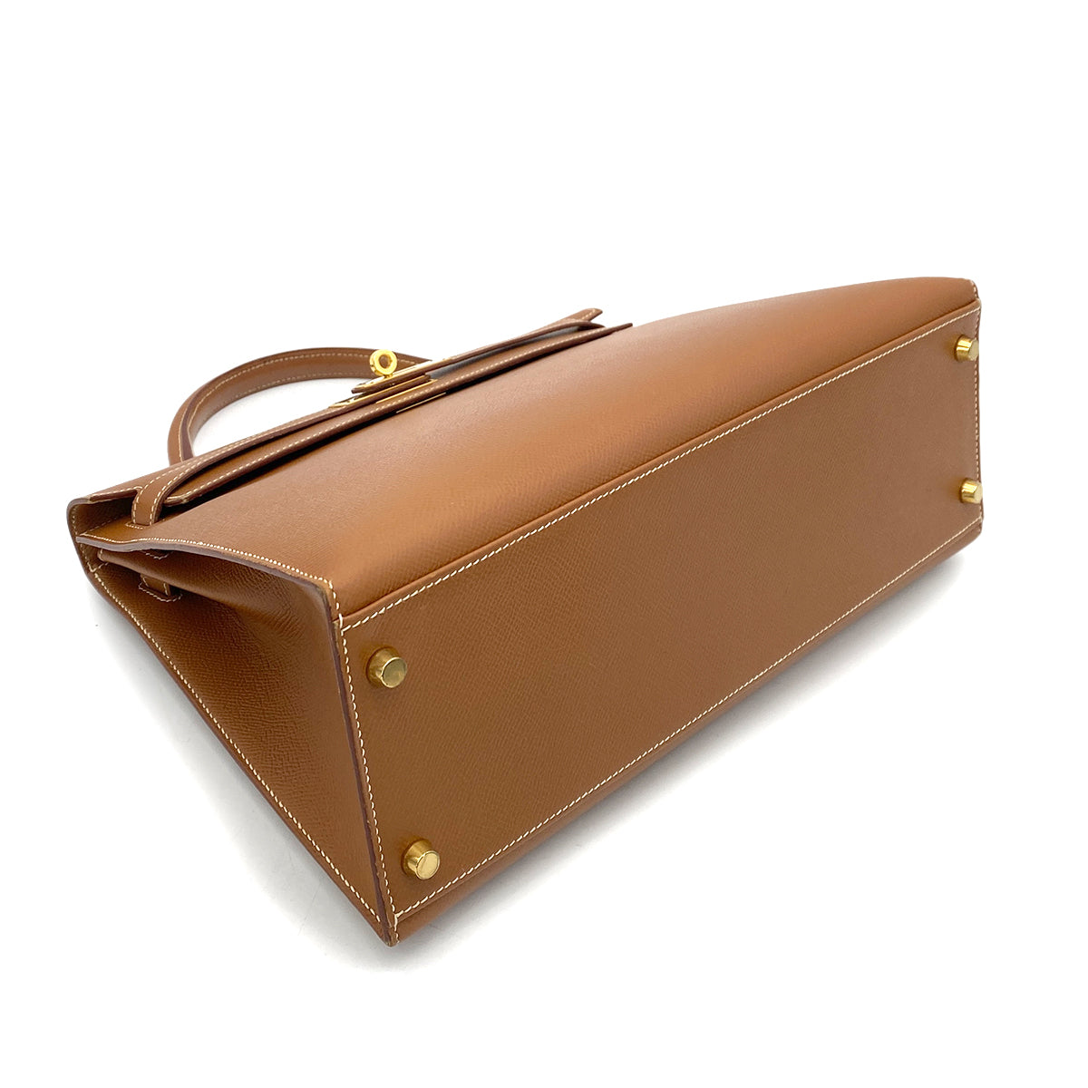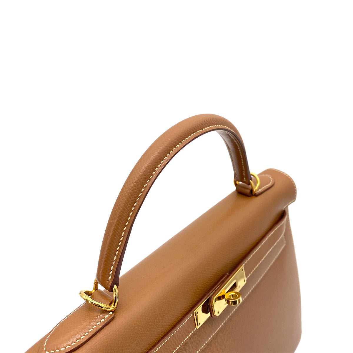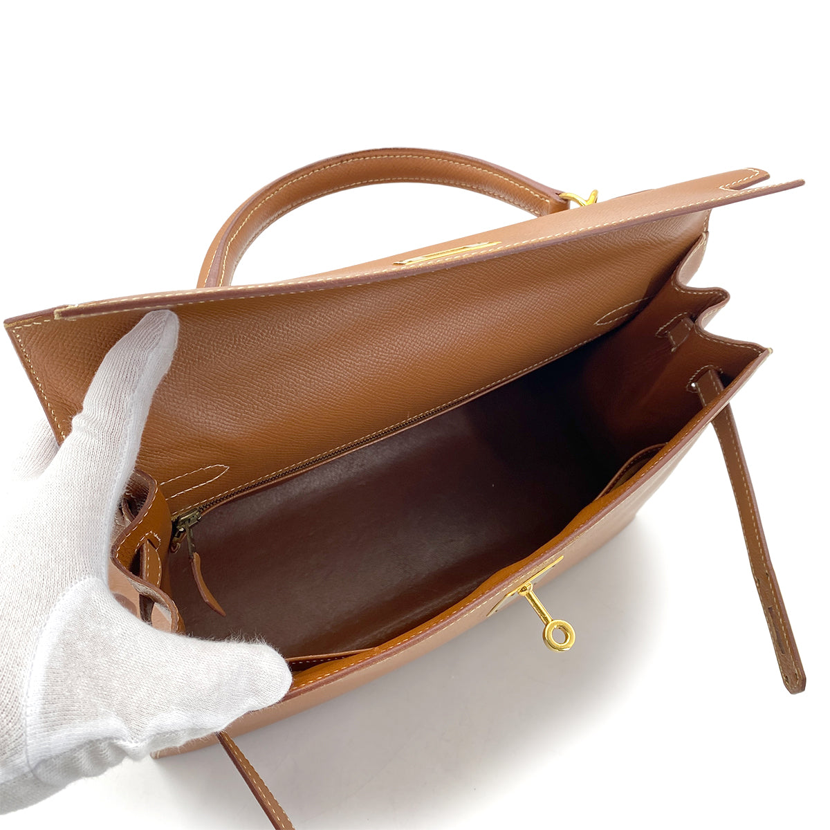 HERMES KELLY 32 SELLIER GOLD COUCHVEL HAND SHOULDER BAG □D 90261809