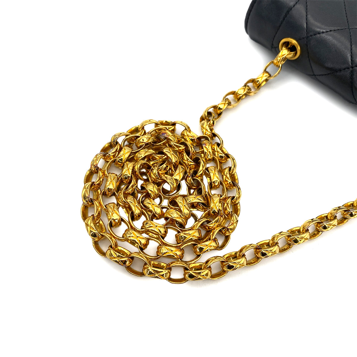 CHANEL VINTAGE BIJOU CHAIN SHOULDER BAG BLACK LAMB SKIN 90262331