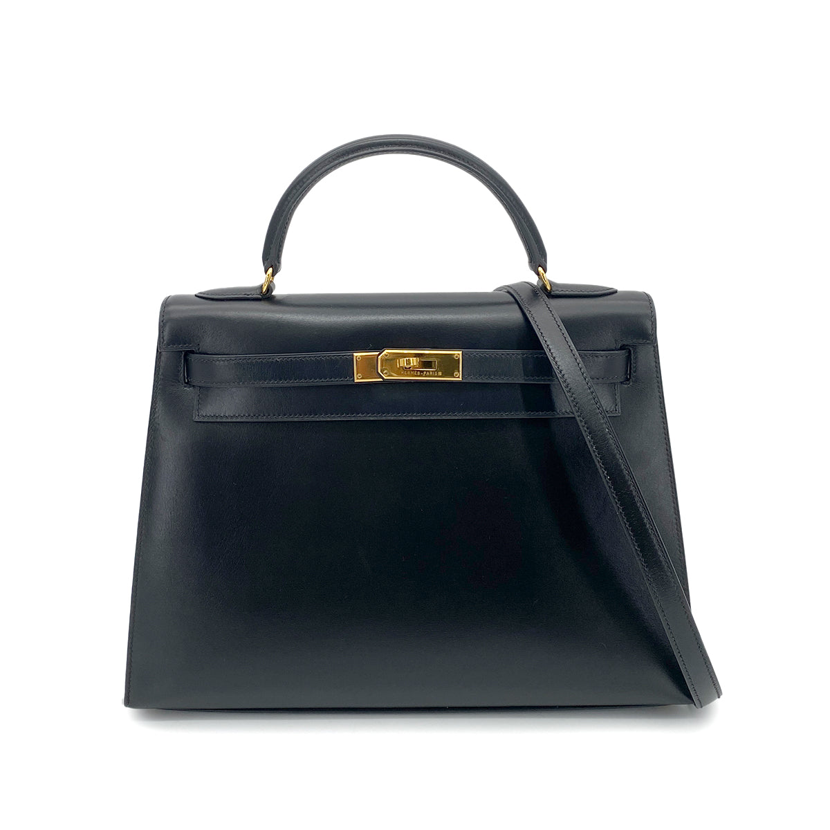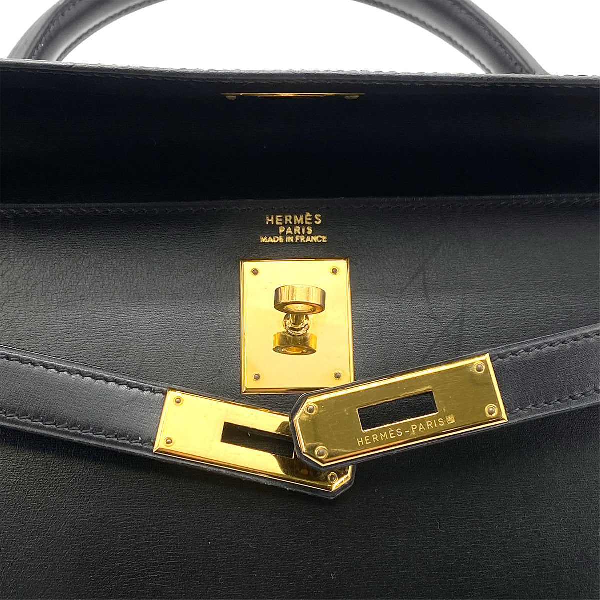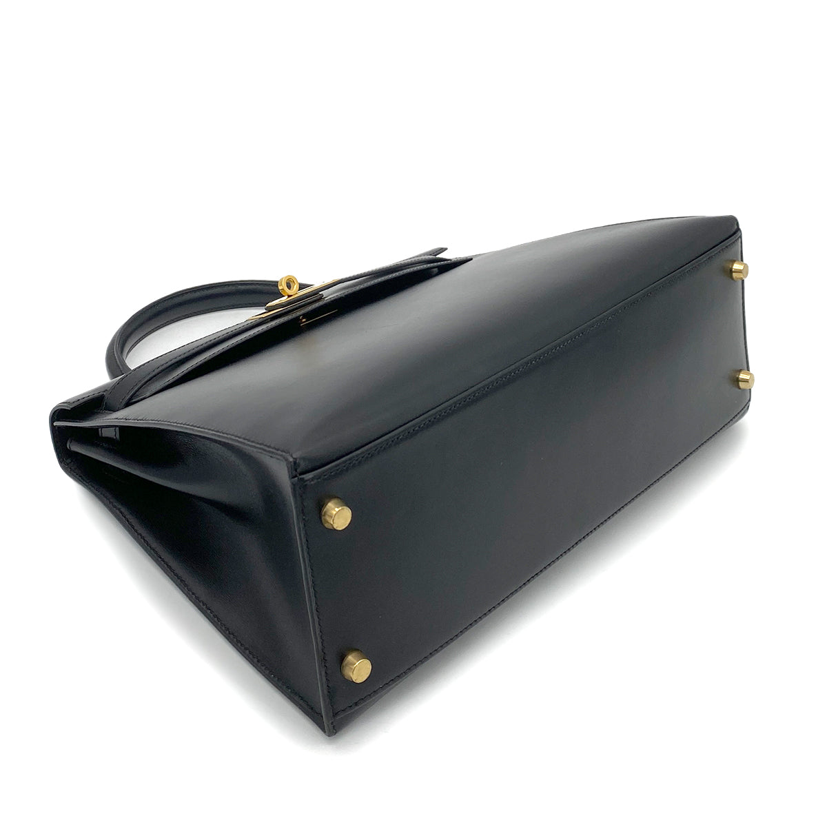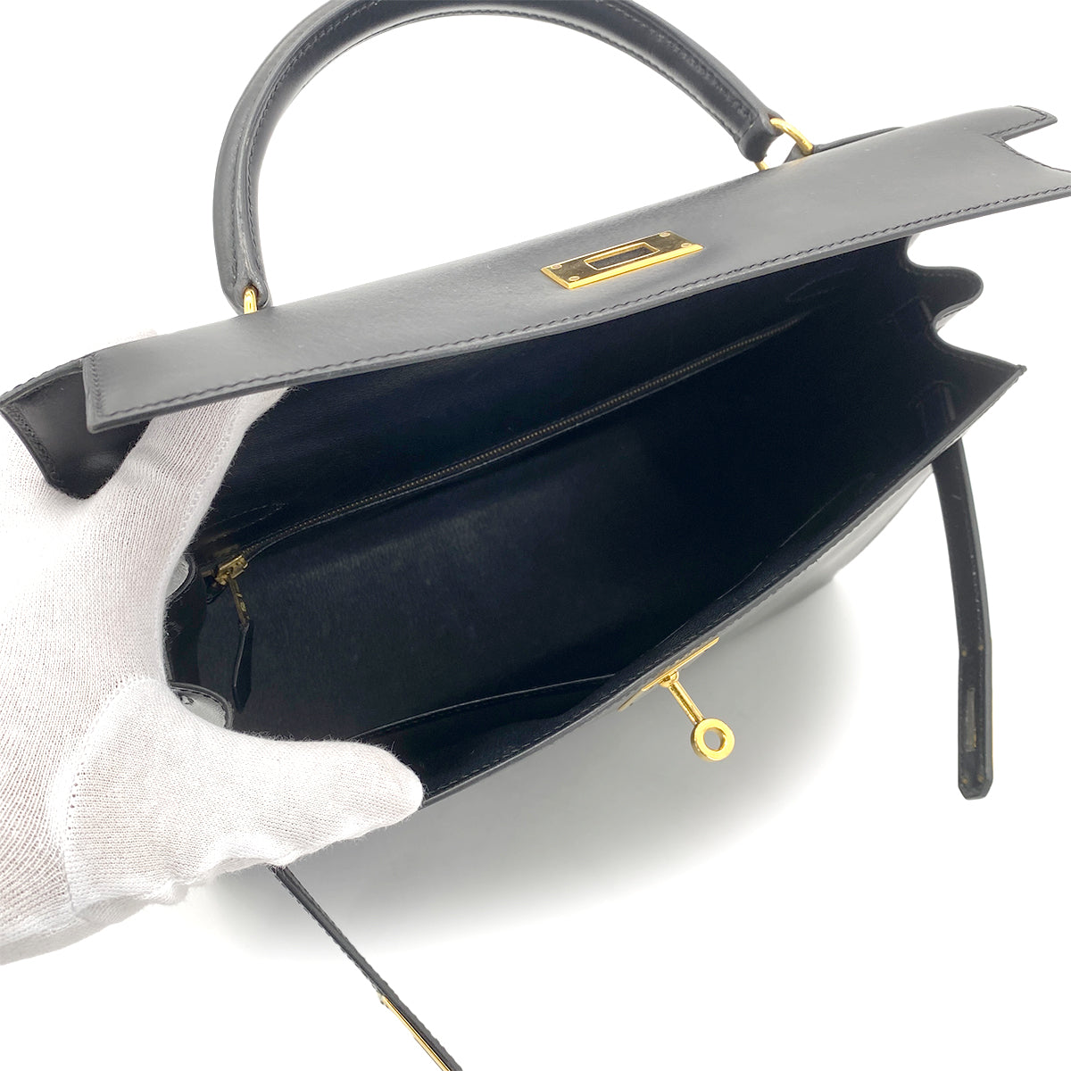 HERMES KELLY 32 SELLIER BLACK BOX CALF HAND SHOULDER BAG 〇A GHW 90262376