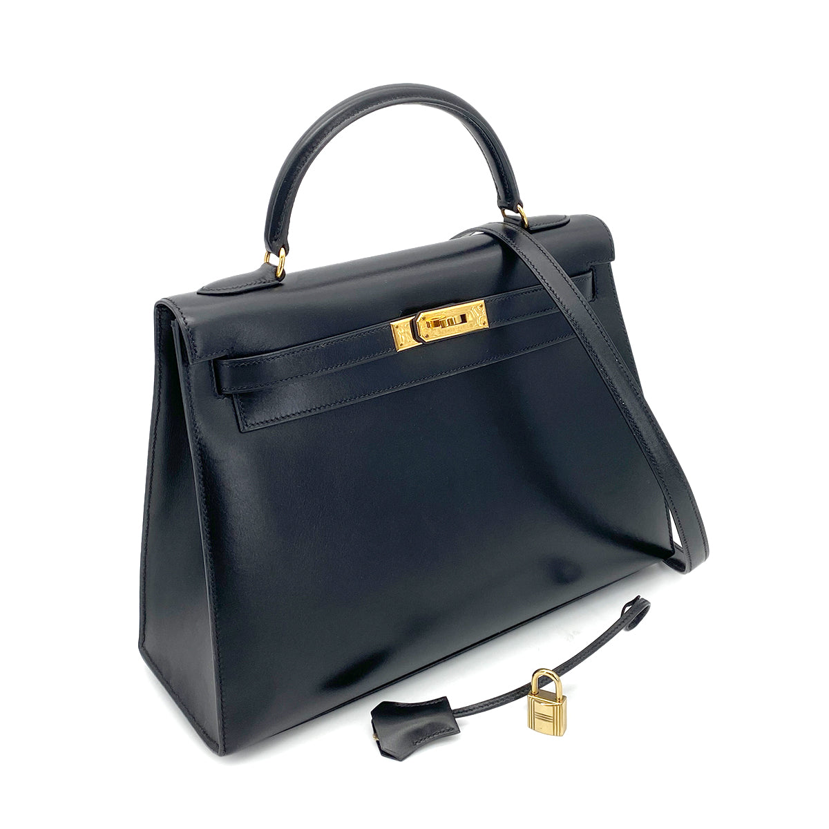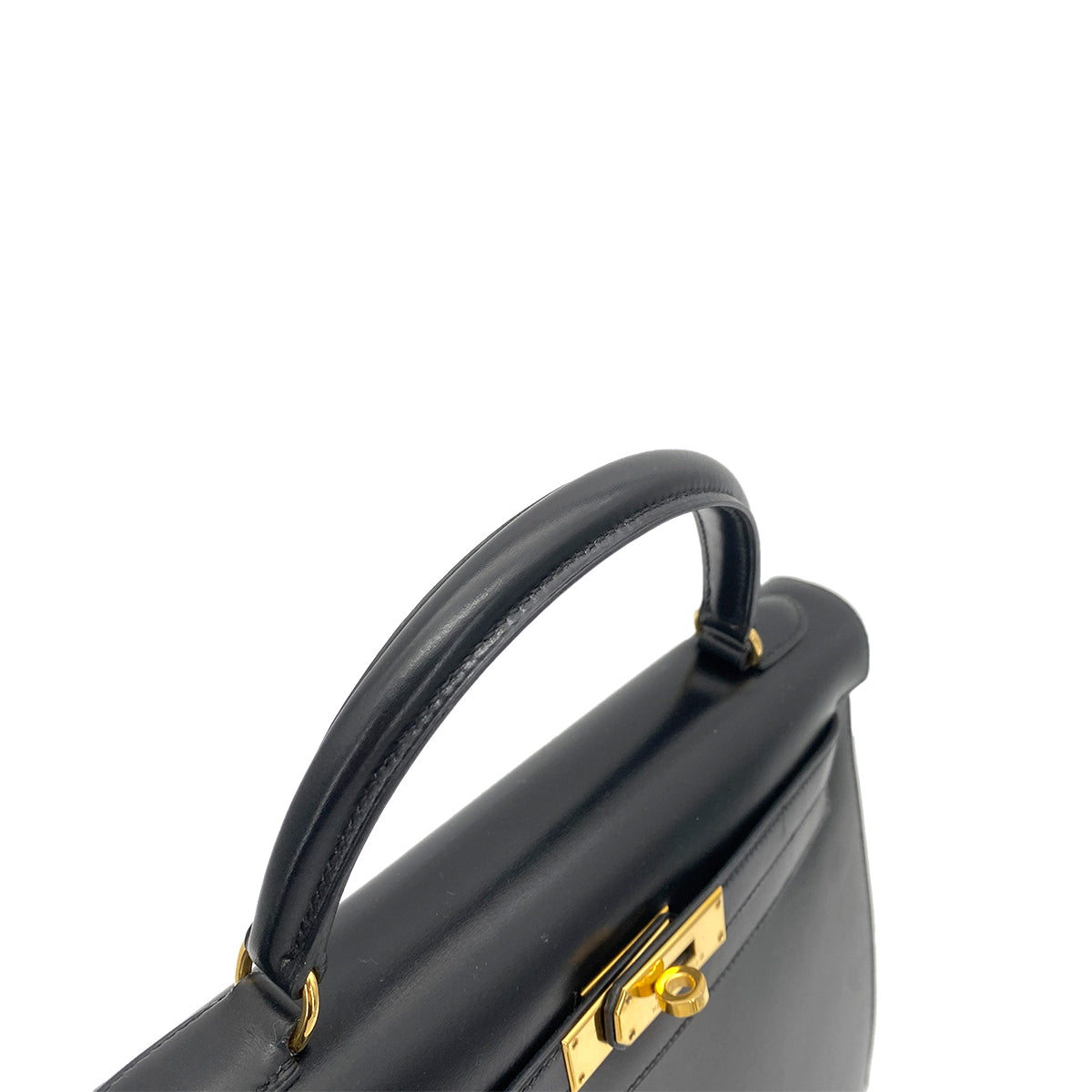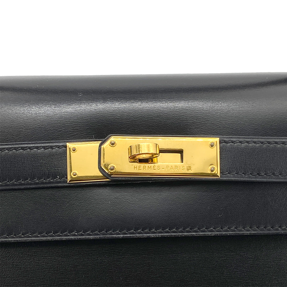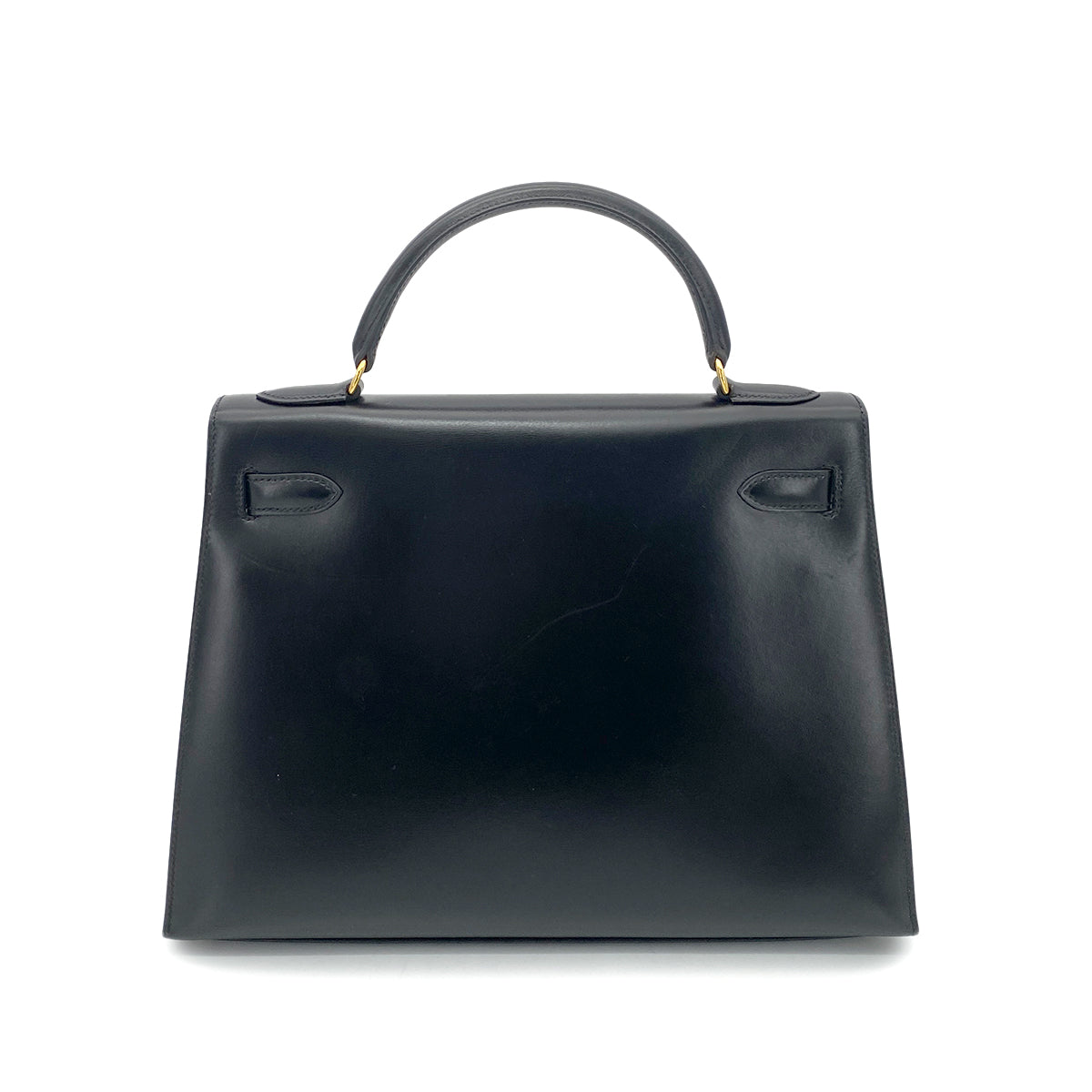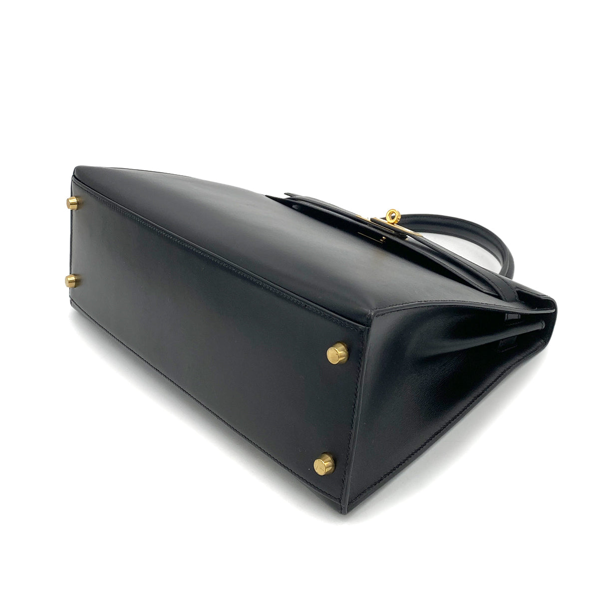 HERMES KELLY 32 SELLIER BLACK BOX CALF HAND SHOULDER BAG 〇A GHW 90262376
