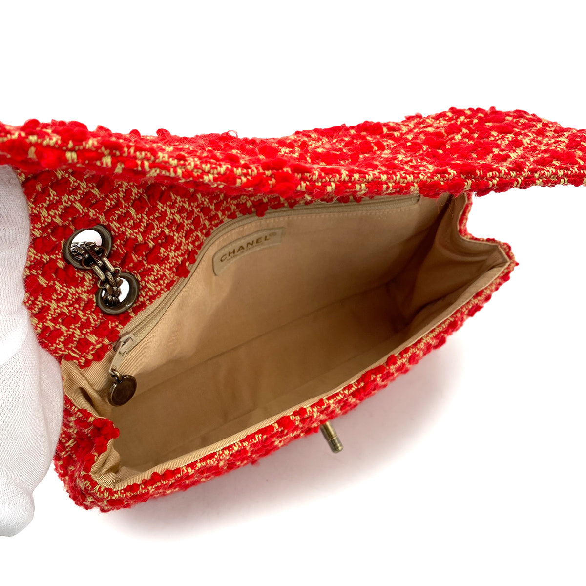 CHANEL VINTAGE CHAIN SHOULDER BAG RED TWEED 90263082