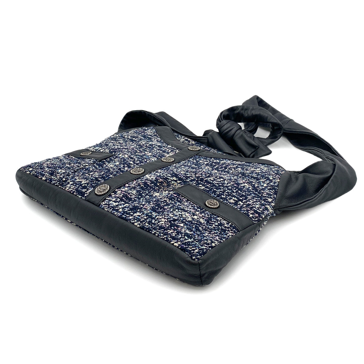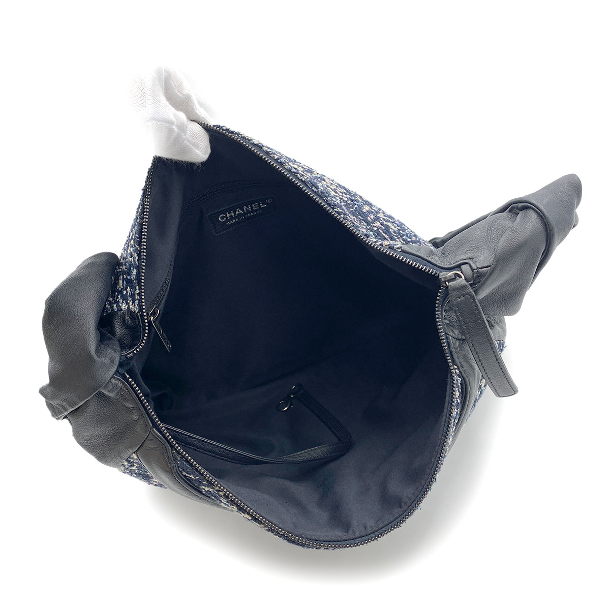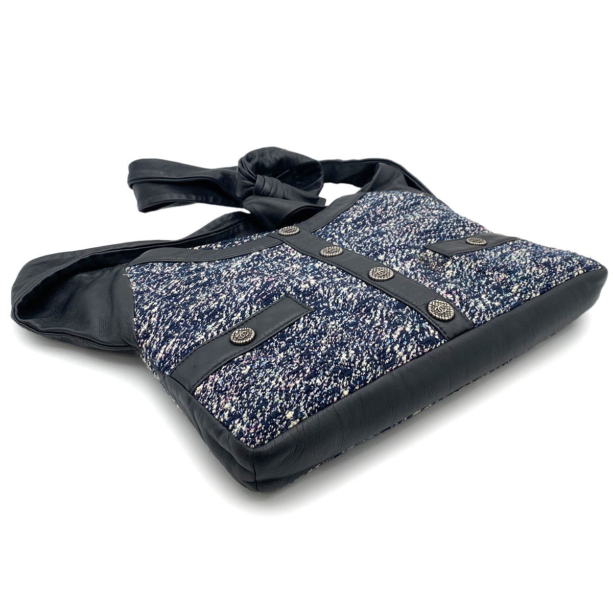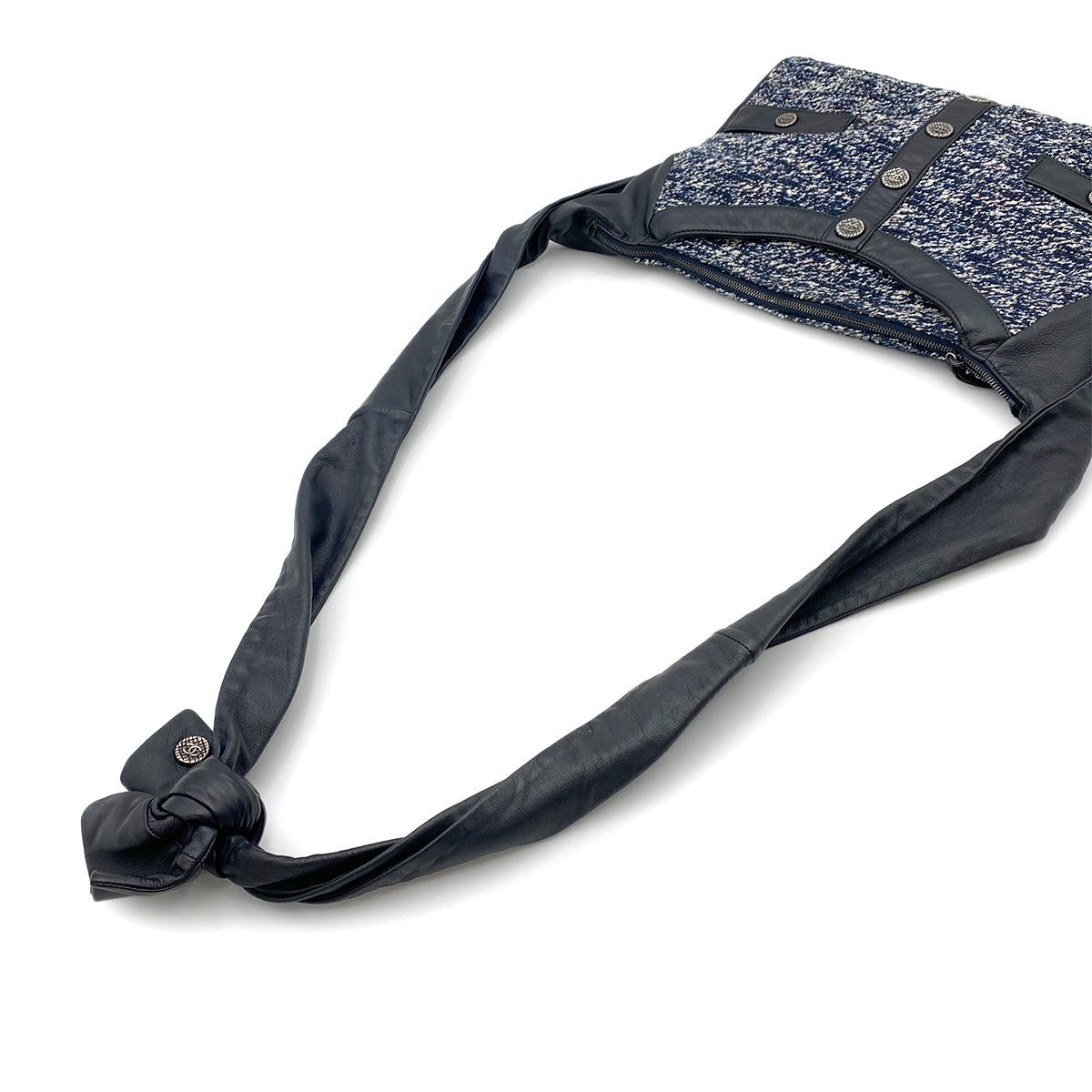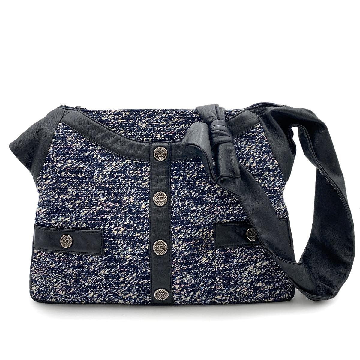 CHANEL GIRL CHANEL SHOULDER BAG NAVY TWEED LEATHER 90264366