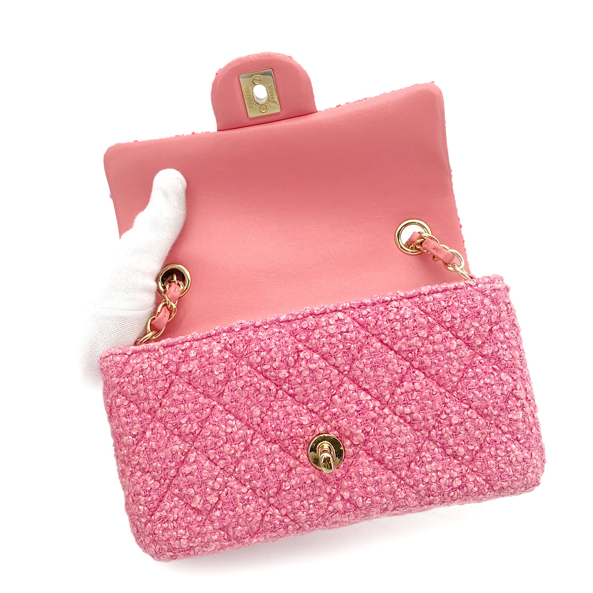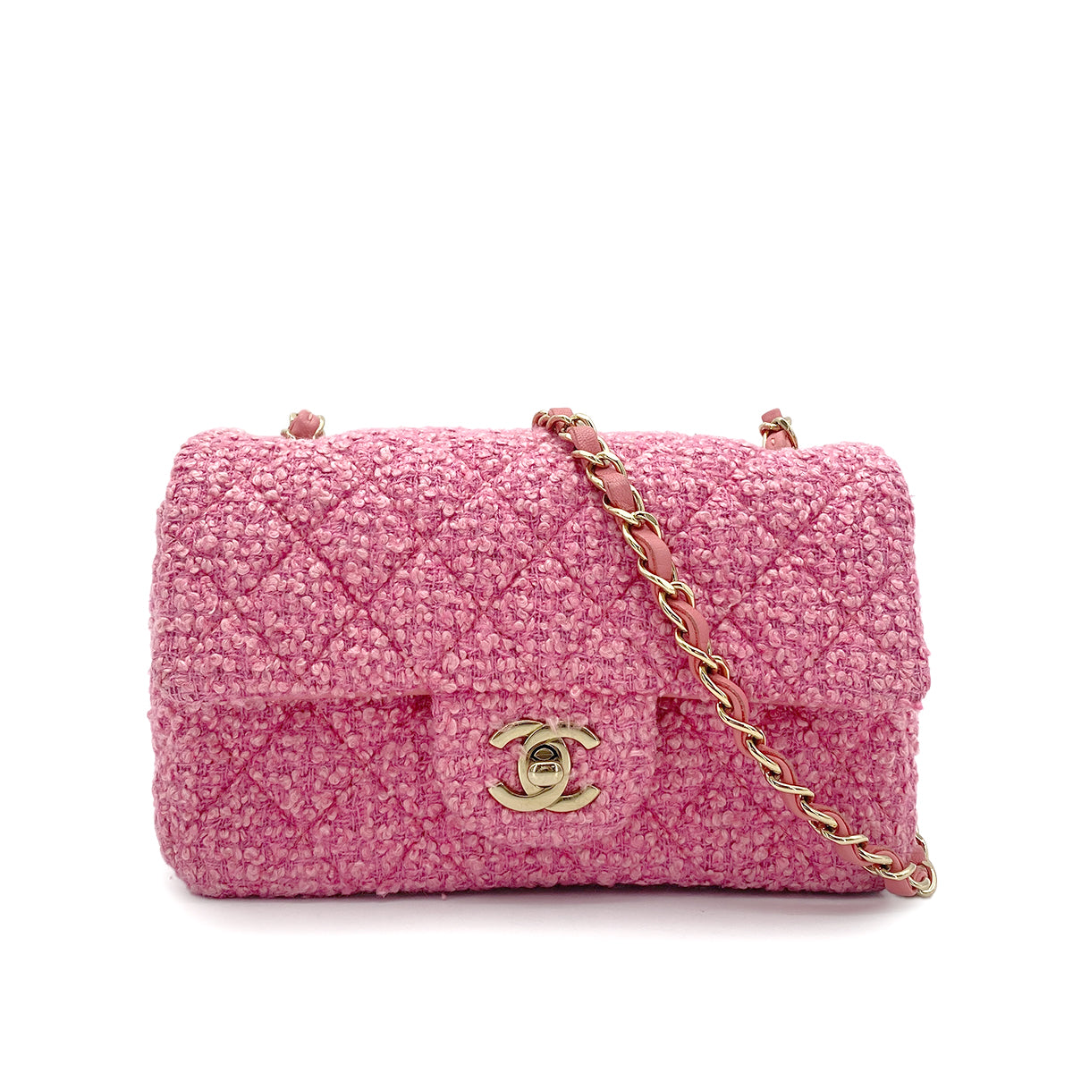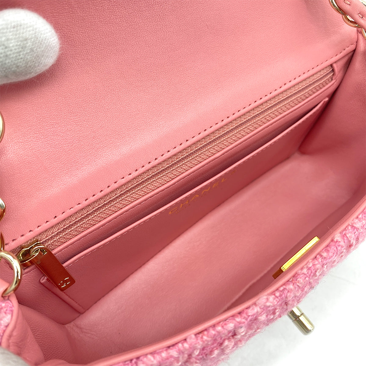 CHANEL MINI CHAIN SHOULDER BAG PINK TWEED 90264749