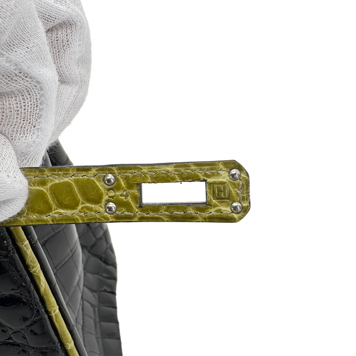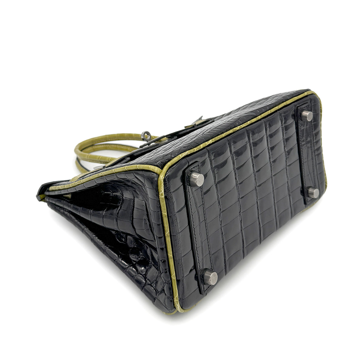 HERMES BIRKIN 25 BLACK CHARTREUSE CROCODILE NILOTICUS LISSE HAND BAG □H SHW 90267754