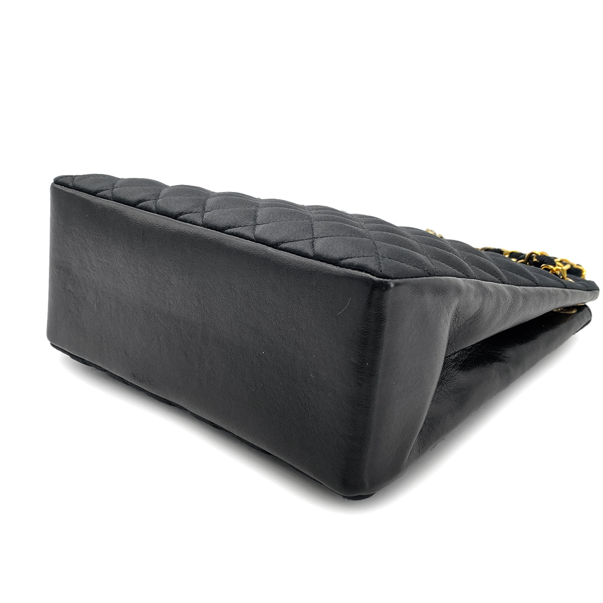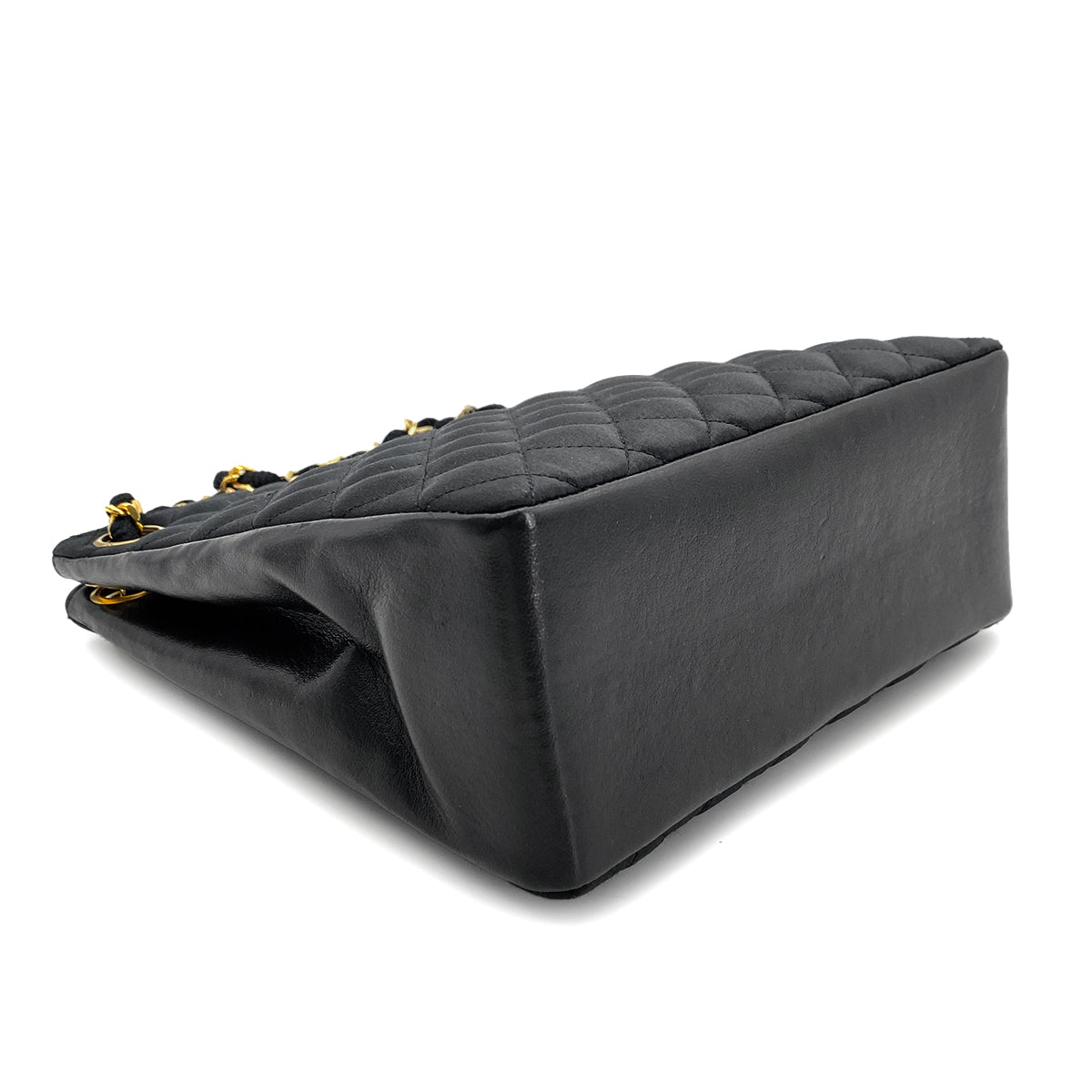 CHANEL VINTAGE MATELASSE CHAIN TOTE BAG BLACK SATIN LAMB SKIN 90268876