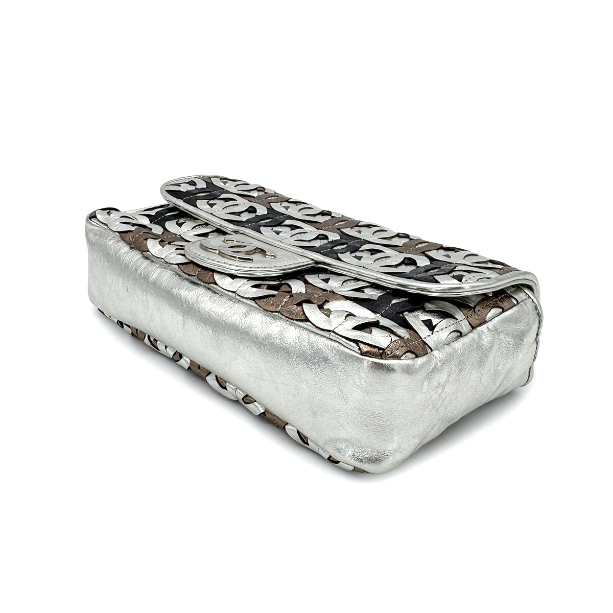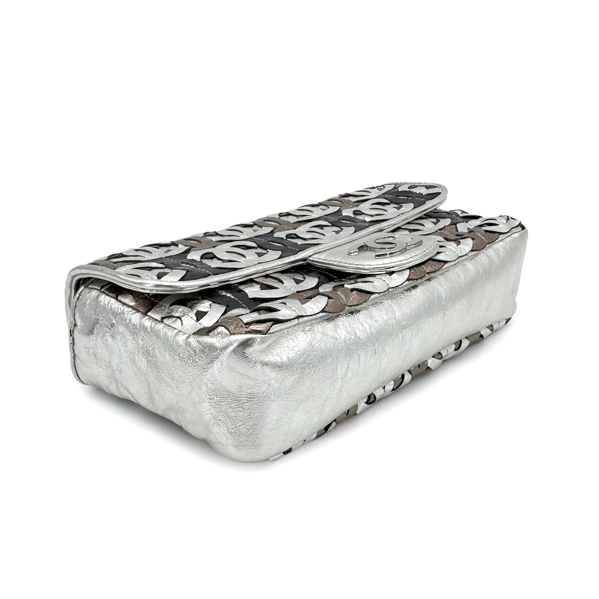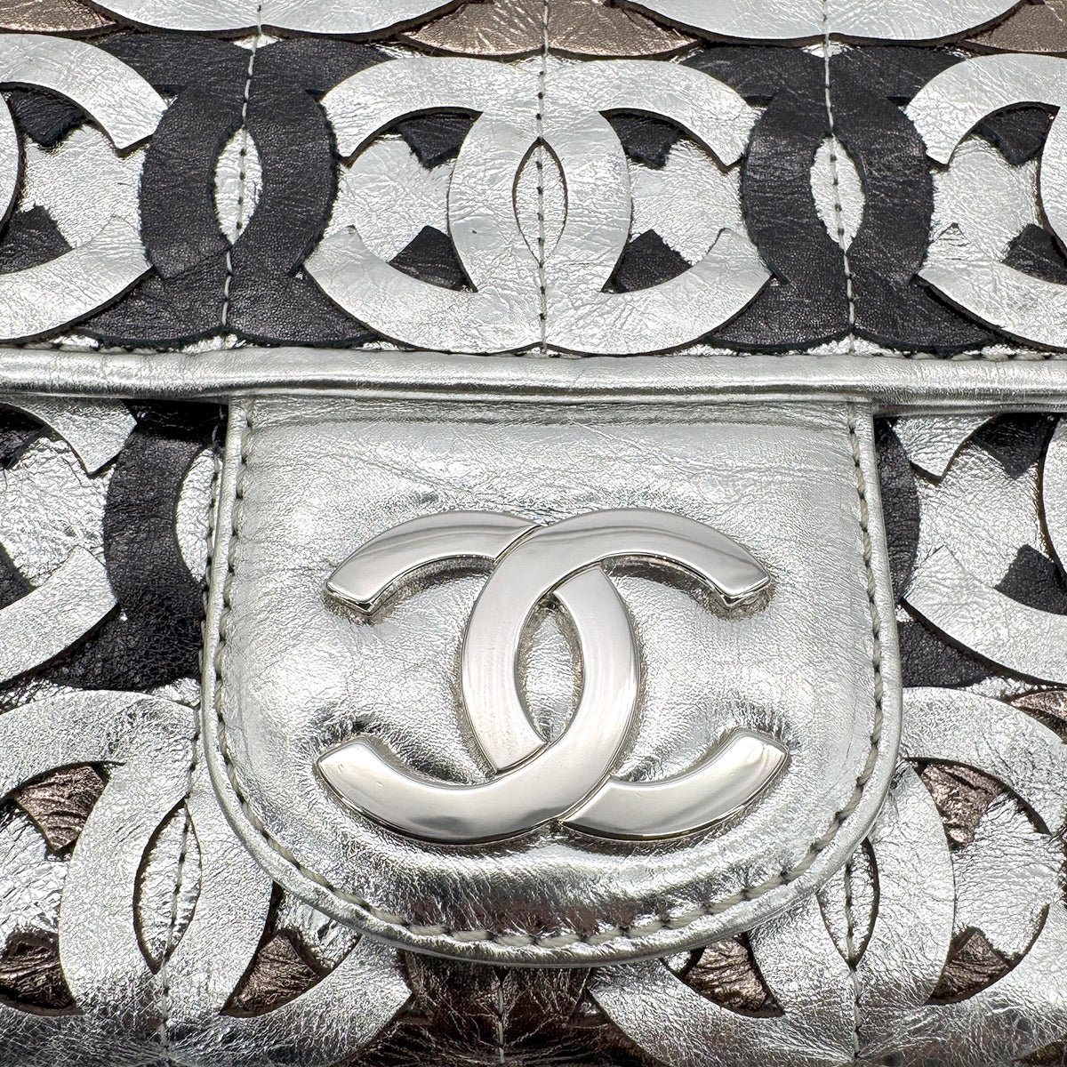 CHANEL VINTAGE CC PATCHWORK CHAIN SHOULDER BAG METALICSILVER LEATHER 90269625