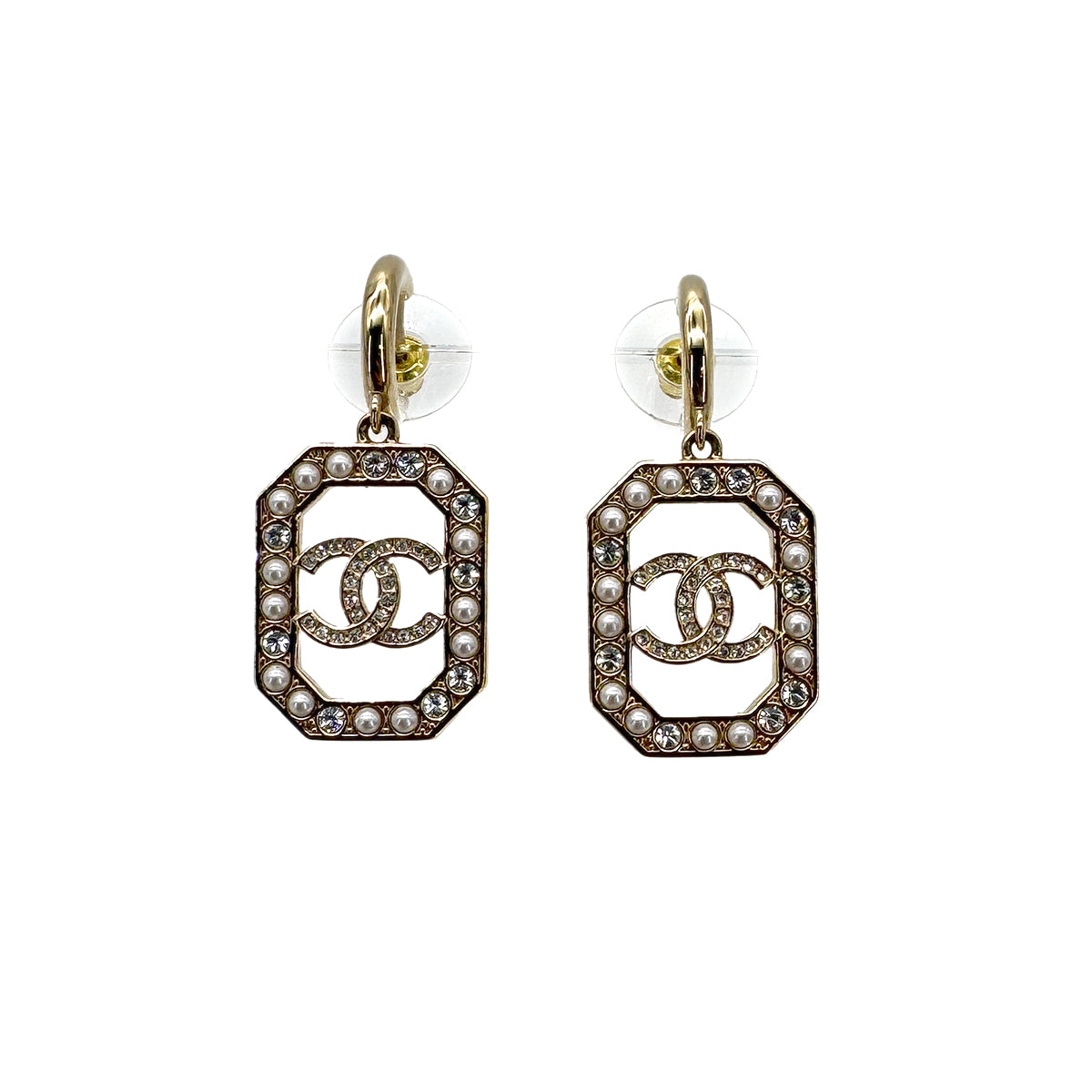 CHANEL EARRINGS COCOMARK RHINESTONE FAUX PEARL ACCESSORY L23B 90272830