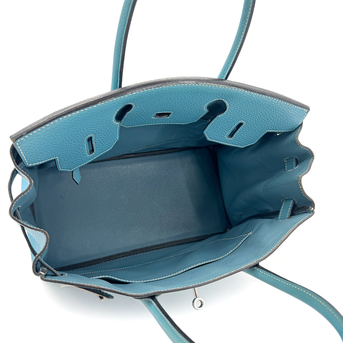 HERMES BIRKIN 30 BLUE JEAN TAURILLON CLEMENCE HAND BAG ▢E SHW 90274046