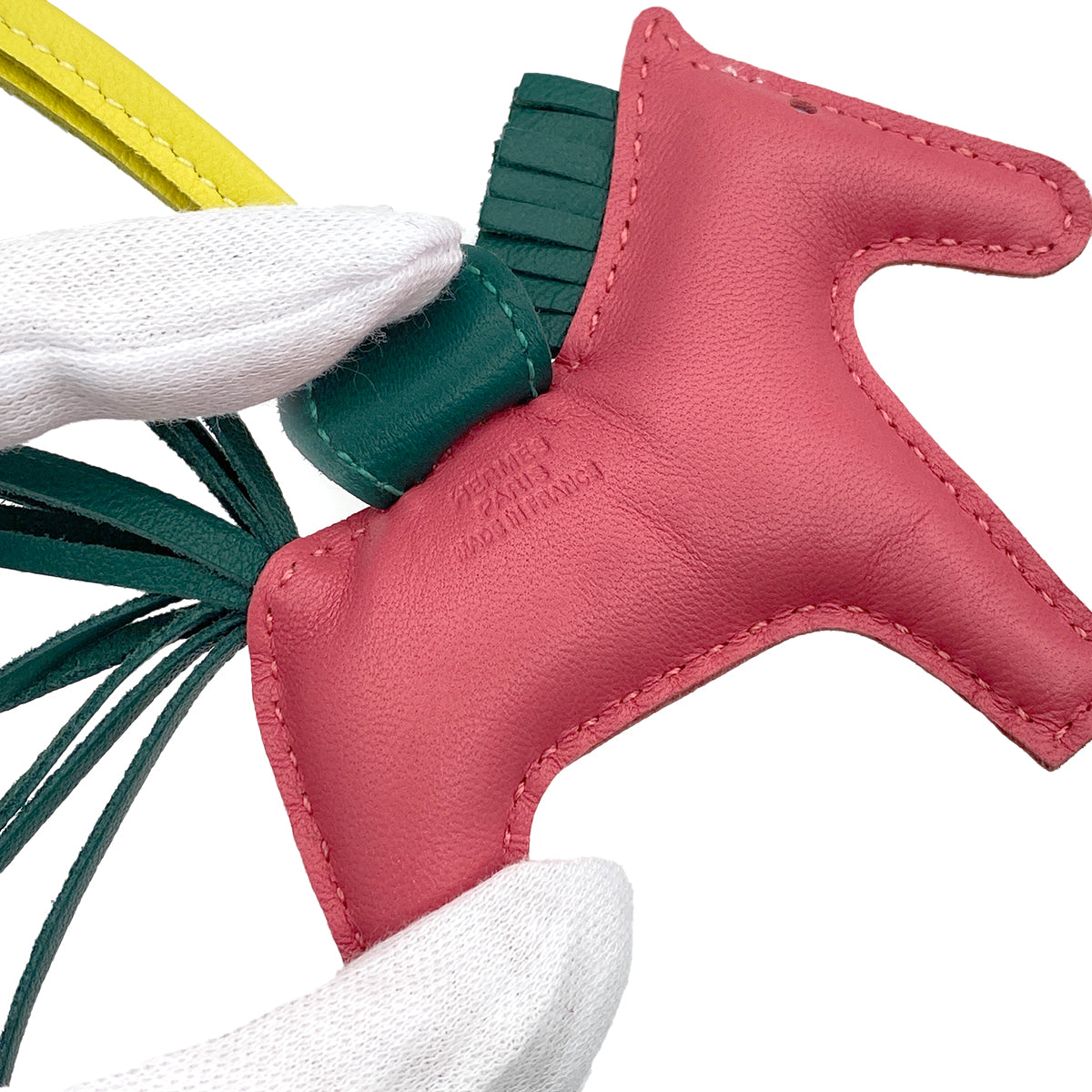 HERMES BAG CHARM RODEO PM ROSE AZALEE MALACHITE LIME AGNEAU MILO 90274066