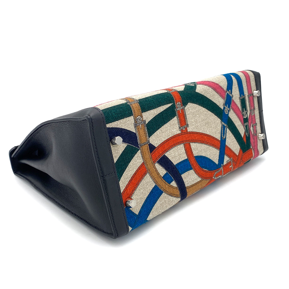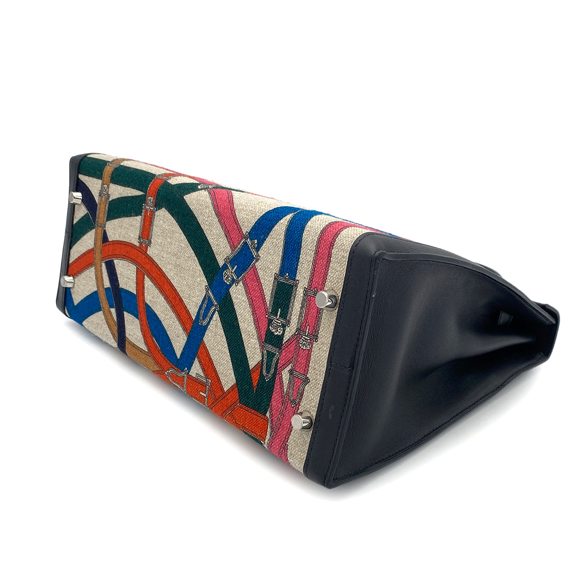 HERMES KELLY 32 SELLIER CAVALCADOUR BLACK TOILE DE CAMP SWIFT HAND SHOULDER BAG C SHW 90275149