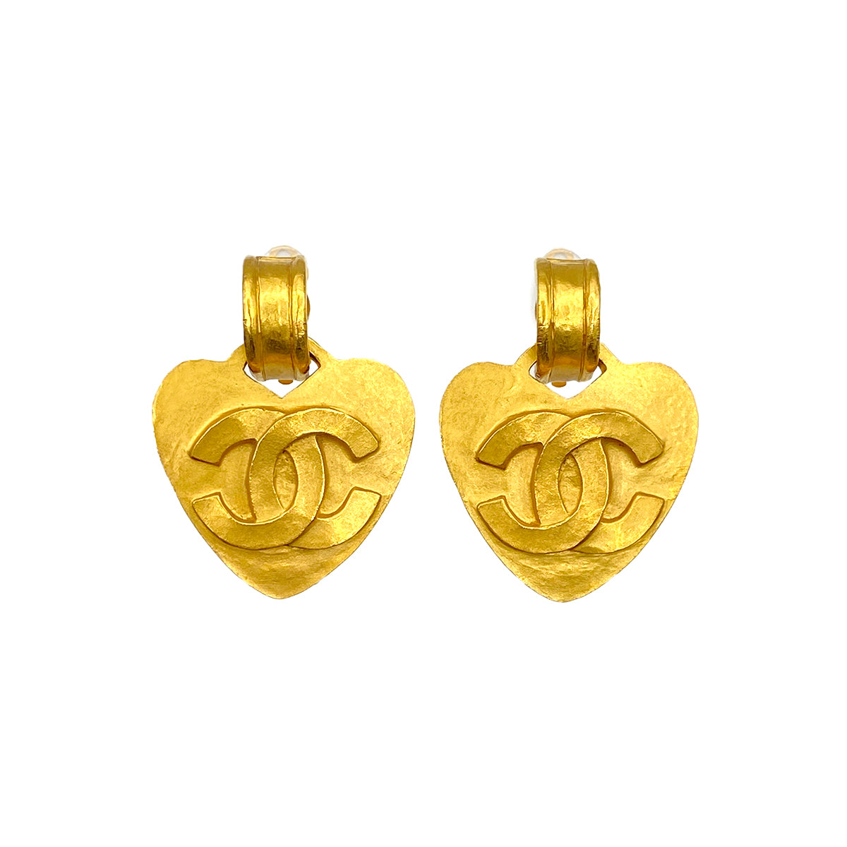 CHANEL VINTAGE HEART EARRINGS COCOMARK ACCESSORY 95P 90275813