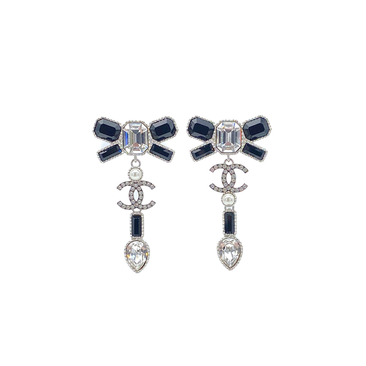 CHANEL EARRINGS COCOMARK RIBBON RHINESTONE PEARL ACCESSORY B23K 90276395
