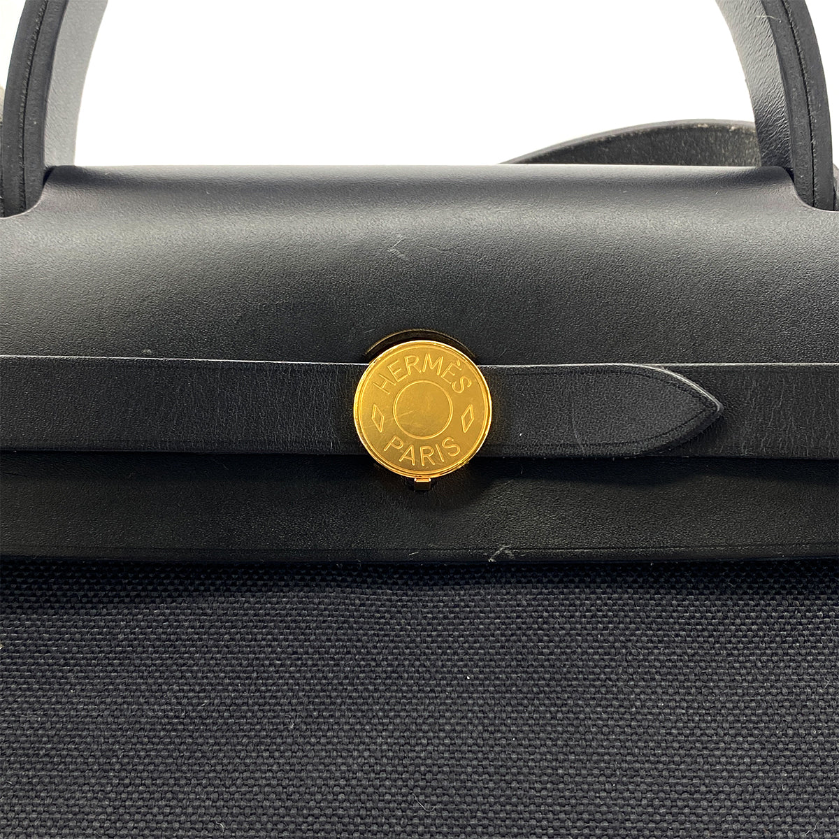 HERMES HER BAG ZIP PM 31 BLACK VACHE HUNTER TOILE MILITARY TOTE SHOULDER BAG Z 90278723