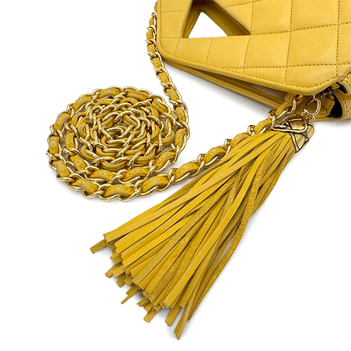 CHANEL VINTAGE MATELASSE FRINGE HAND CHAIN SHOULDER BAG YELLOW LAMB SKIN 90279595
