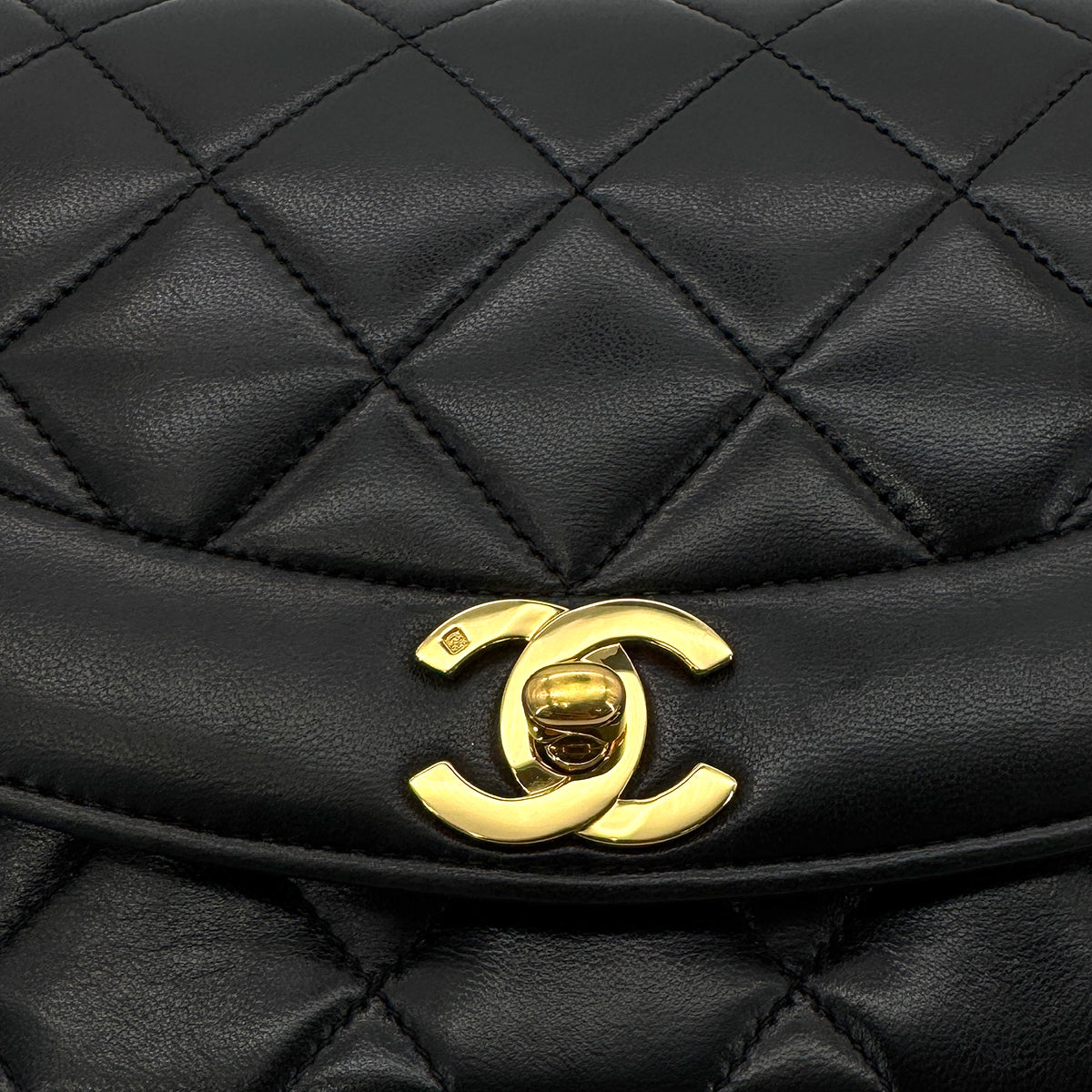 CHANEL VINTAGE DIANA SMALL CHAIN SHOULDER BAG BLACK LAMB SKIN 90279948