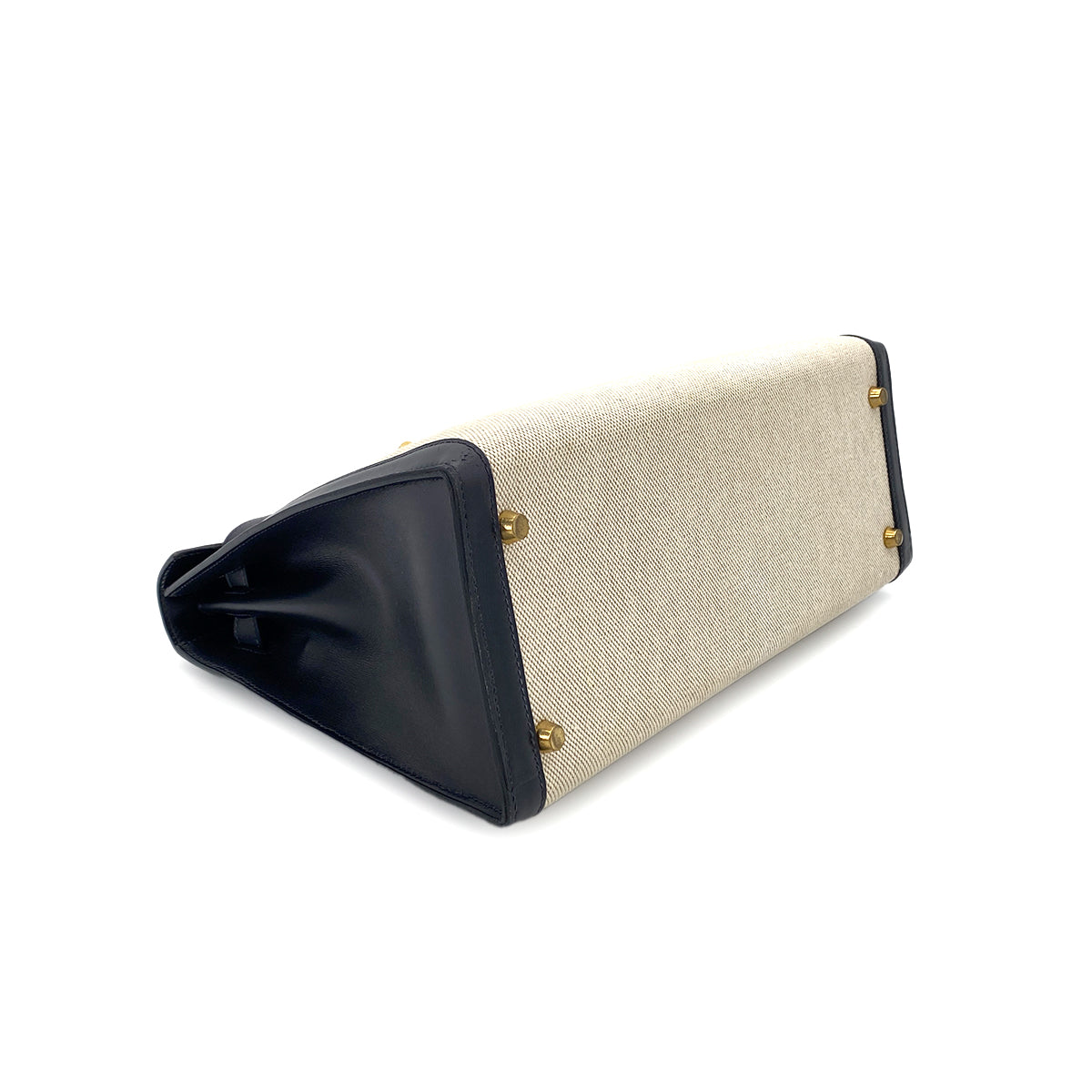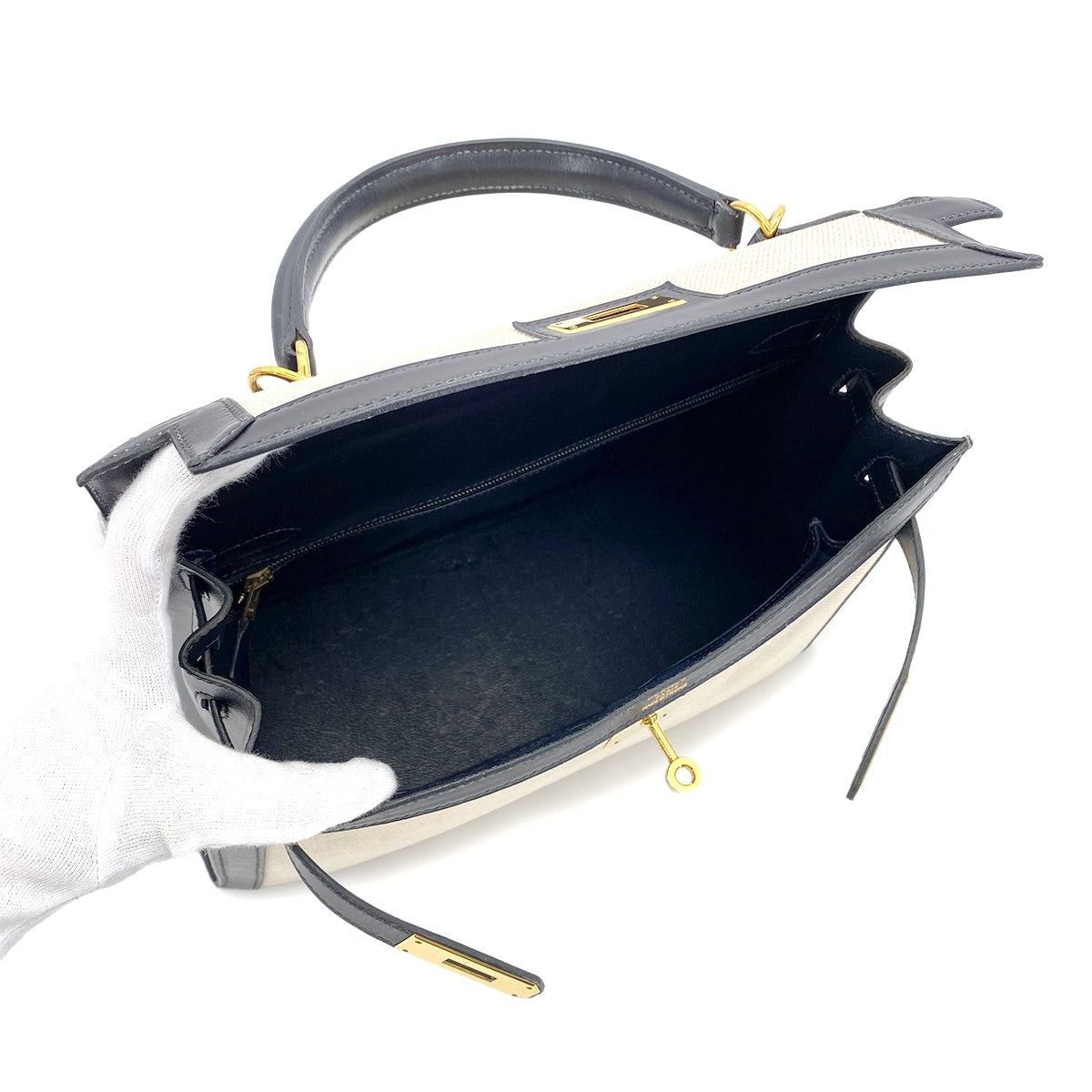 HERMES KELLY 32 BLUE INDIGO BOXCALF TOILE H HAND SHOULDER BAG □D GHW 90280294