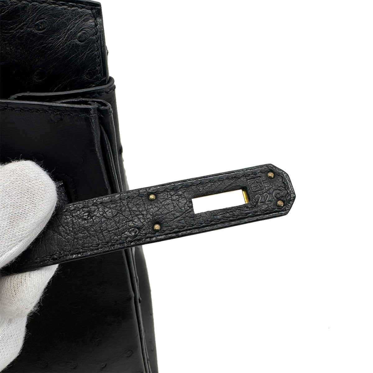 HERMES BIRKIN 35 BLACK OSTRICH HAND BAG □A GHW 90283466
