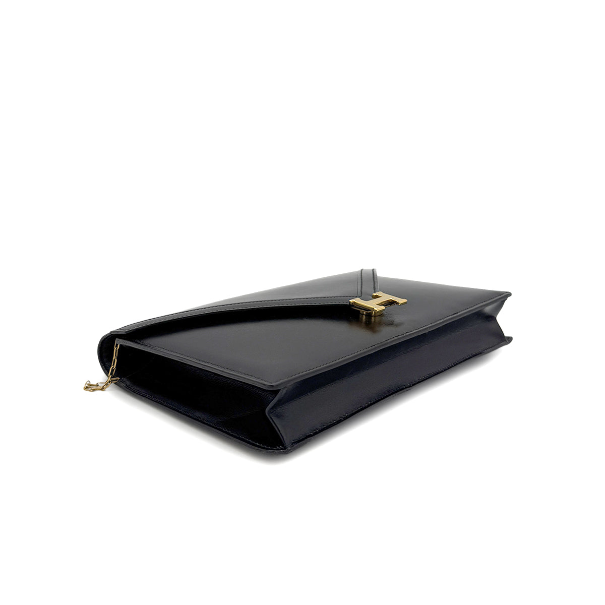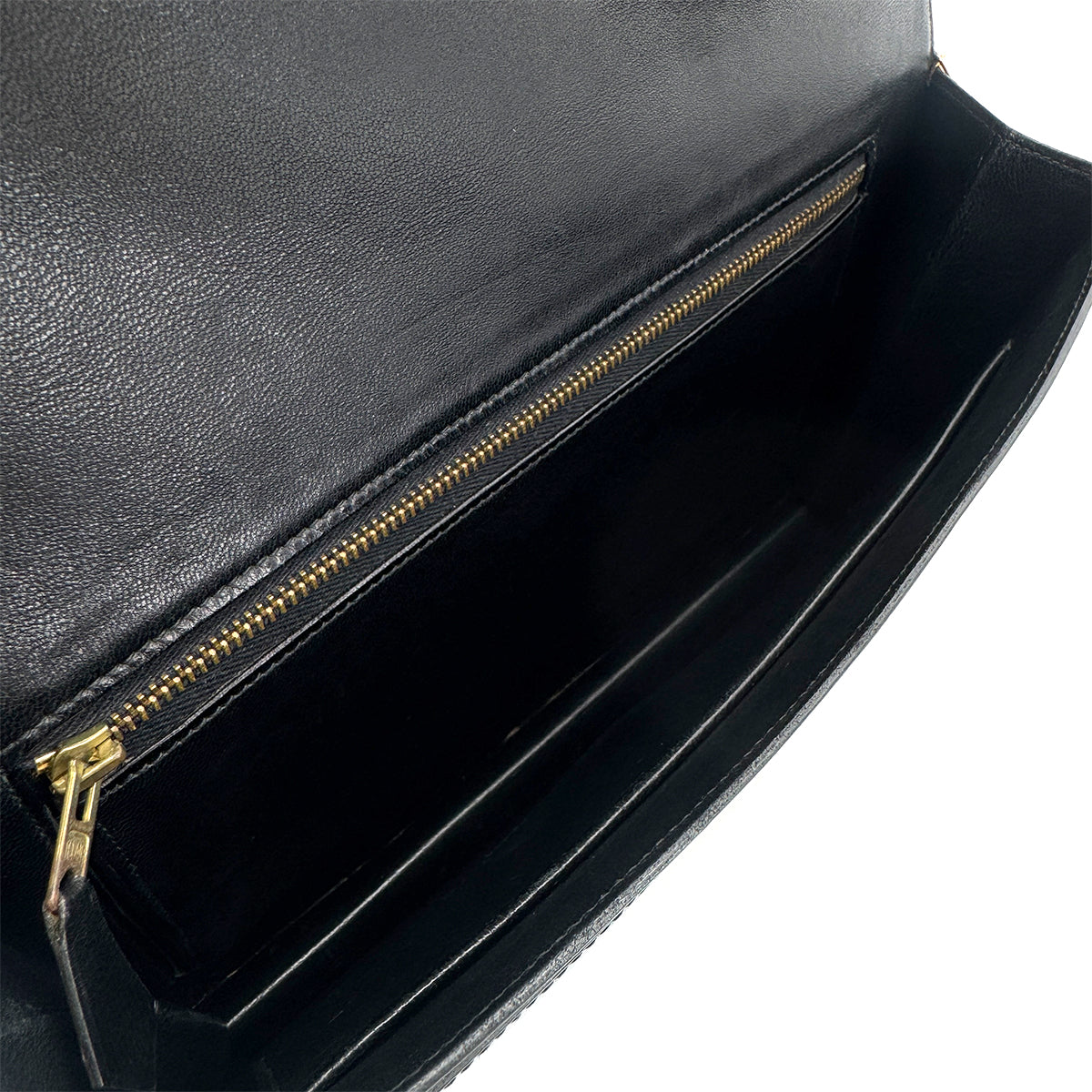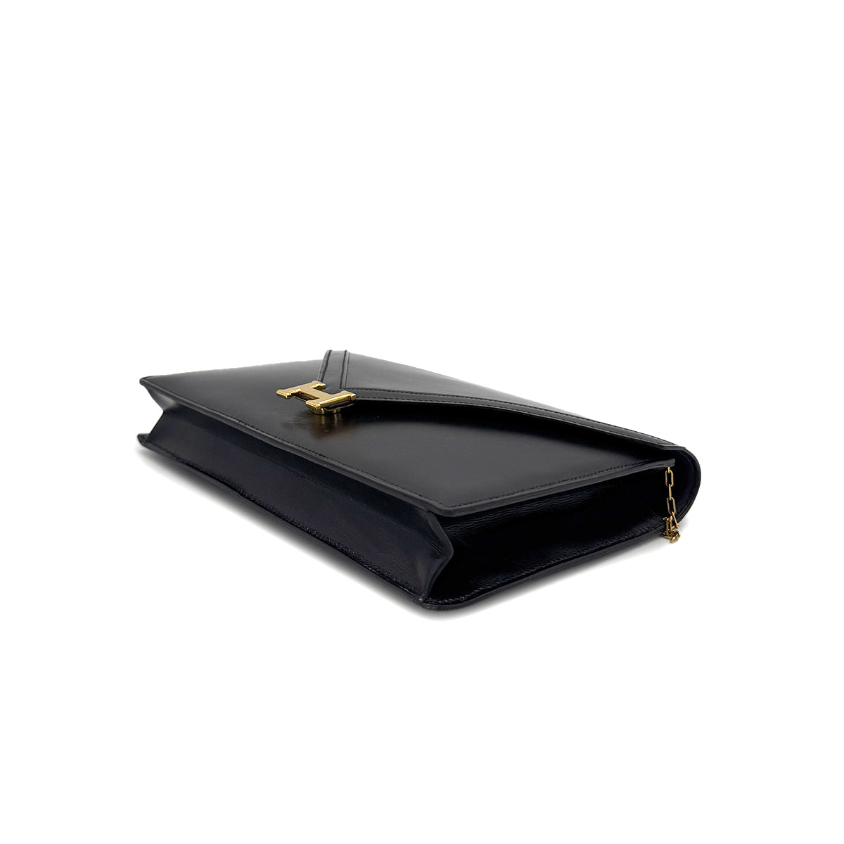 HERMES LYDIE BLACK CLUTCH SHOULDER BAG BOXCALF 〇F 90285154