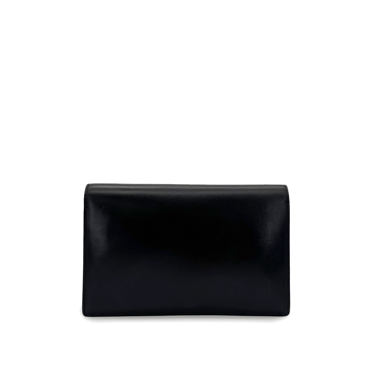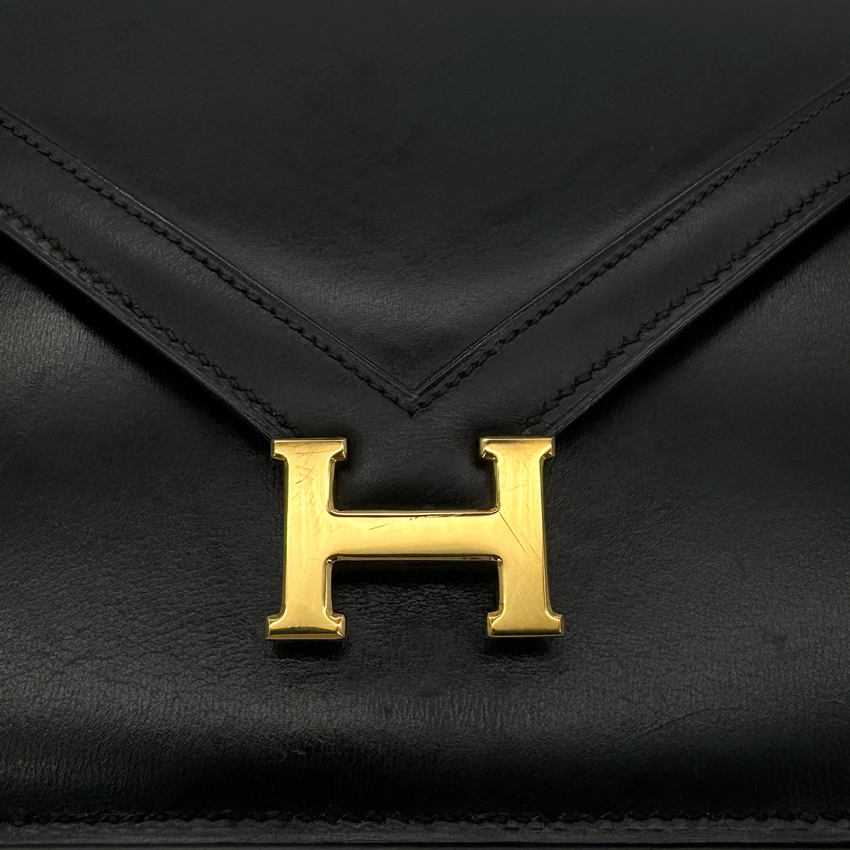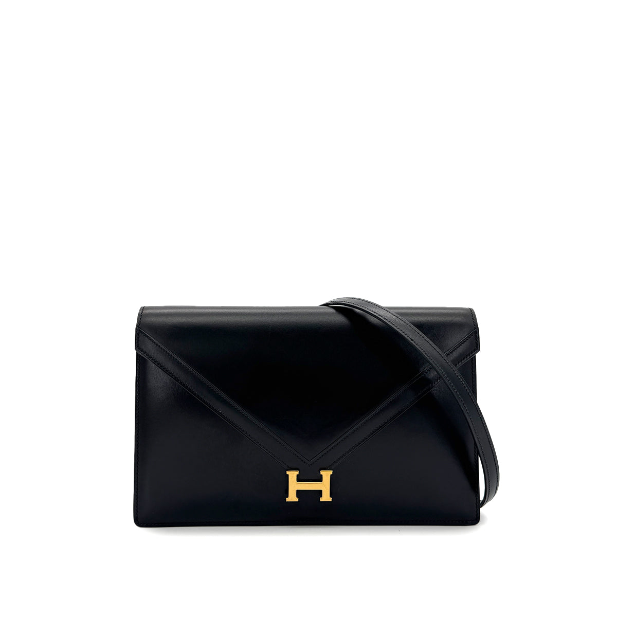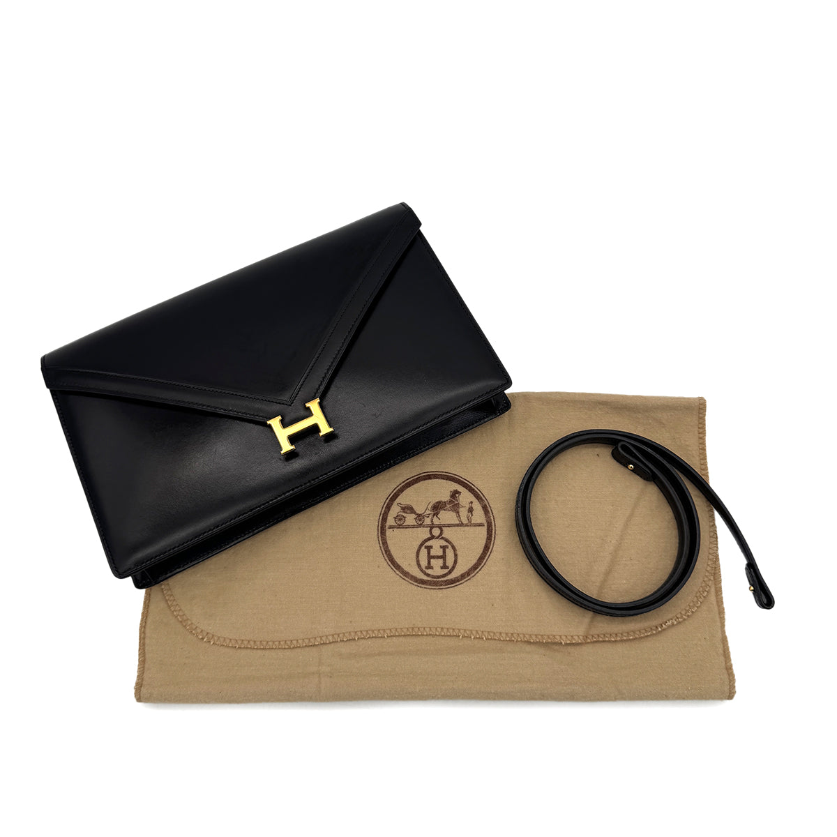 HERMES LYDIE BLACK CLUTCH SHOULDER BAG BOXCALF 〇F 90285154