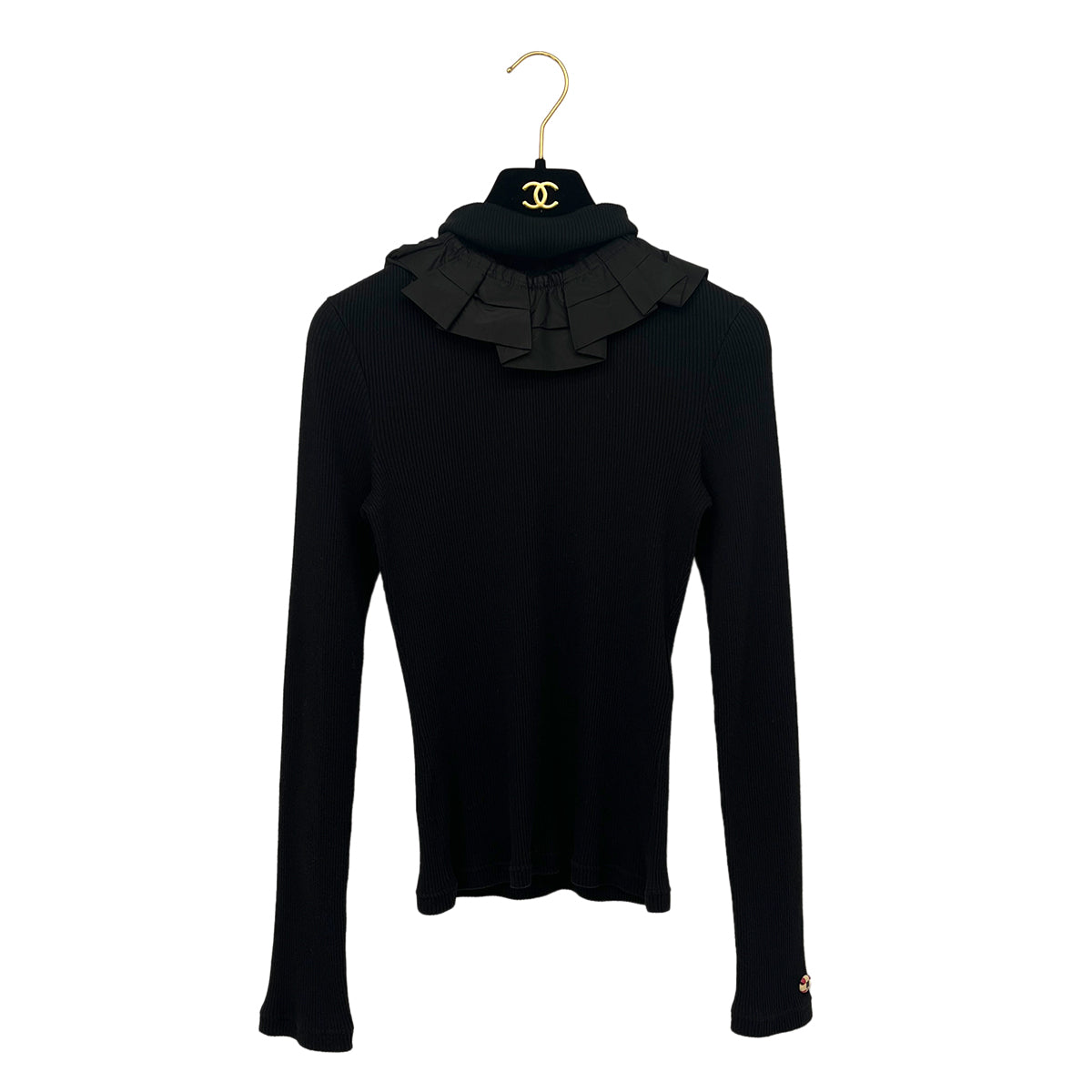 CHANEL FRILLS TOPS BLACK COTTON 34 P57 RTW 90288015