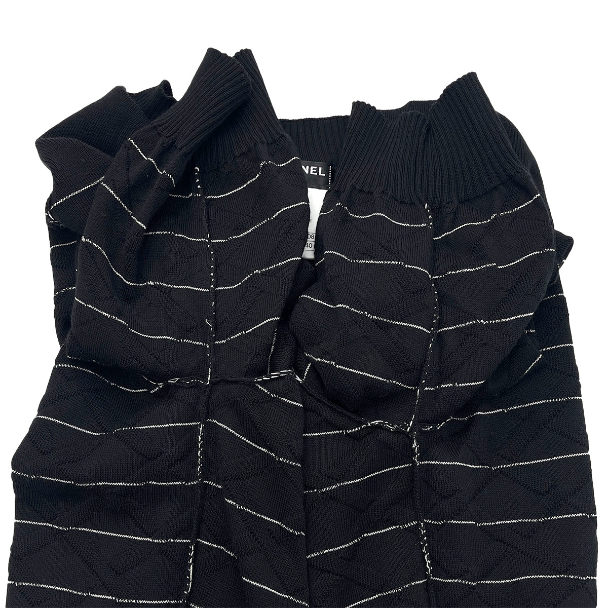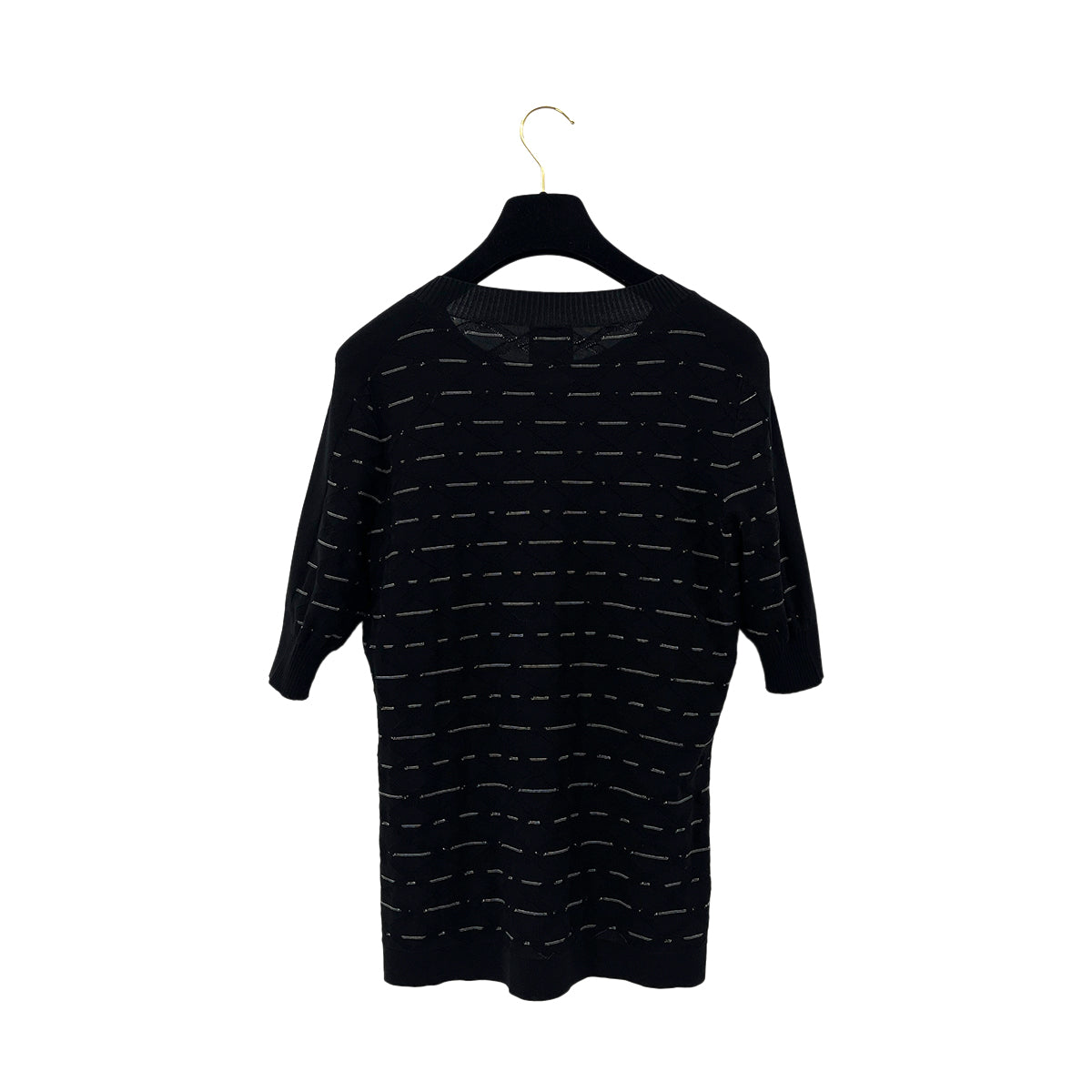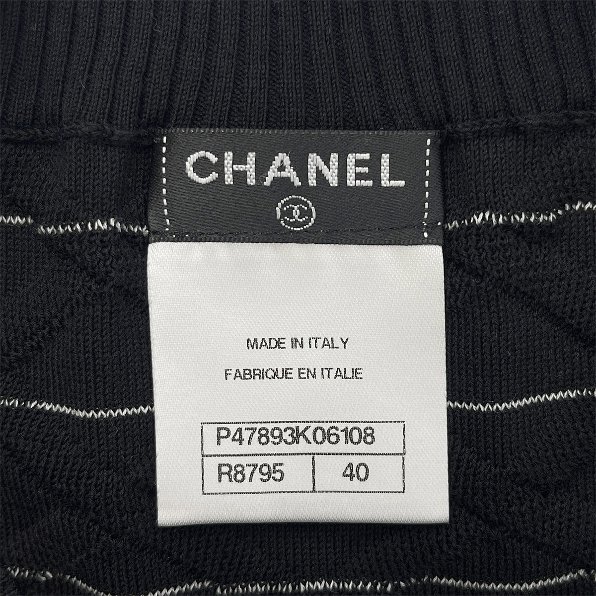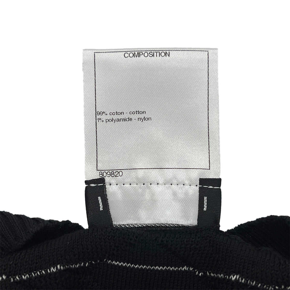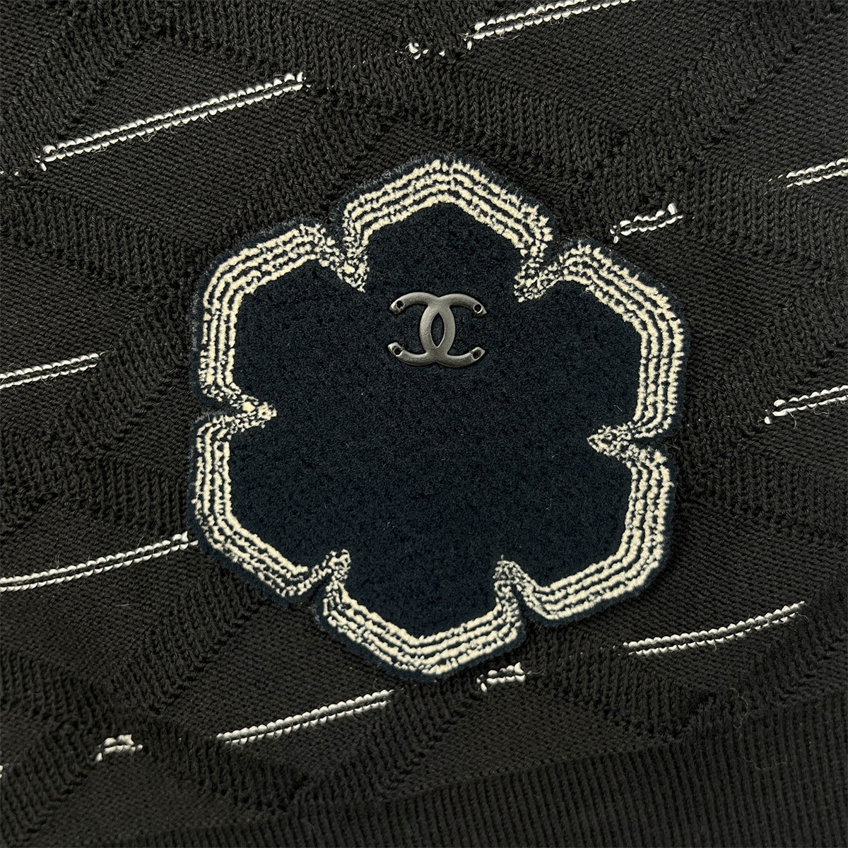CHANEL COCOMARK CAMELLIA STRIPE HALF SLEEVE TOPS BLACK COTTON 40 P47 RTW 90288050