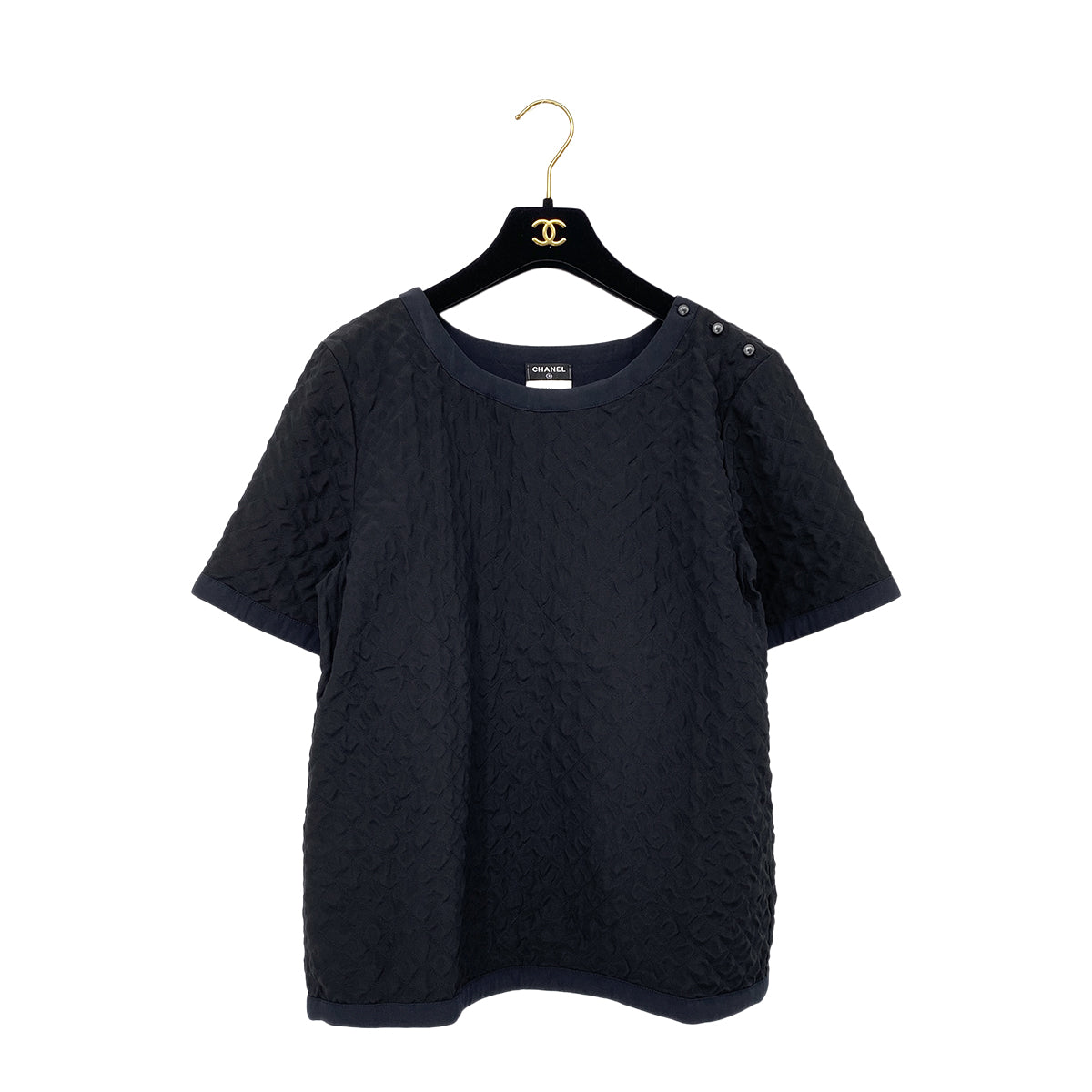 CHANEL MATELASSE COCO BUTTON T-SHIRT BLACK NAVY 40 P52 RTW 90288053