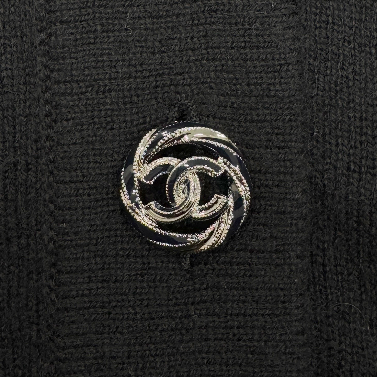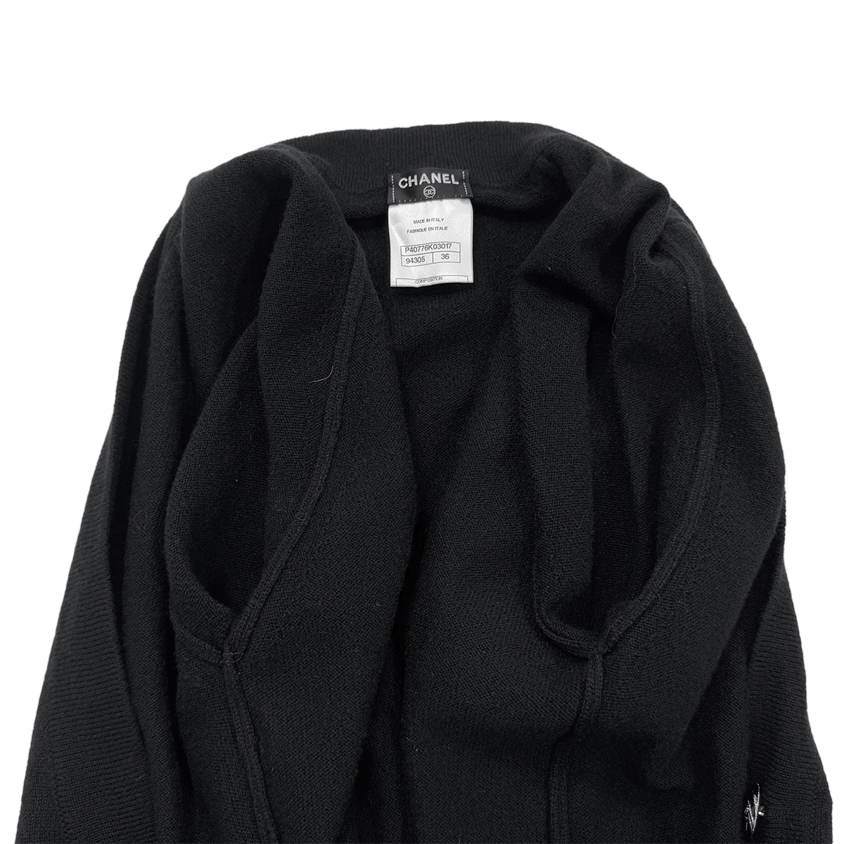 CHANEL COCO BUTTON LONG CARDIGAN BLACK CASHMERE 36 P40 RTW 90288054