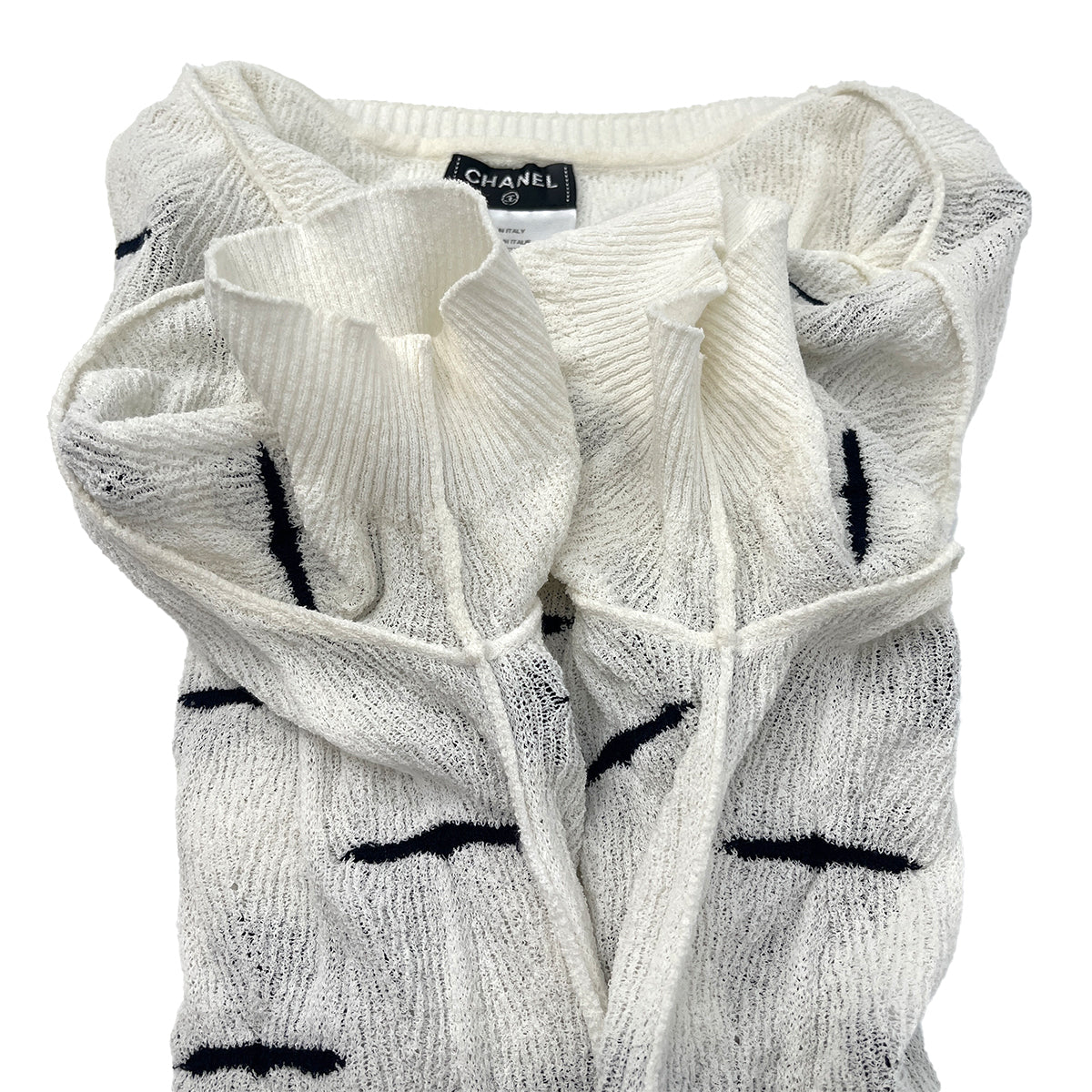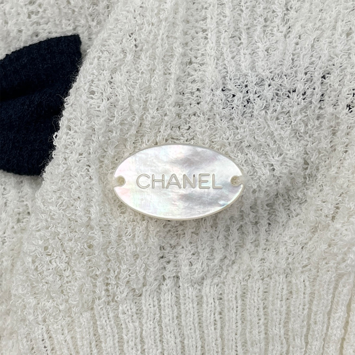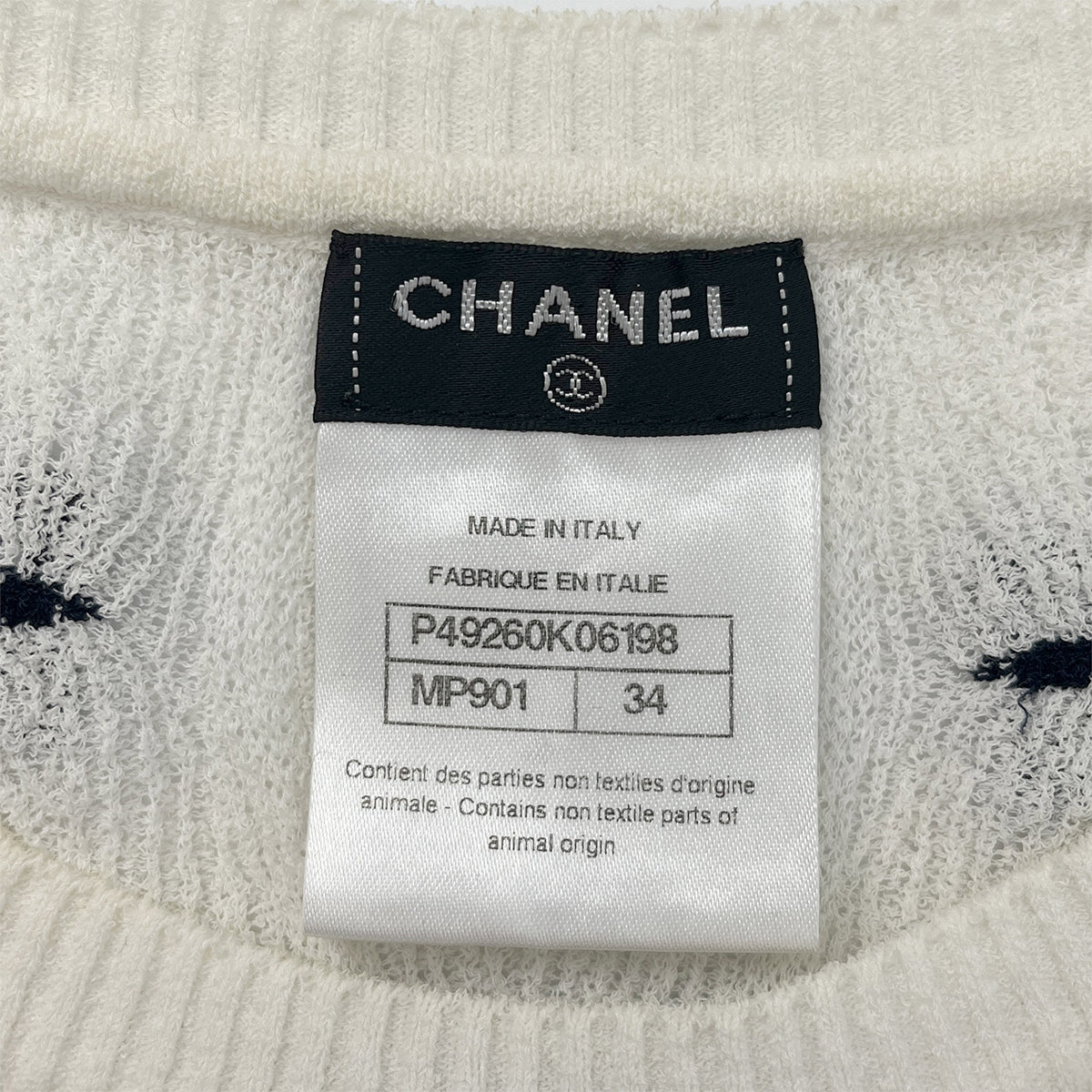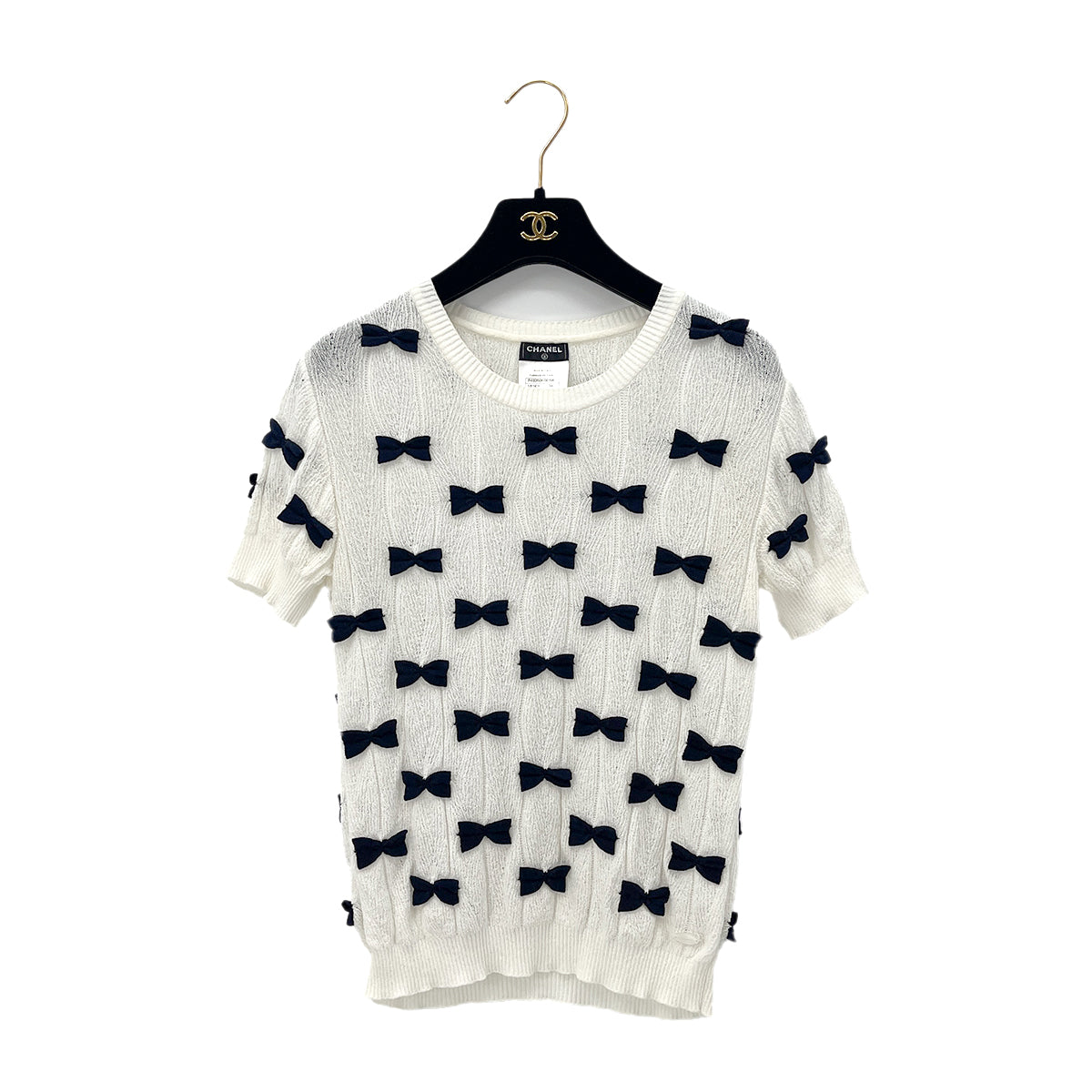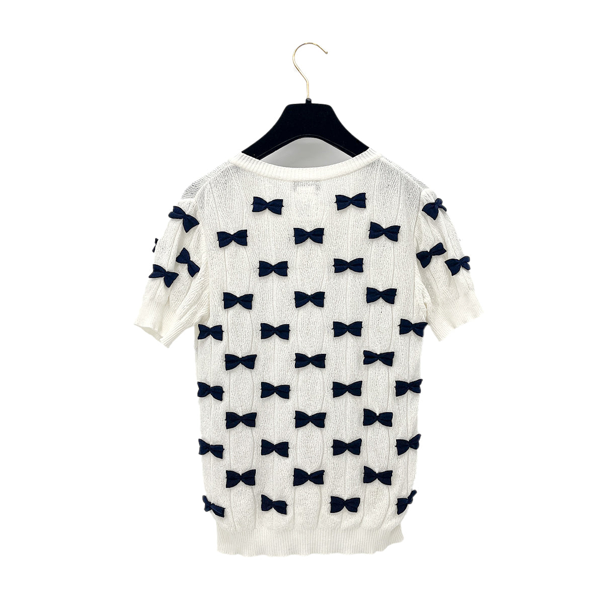CHANEL RIBBON MOTIF HALF SLEEVE TOPS WHITE COTTON 34 P49 RTW 90288057