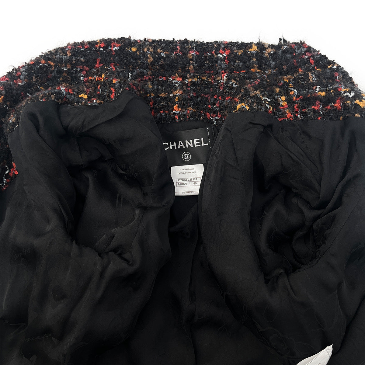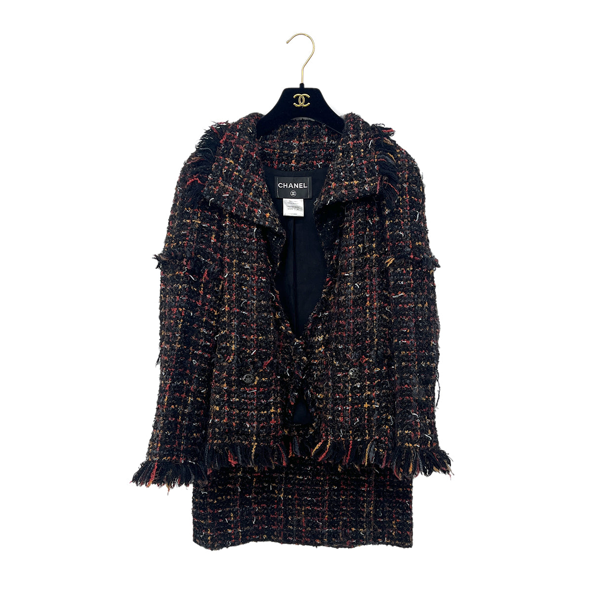 CHANEL TWEED JACKET SKIRT SET COCO BUTTON MULTICOLOR WOOL 40 P39 RTW 90288514