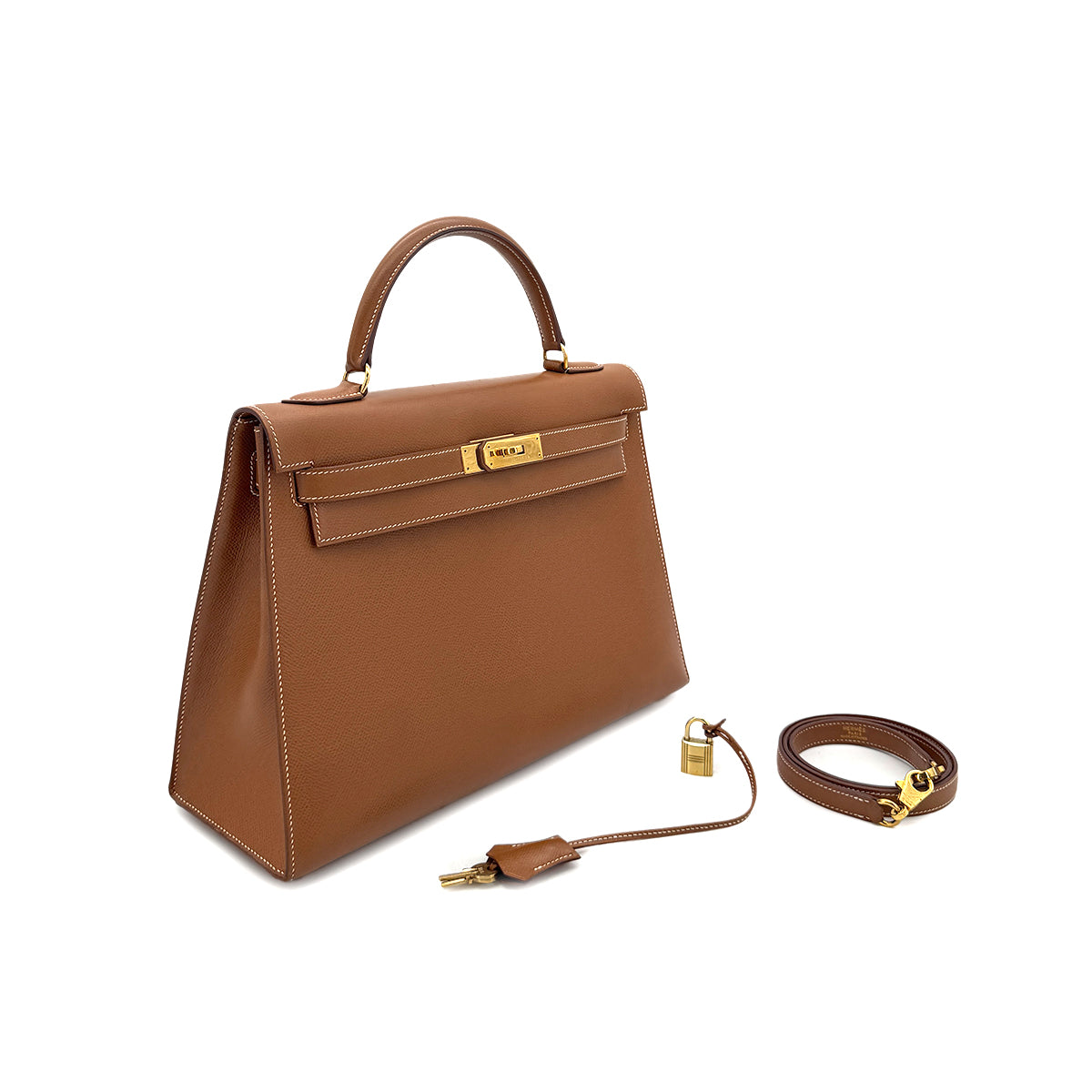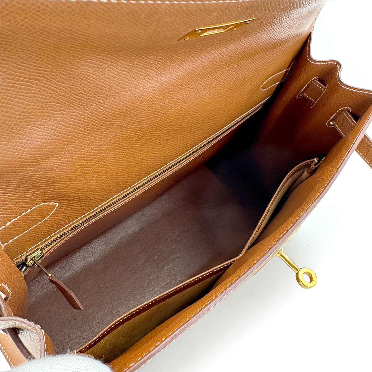 HERMES KELLY 32 SELLIER GOLD COUCHEVEL HAND SHOULDER BAG 〇Y GHW 90293255