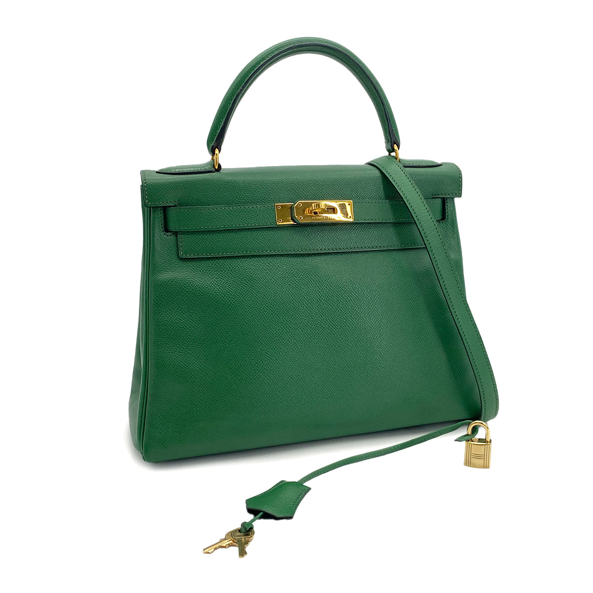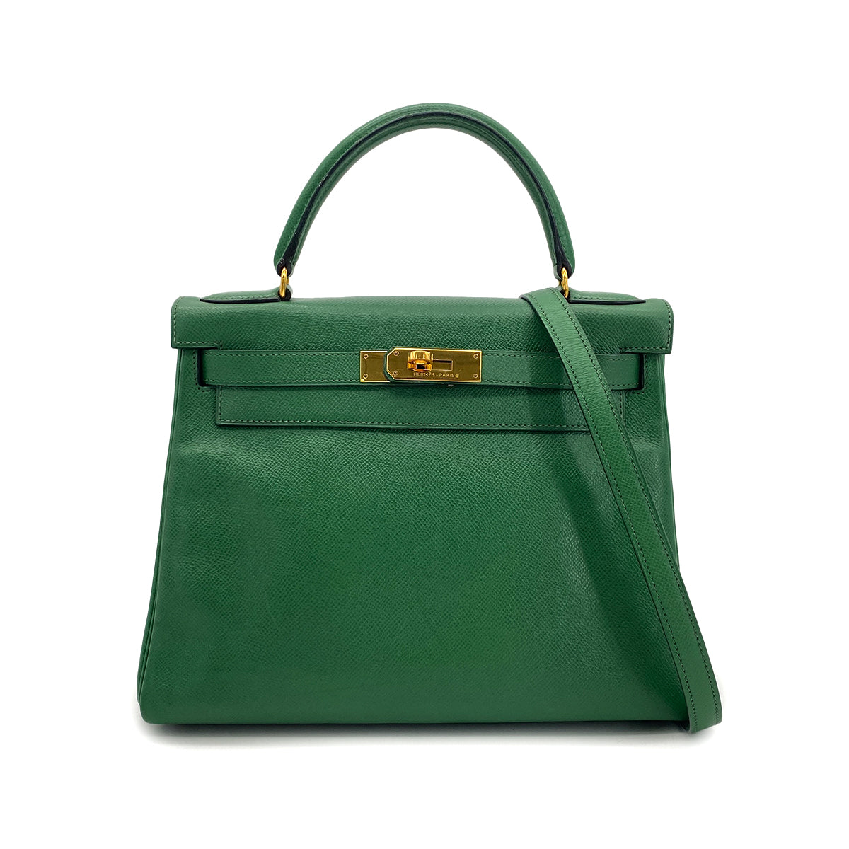 HERMES KELLY 28 RETOURNE GREEN COUCHEVEL HAND SHOULDER BAG 〇U GHW 90294824
