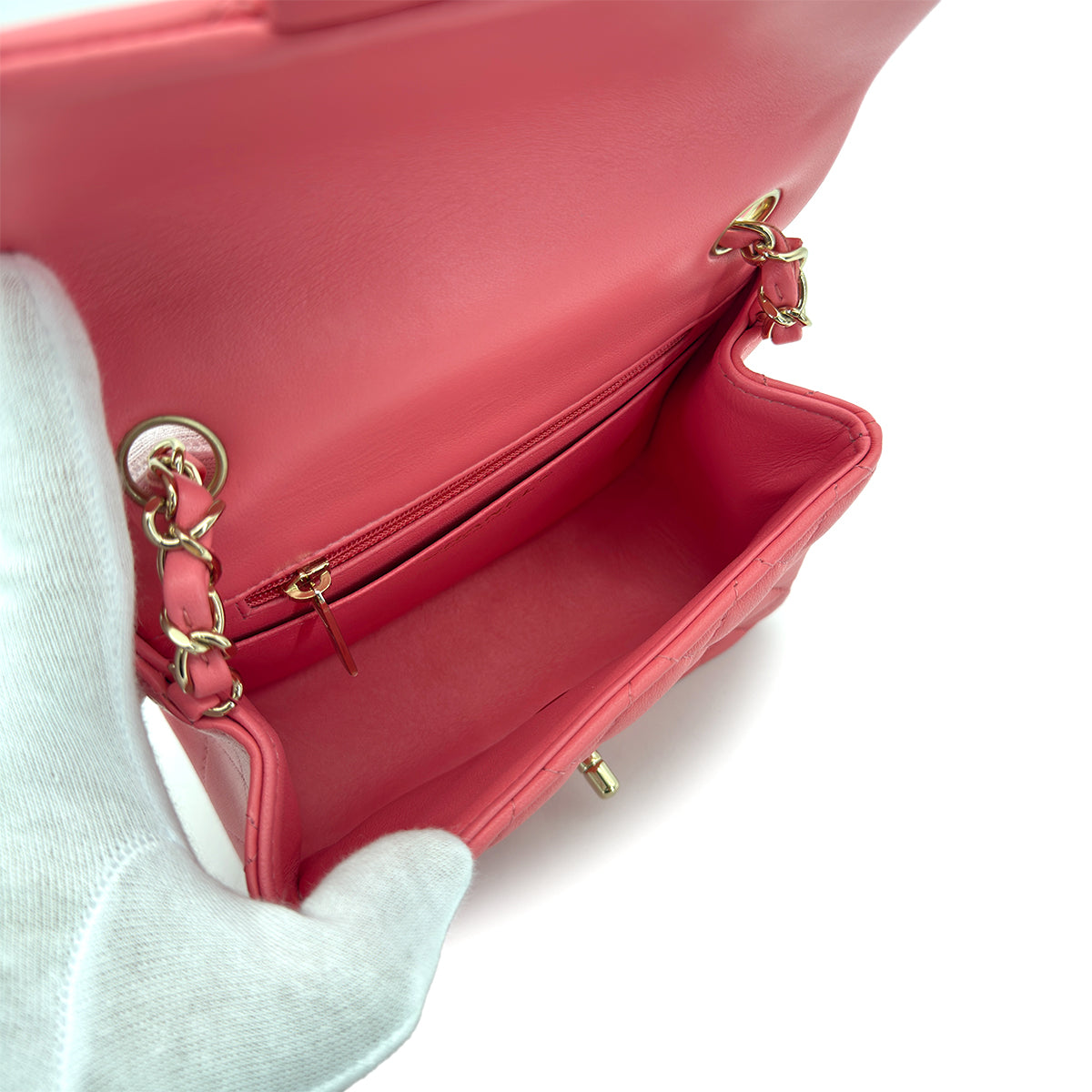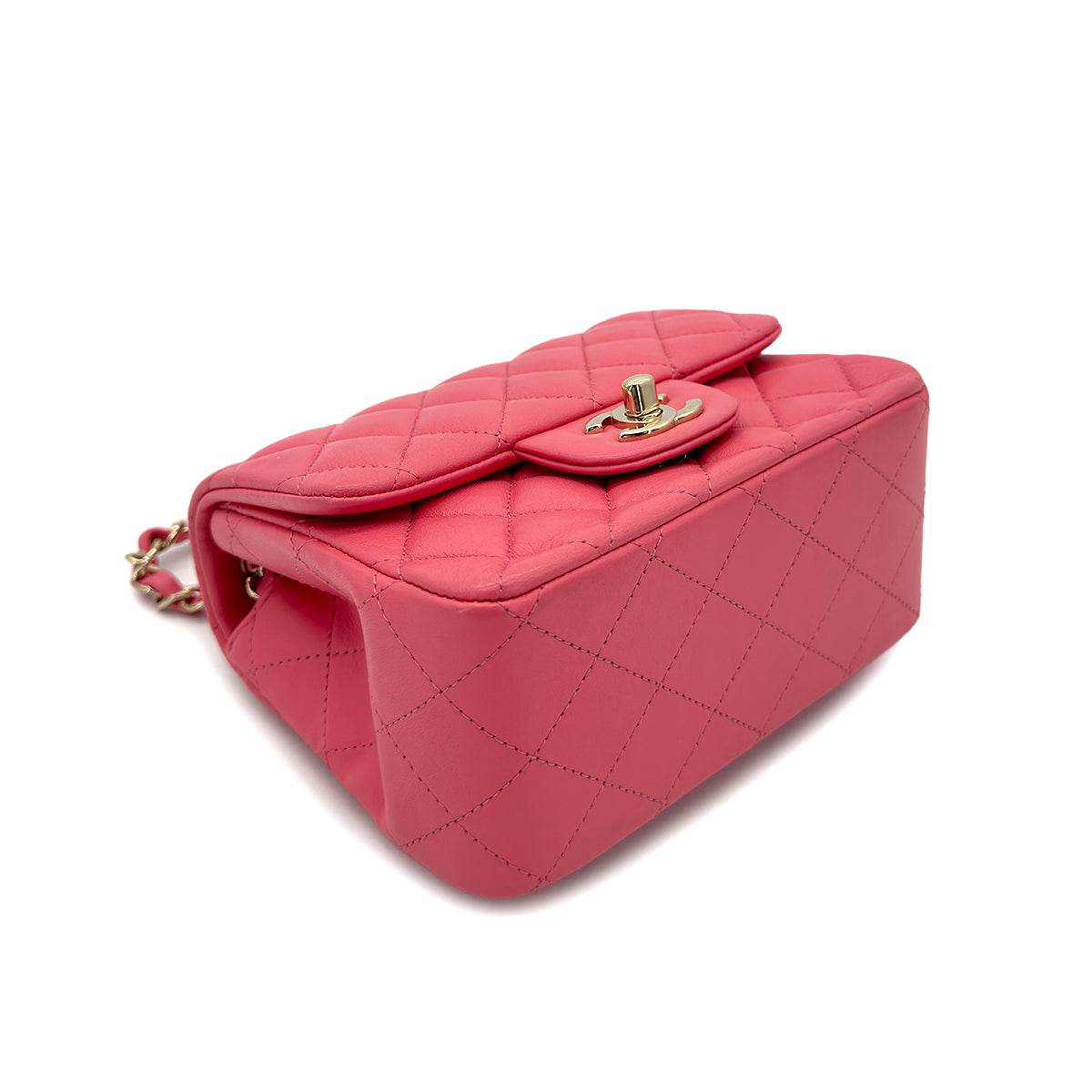 CHANEL VINTAGE MINI SQUARE 17 CHAIN SHOULDER BAG PINK LAMB SKIN 90298159