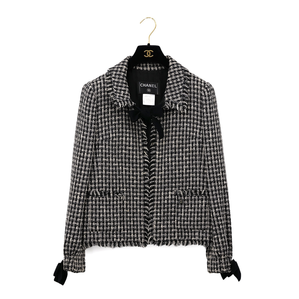 CHANEL RIBBON TWEED JACKET BLACK WOOL 40 04A RTW 90299827