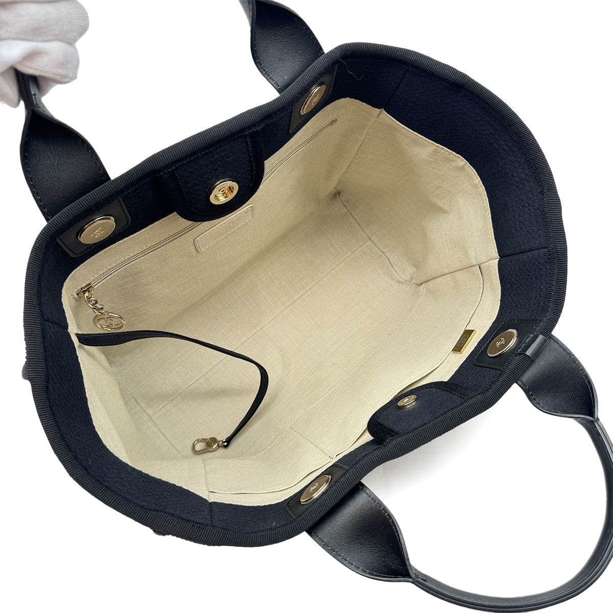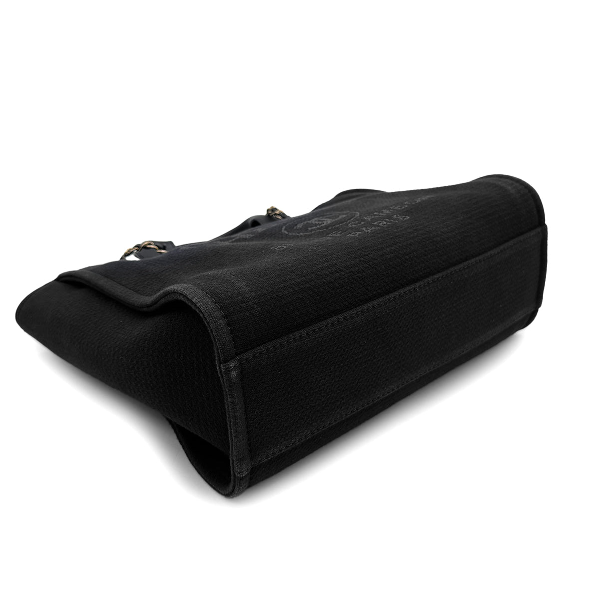 CHANEL DEAUVILLE SMALL CHAIN TOTE BAG BLACK CANVAS LEATHER 90300006
