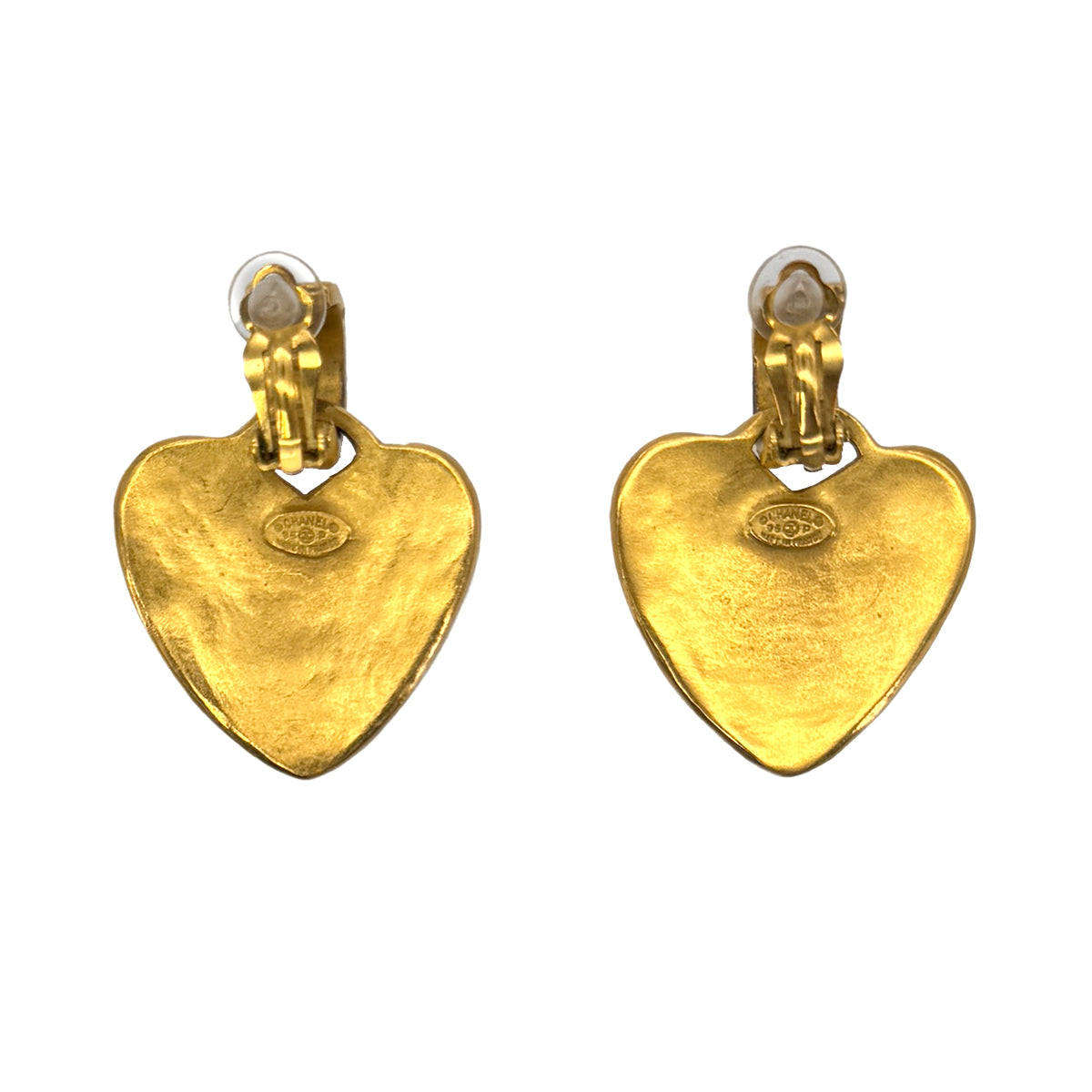 CHANEL VINTAGE EARRINGS HEART COCOMARK ACCESSORY 95P 90300598
