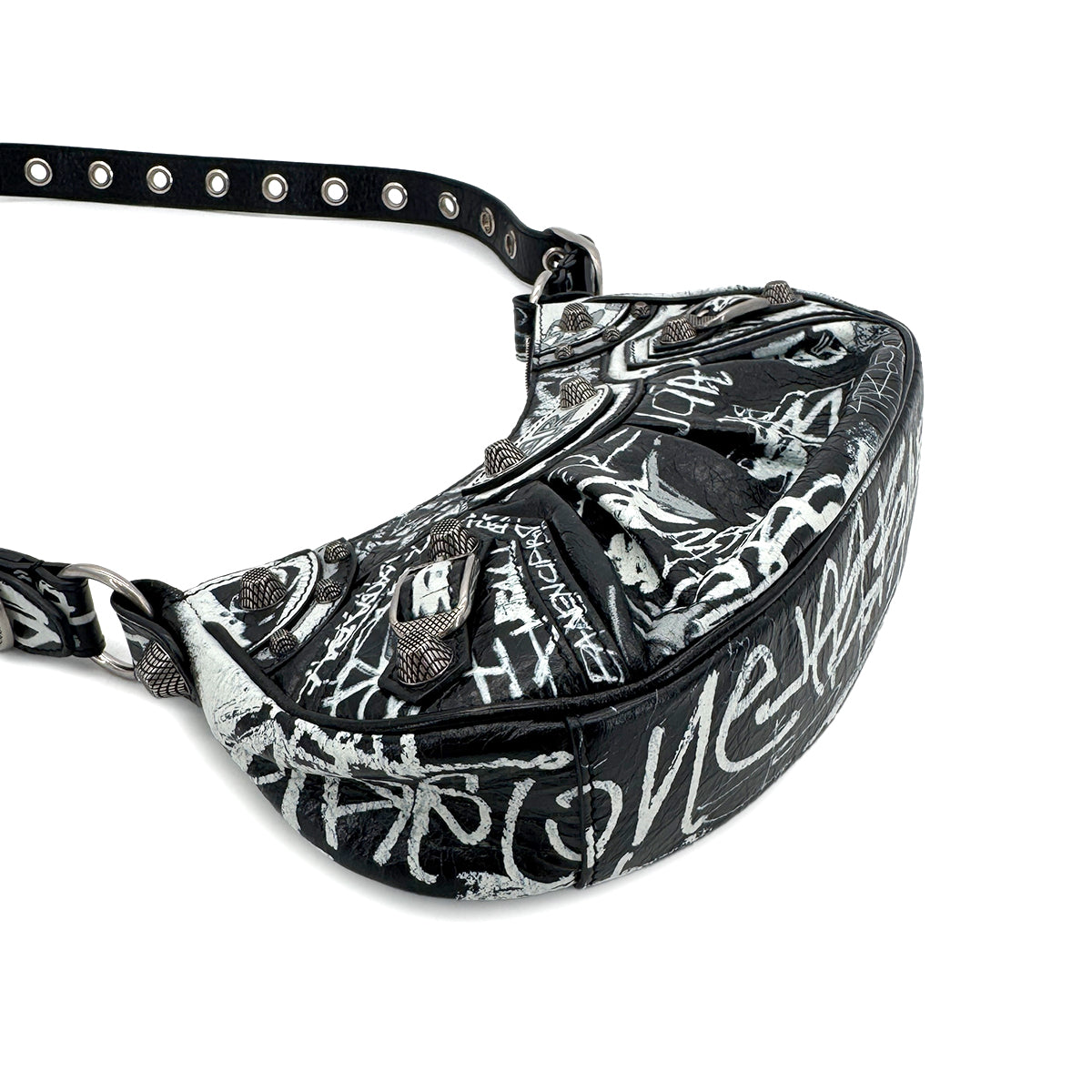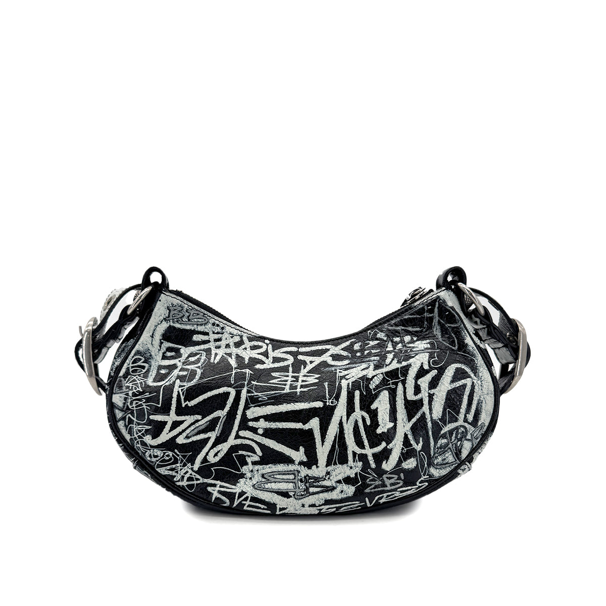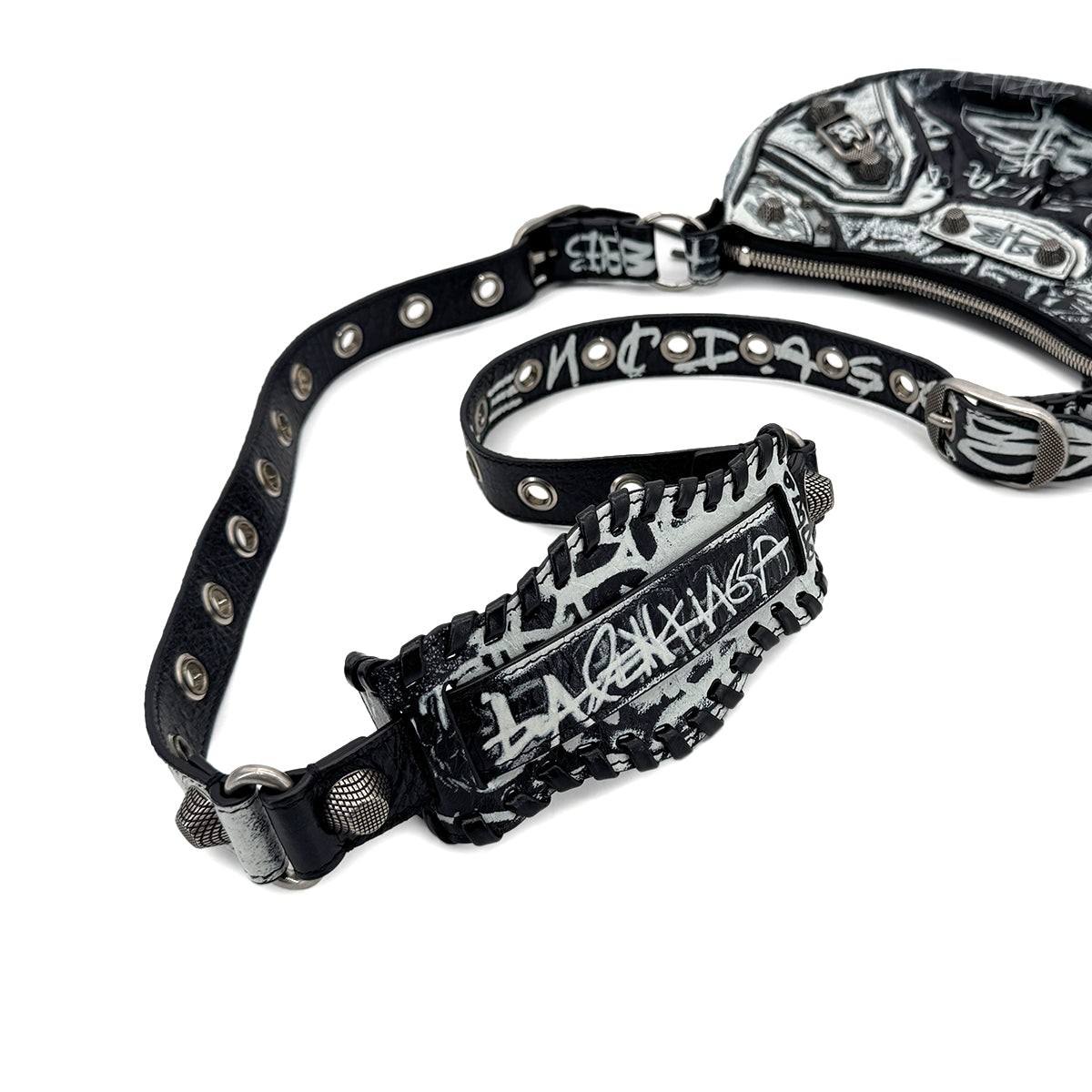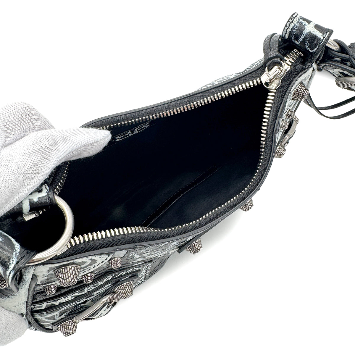 BALENCIAGA LE CAGOLE XS SHOULDER BAG BLACK WHITE LEATHER 90291890