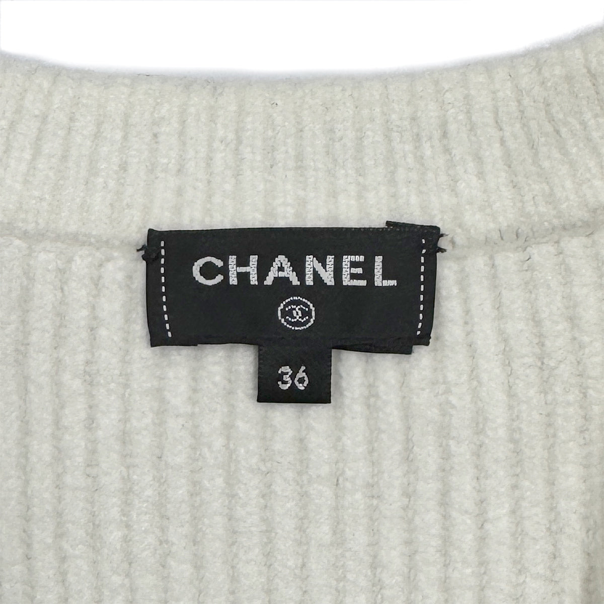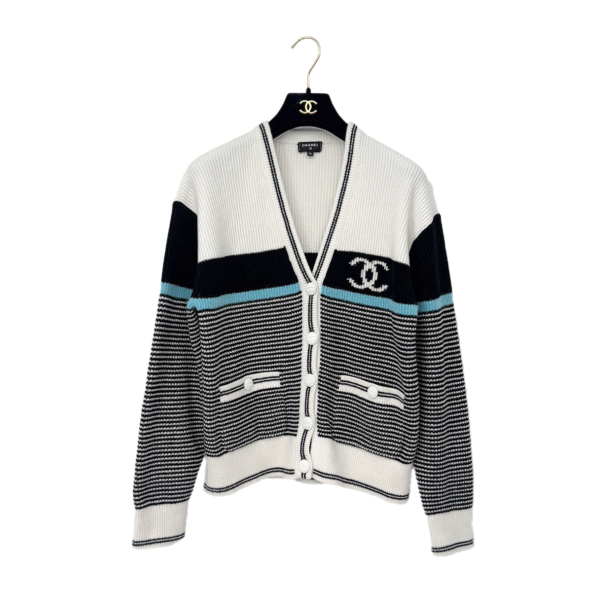 CHANEL COCO BUTTON BORDER CARDIGAN WHITE BLACK VISCOSE 36 P73 RTW 90287089
