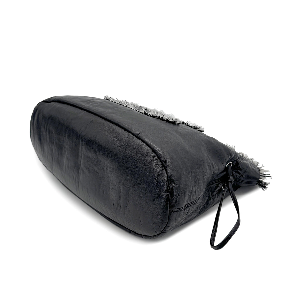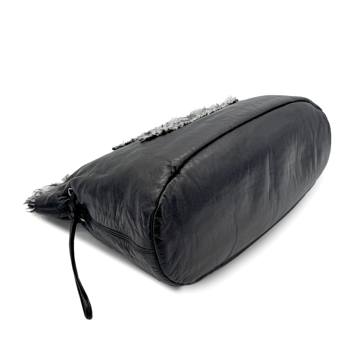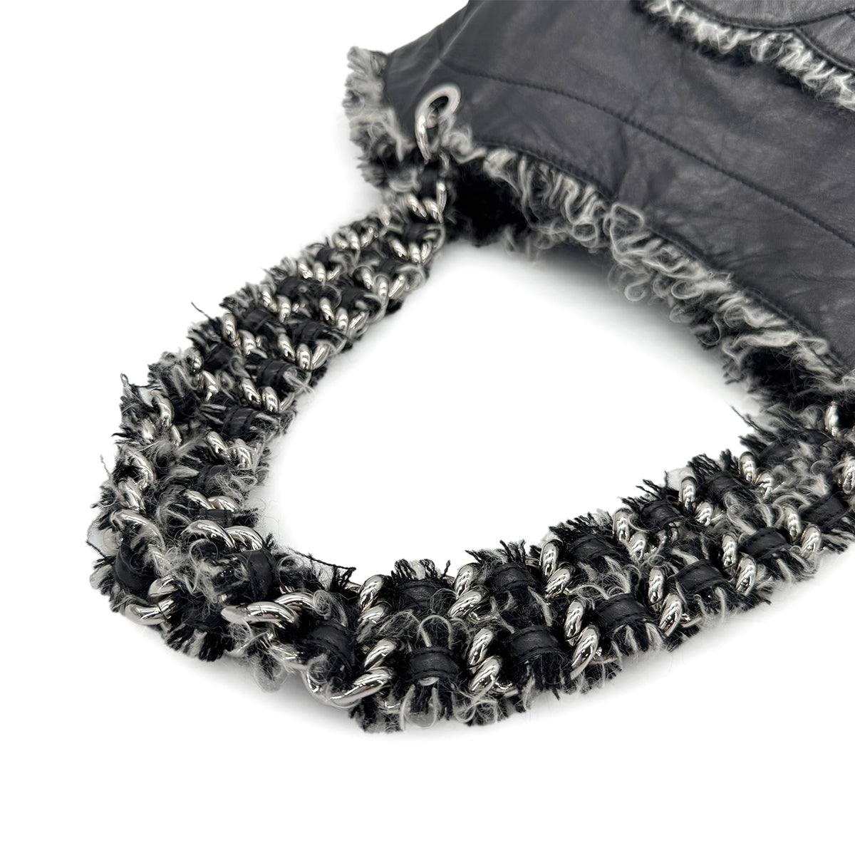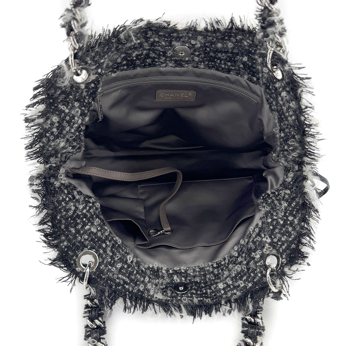 CHANEL DECACOCO CHAIN TOTE BAG BLACK TWEED LAMB SKIN 90269624