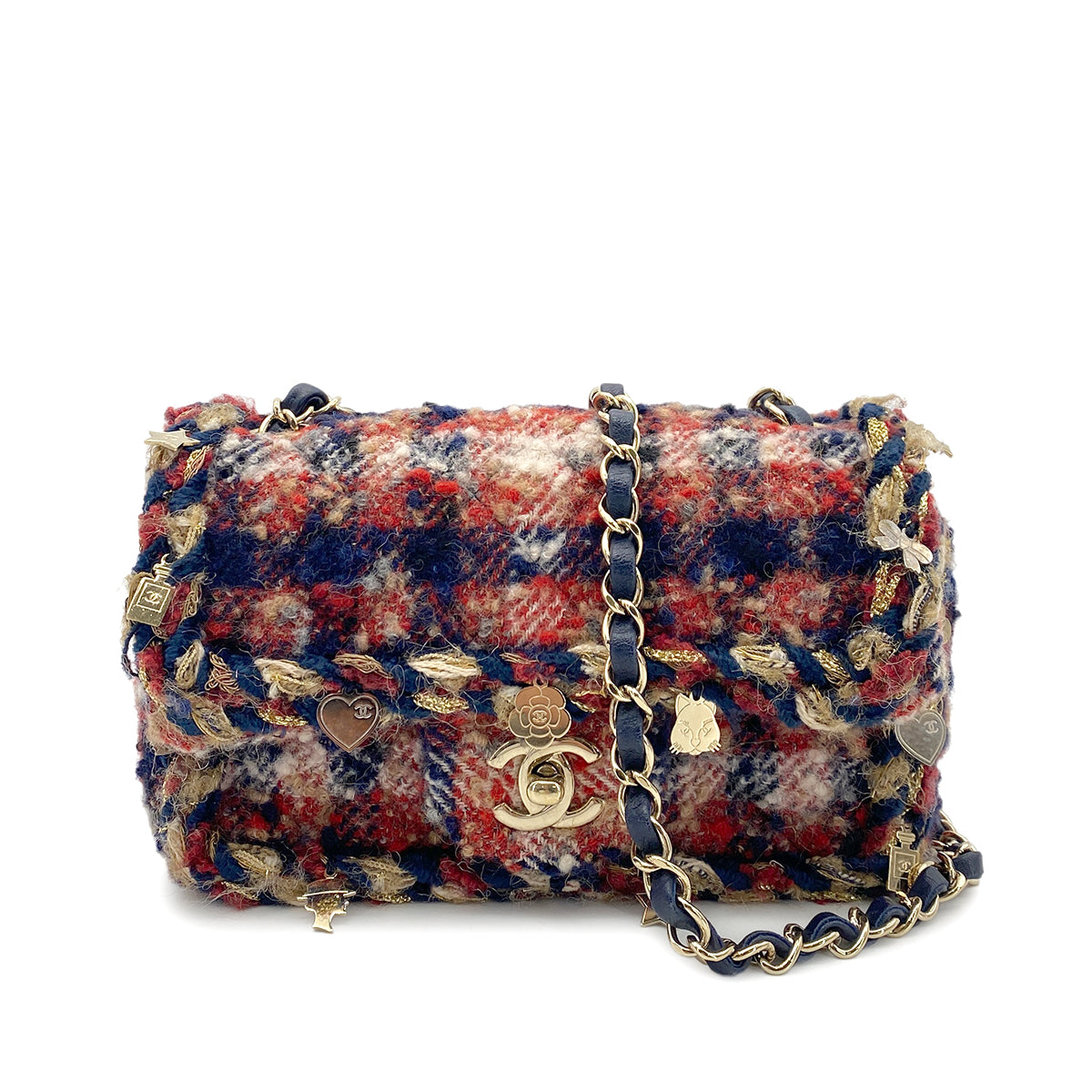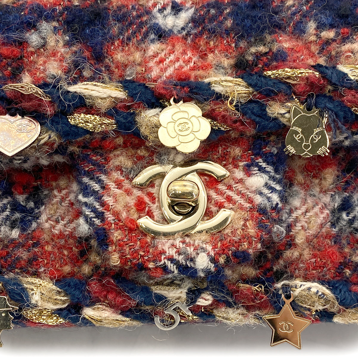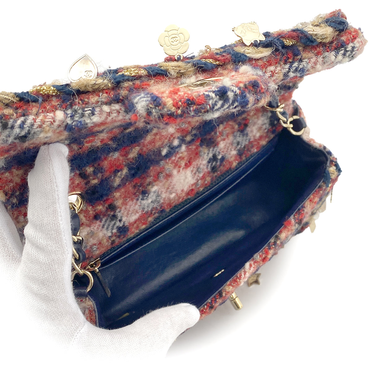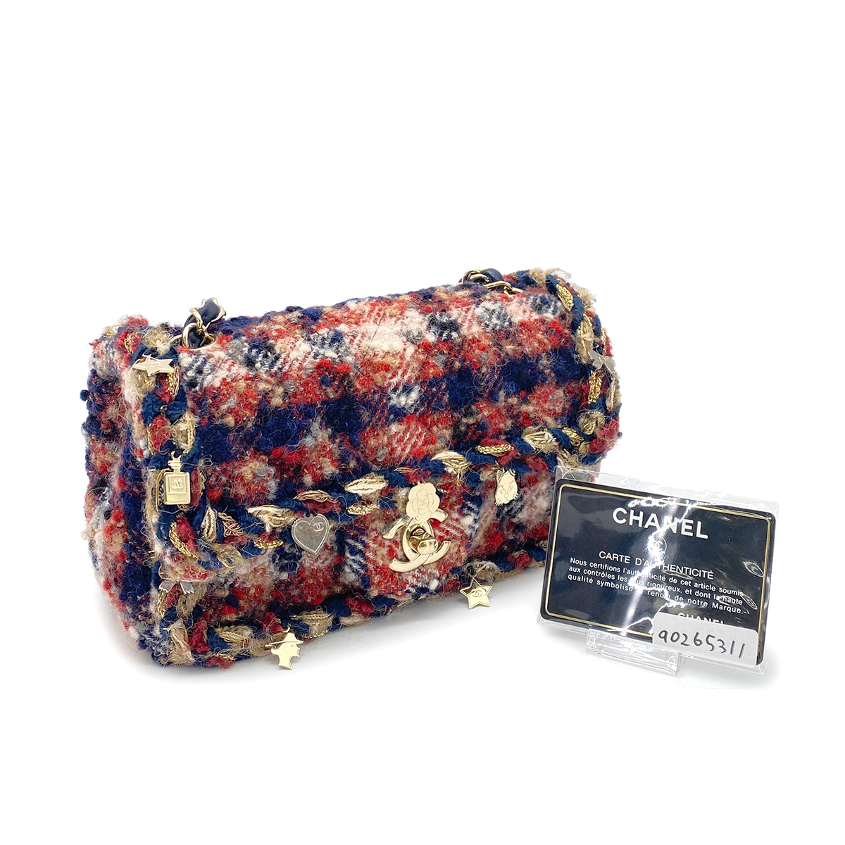 CHANEL MATELASSE MINI CHAIN SHOULDER BAG ICON CHARM MULTI COLOR TWEED 90265311
