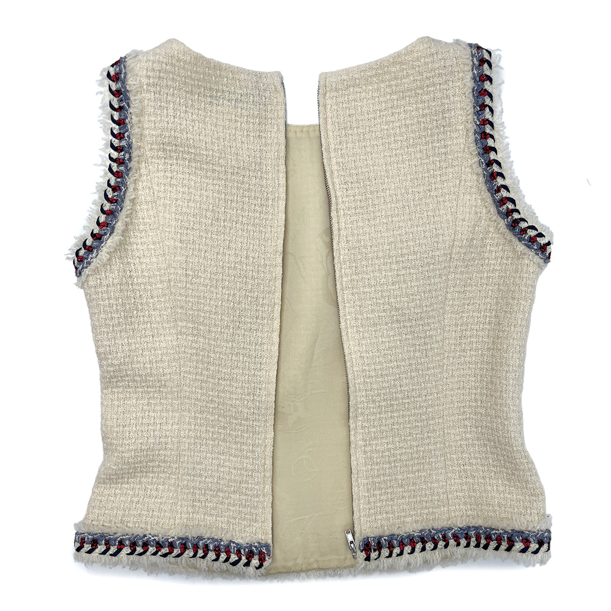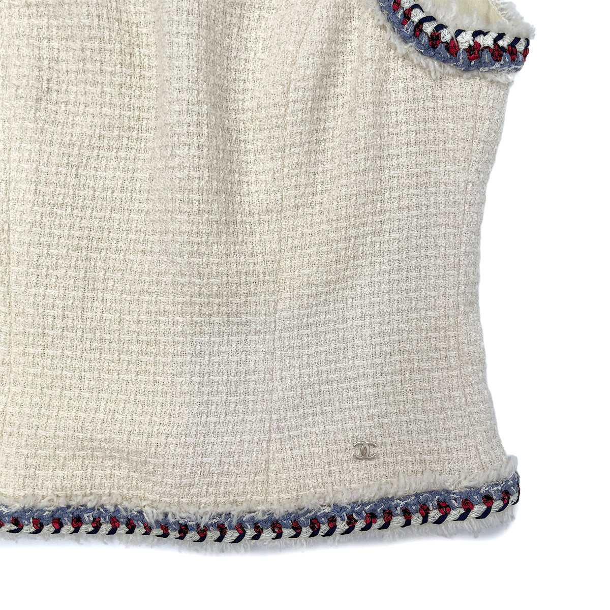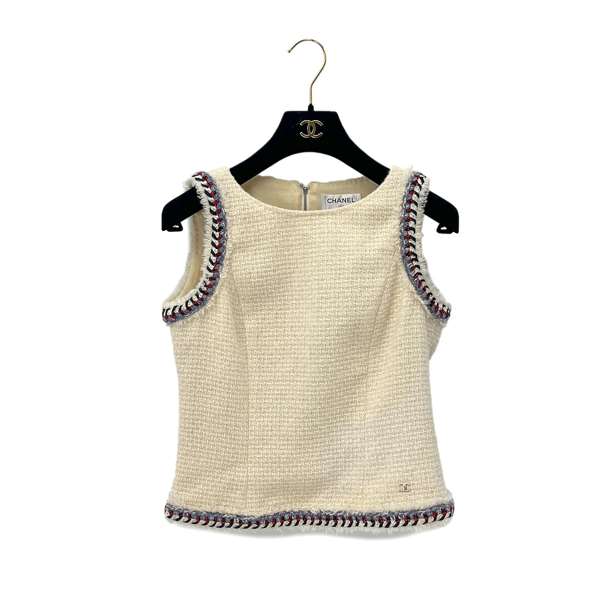 CHANEL COCOMARK SLEEVELESS TWEED TOPS WHITE WOOL 38 P44 RTW 90288043